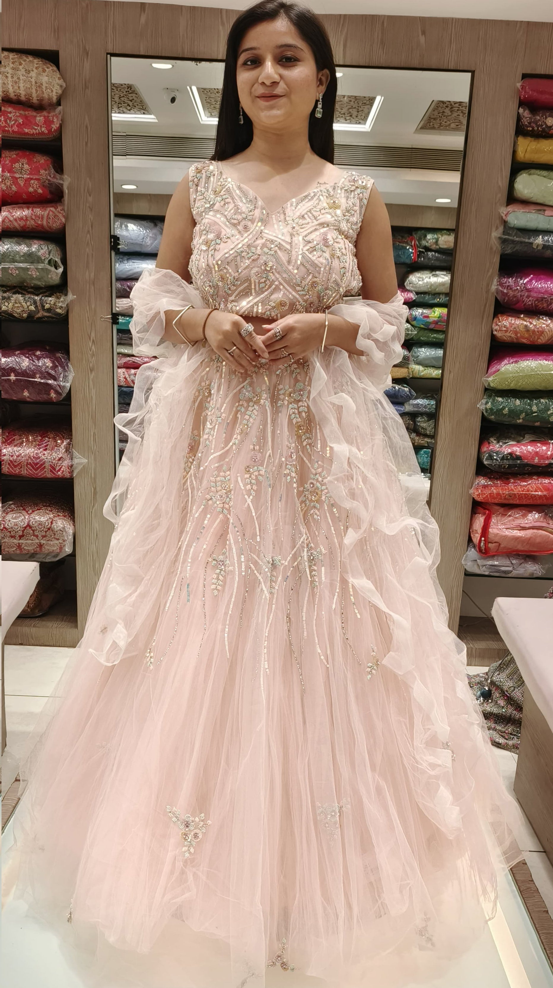 Baby Pink Color Net Hand Color Fancy Lehenga Choli