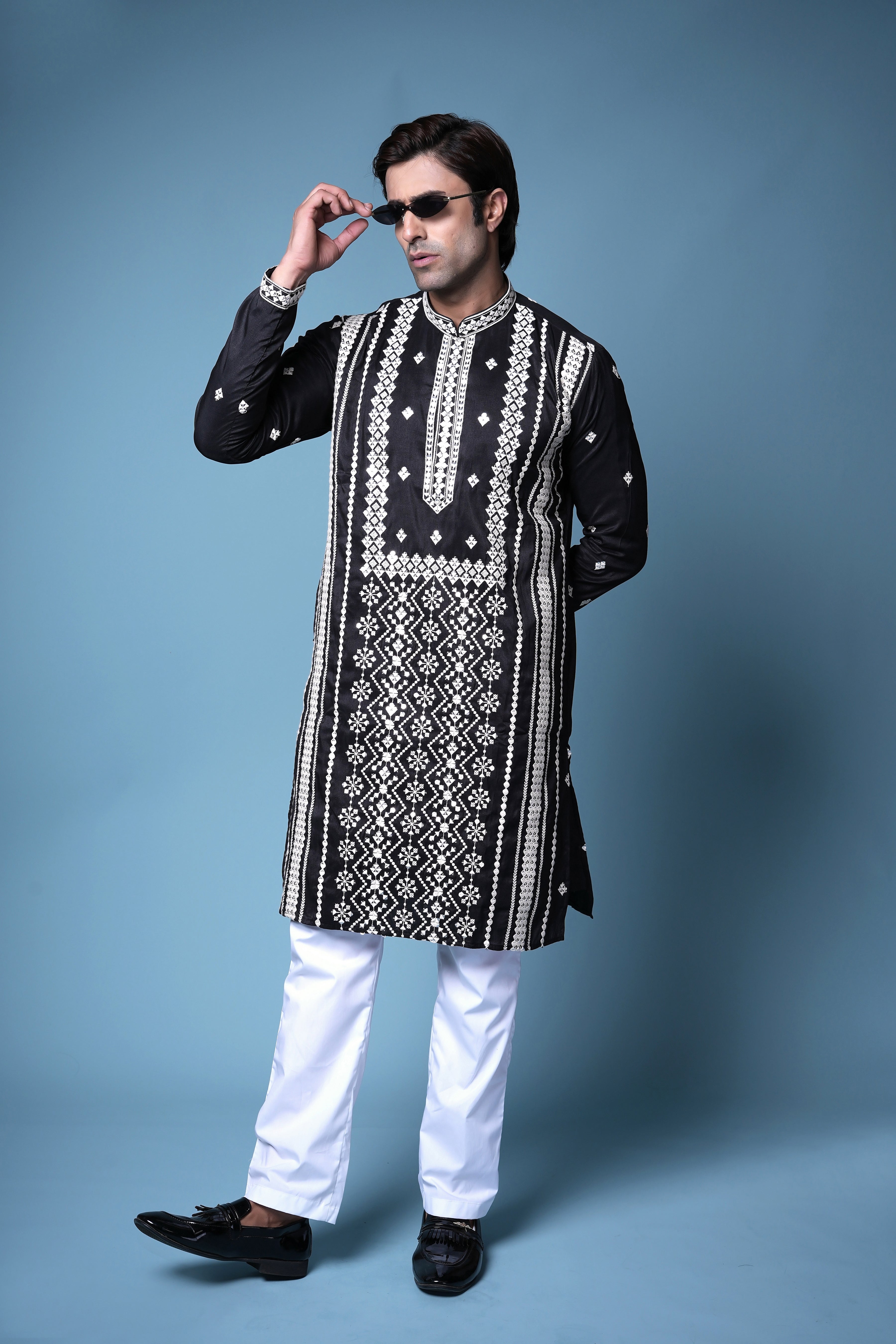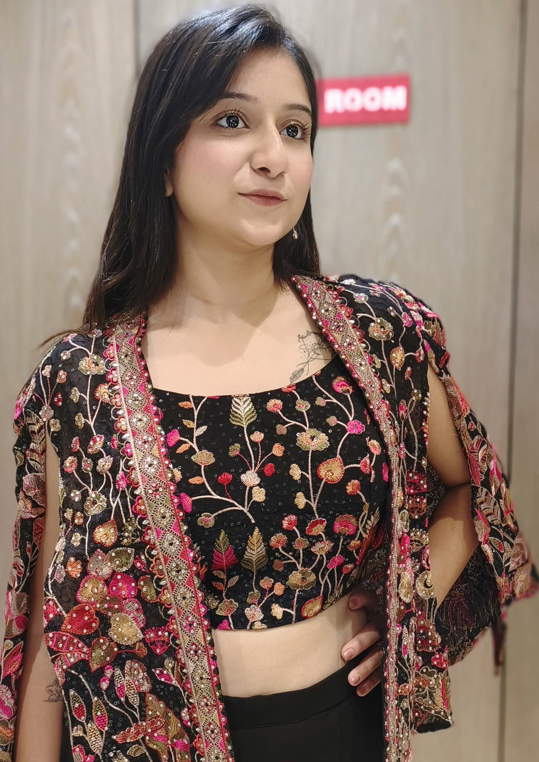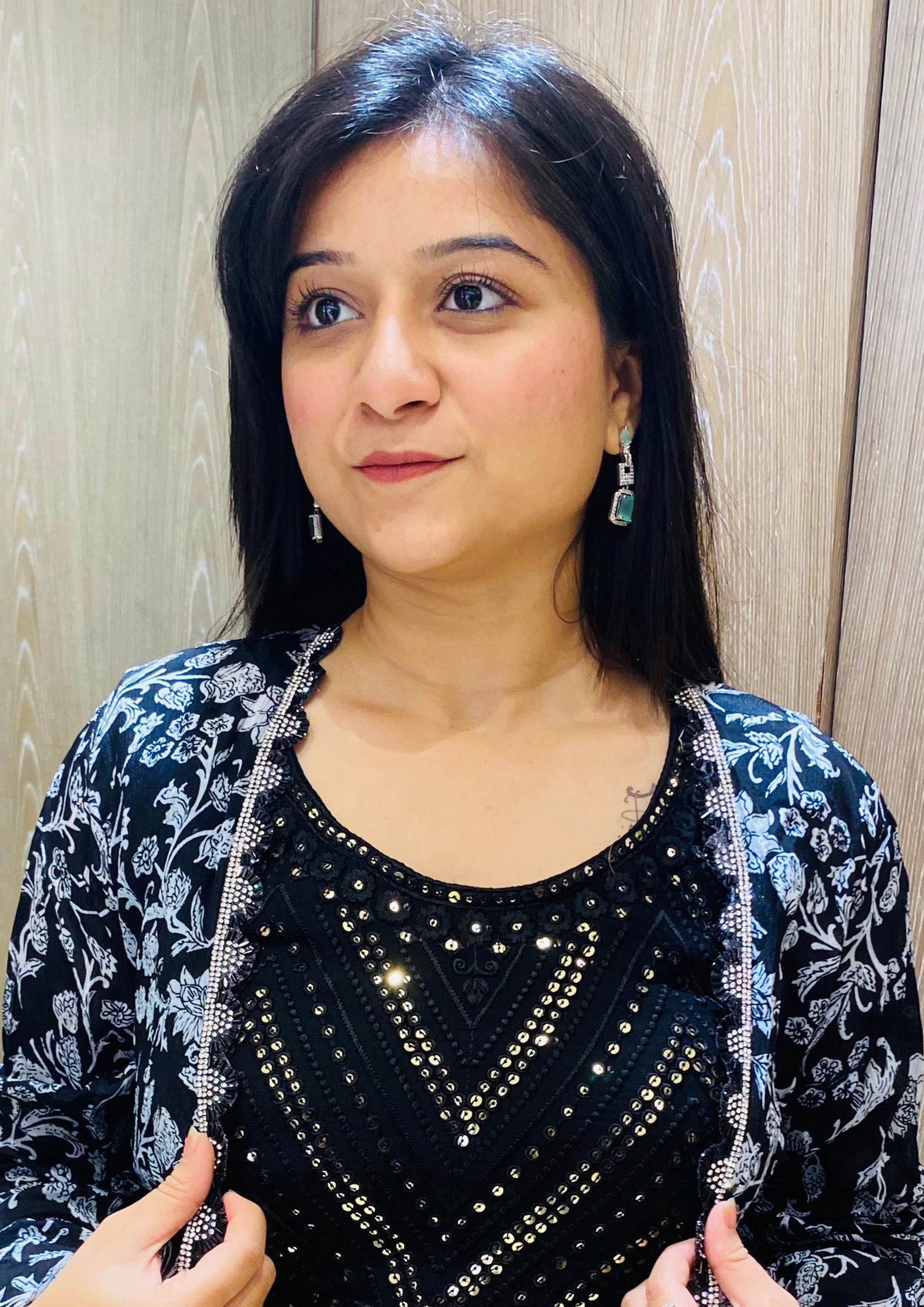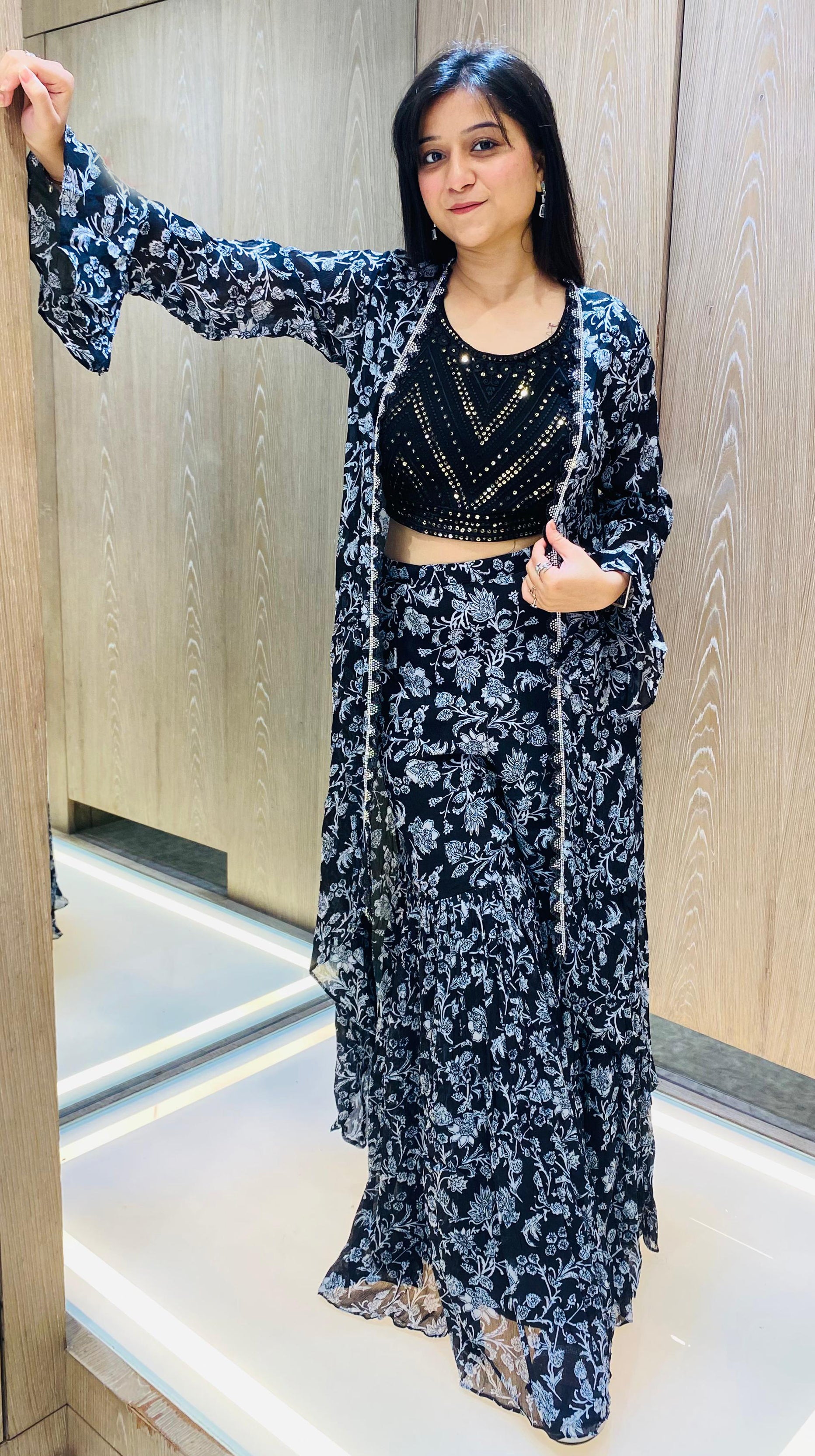 Black & Silver Embroidered open Indo western