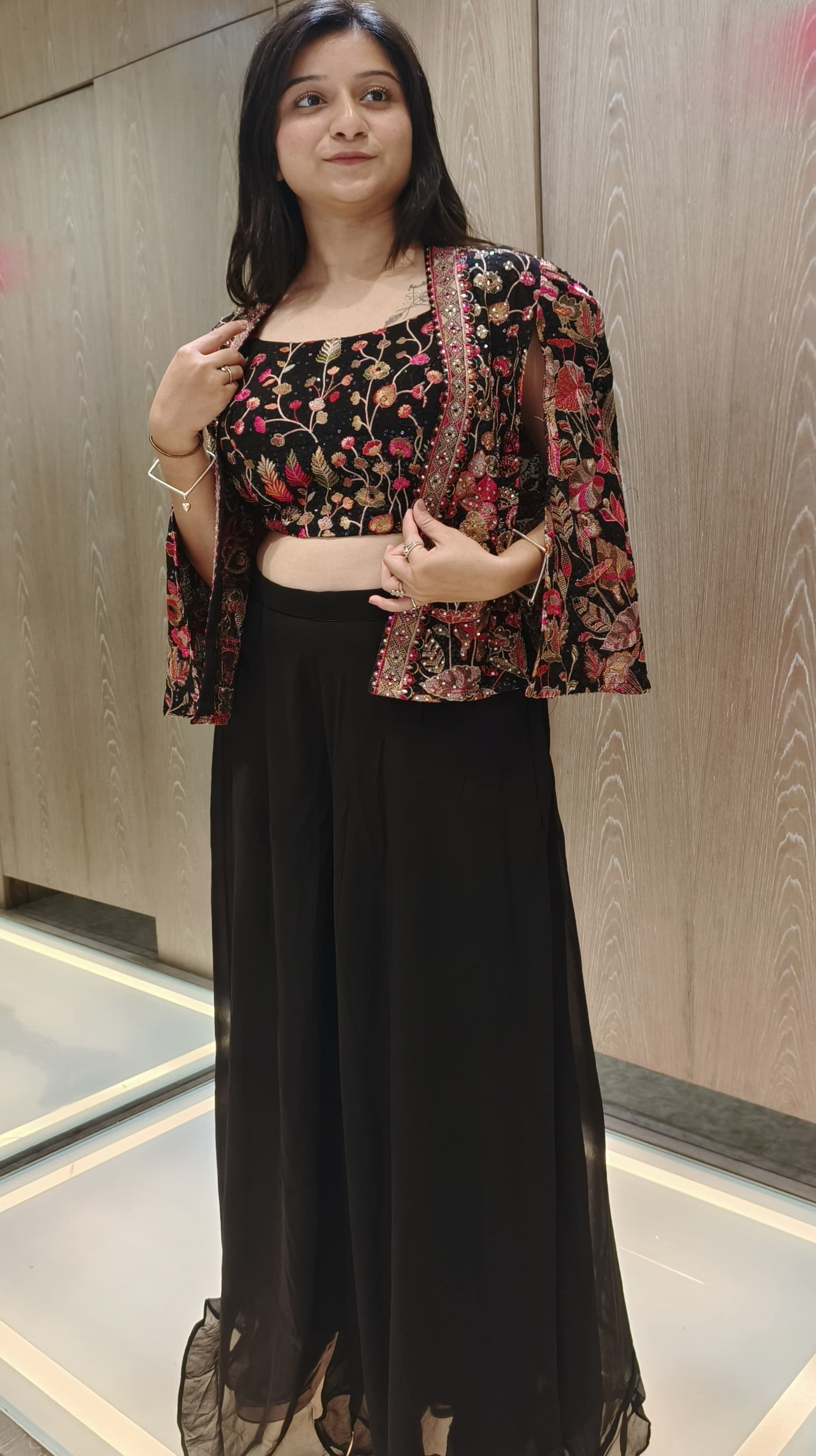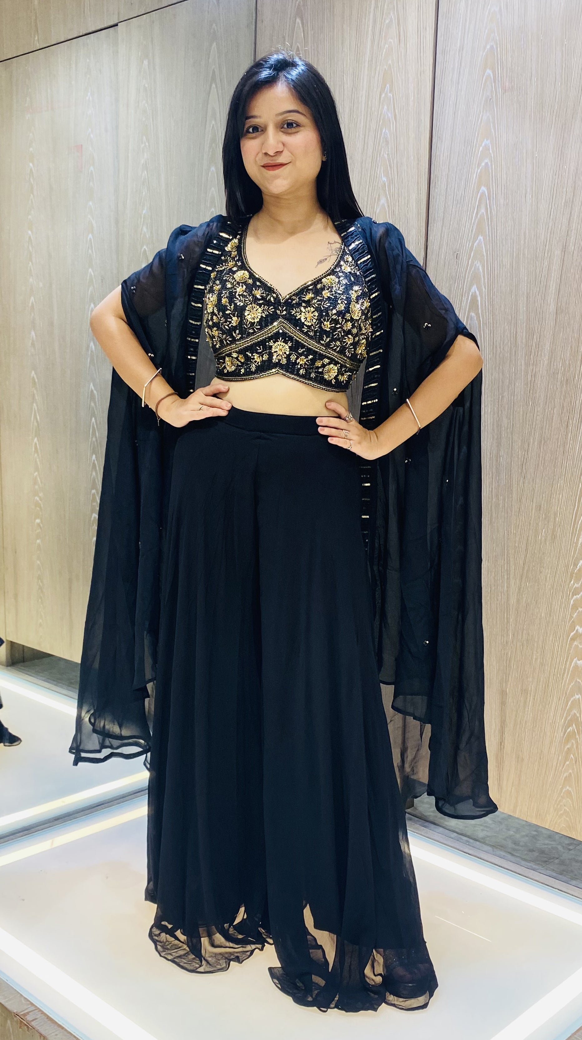 Black Color Chinnon Chiffon Palazzo With Shrug
