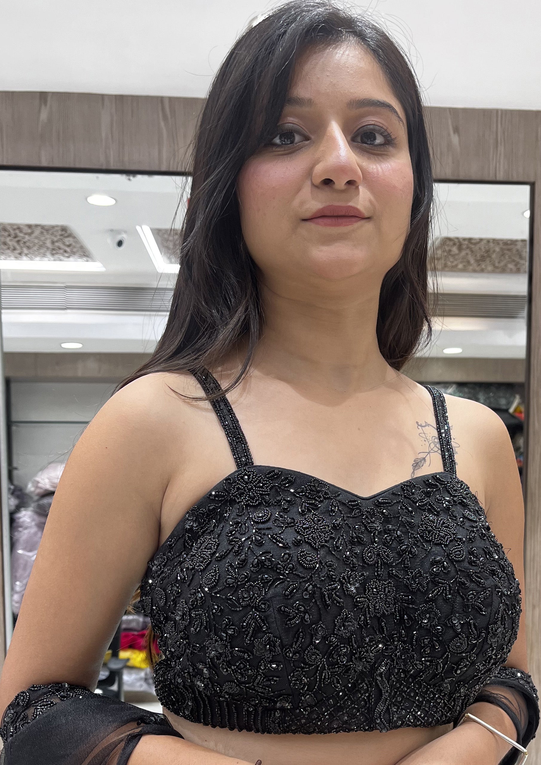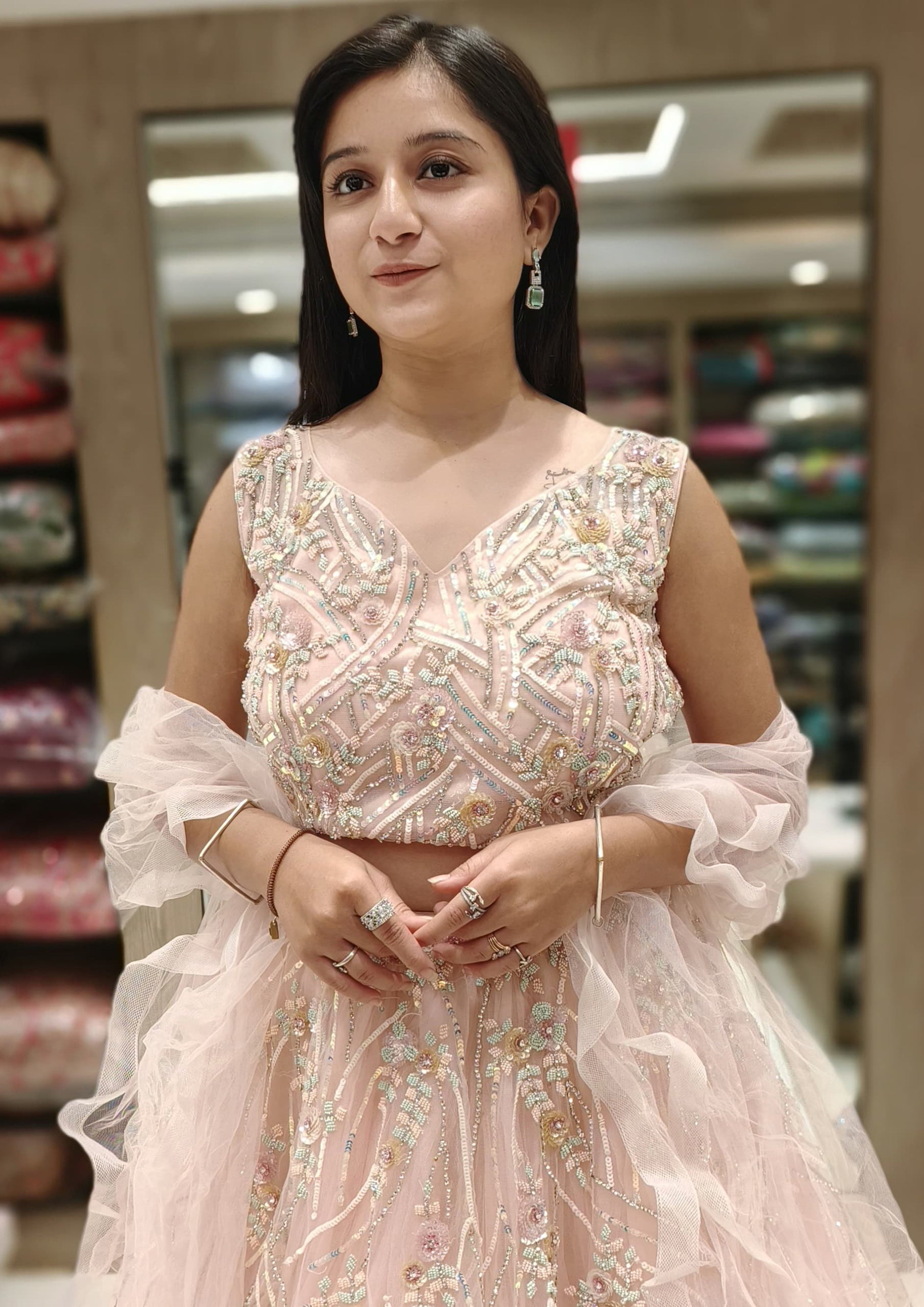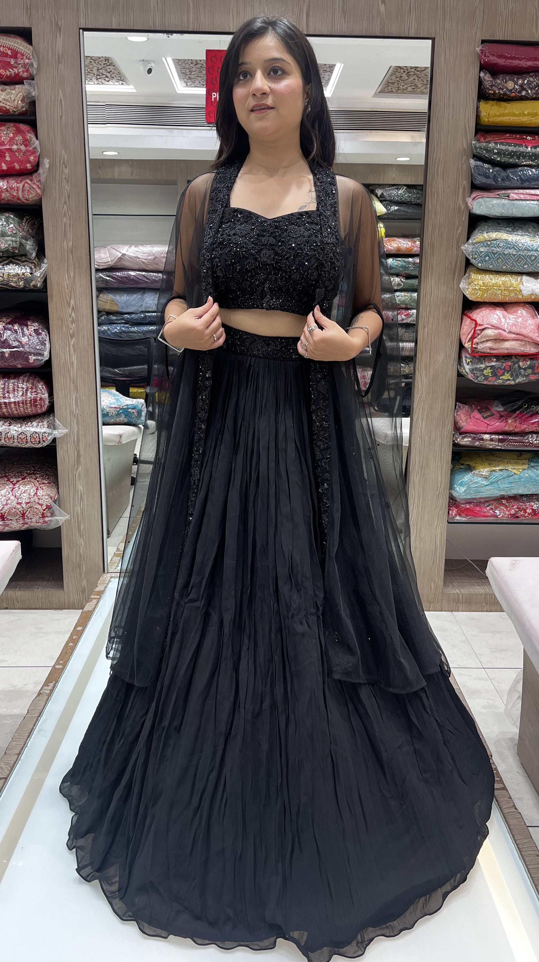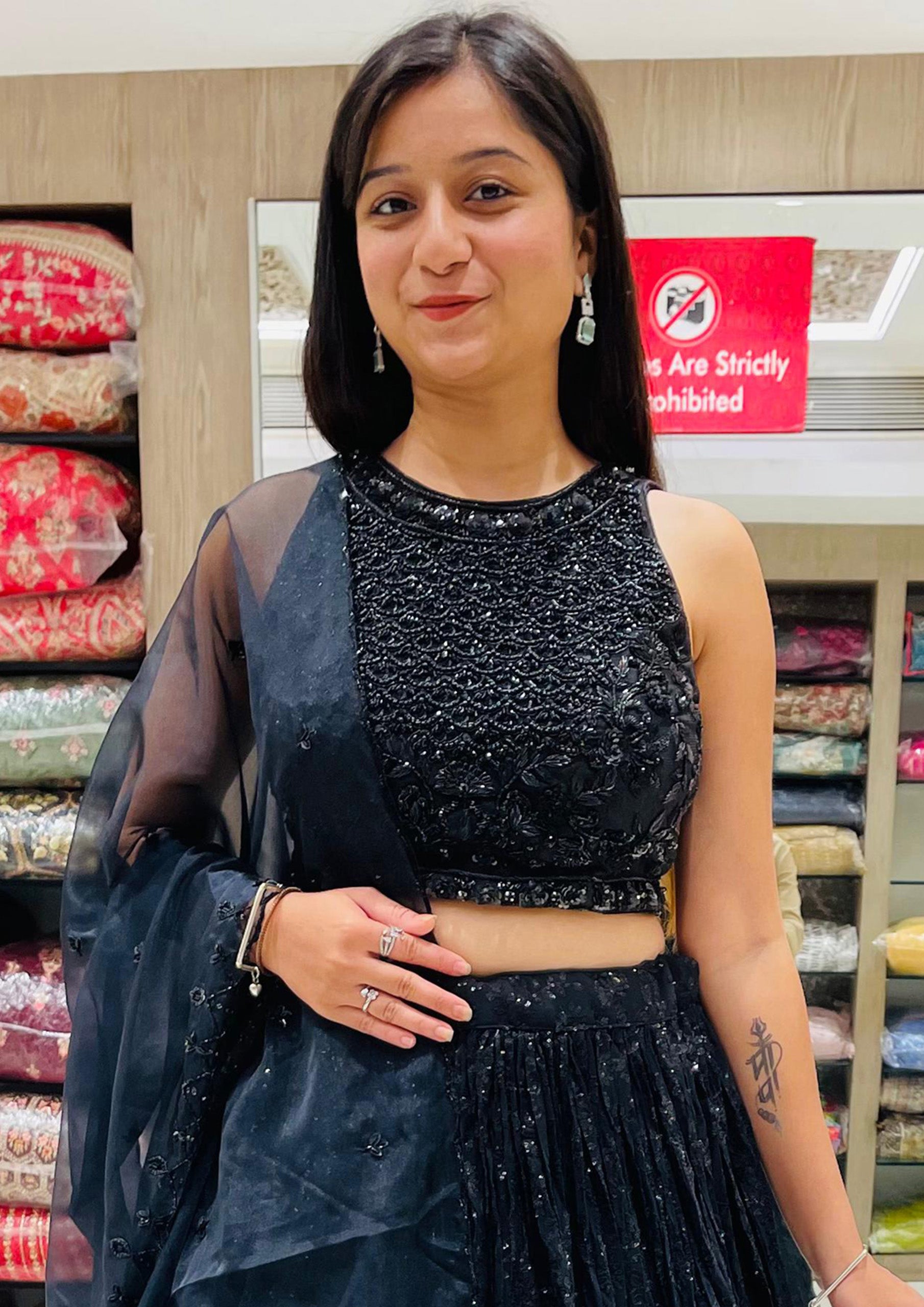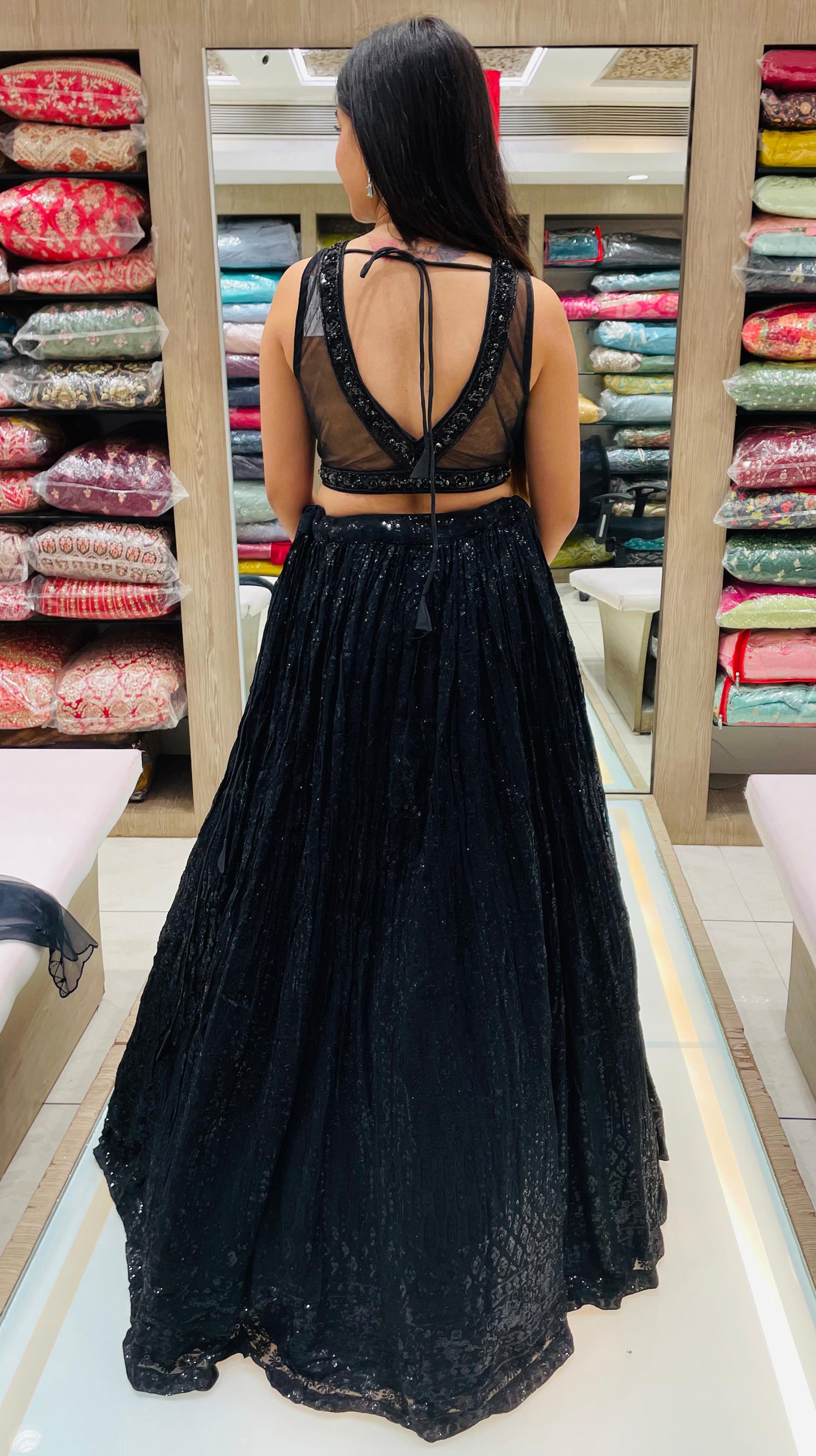 Black Color Net And Organza Thread Sequins Work Lehenga