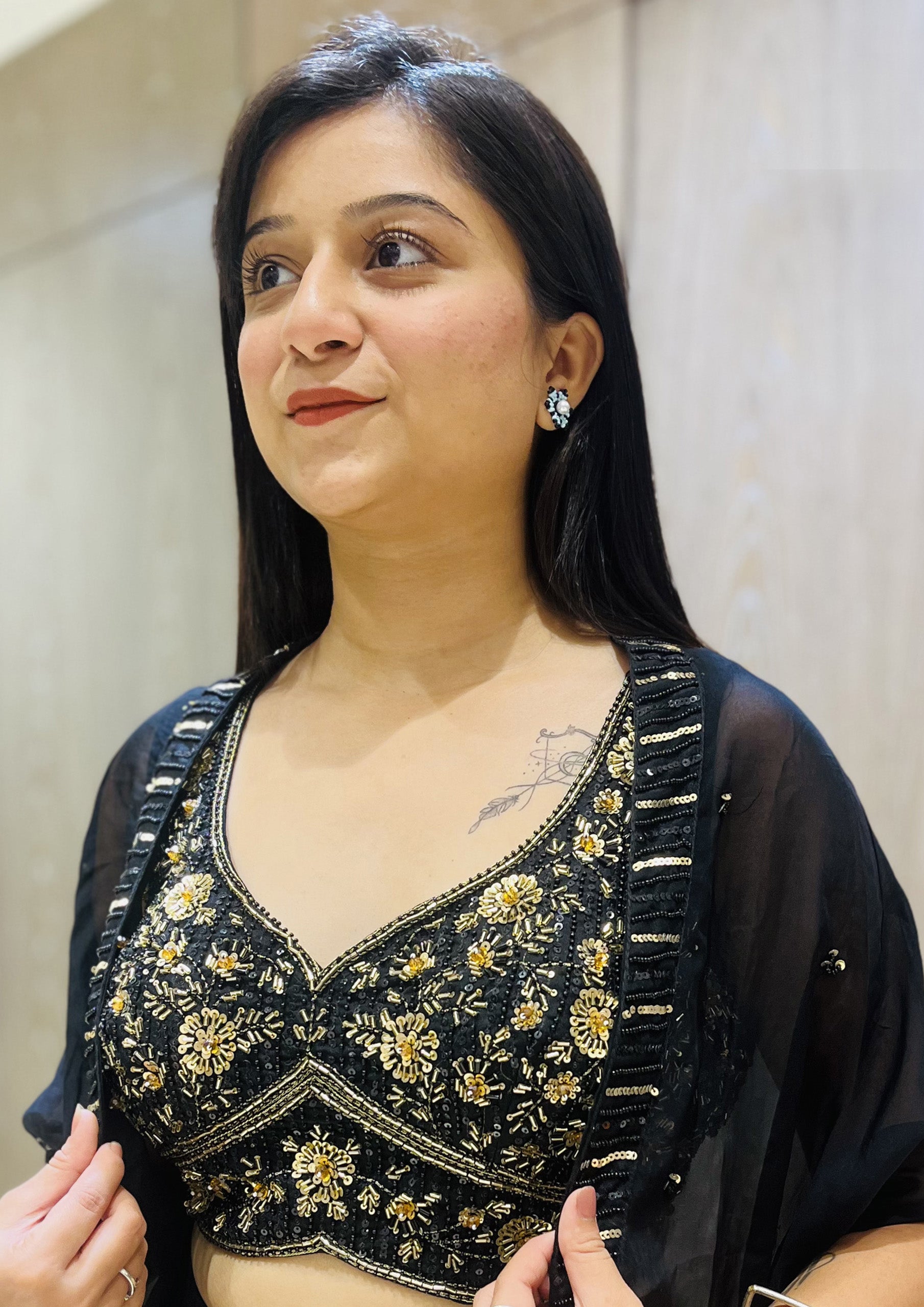 Black Color Georgette Hand Work Palazzo Choli Set