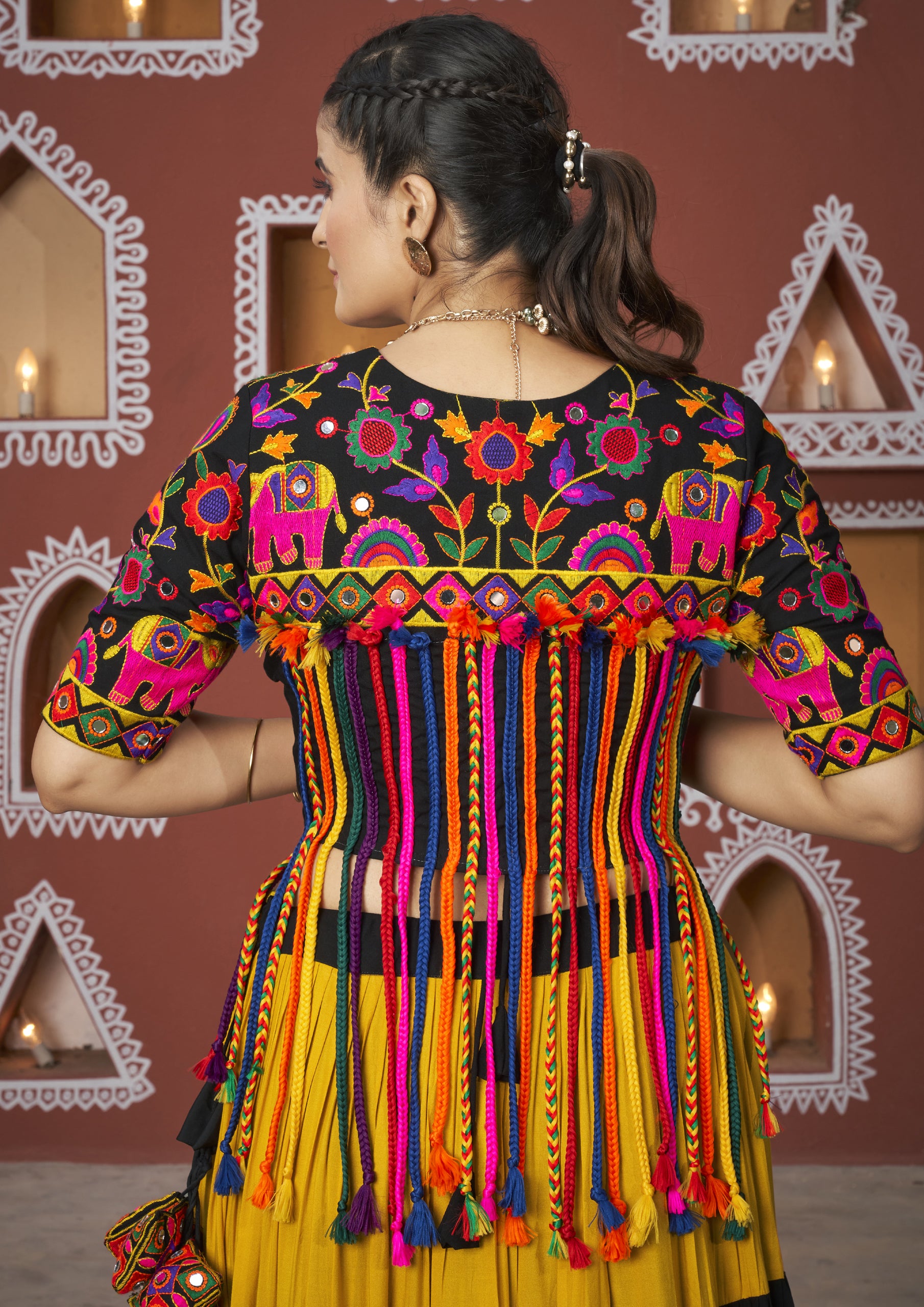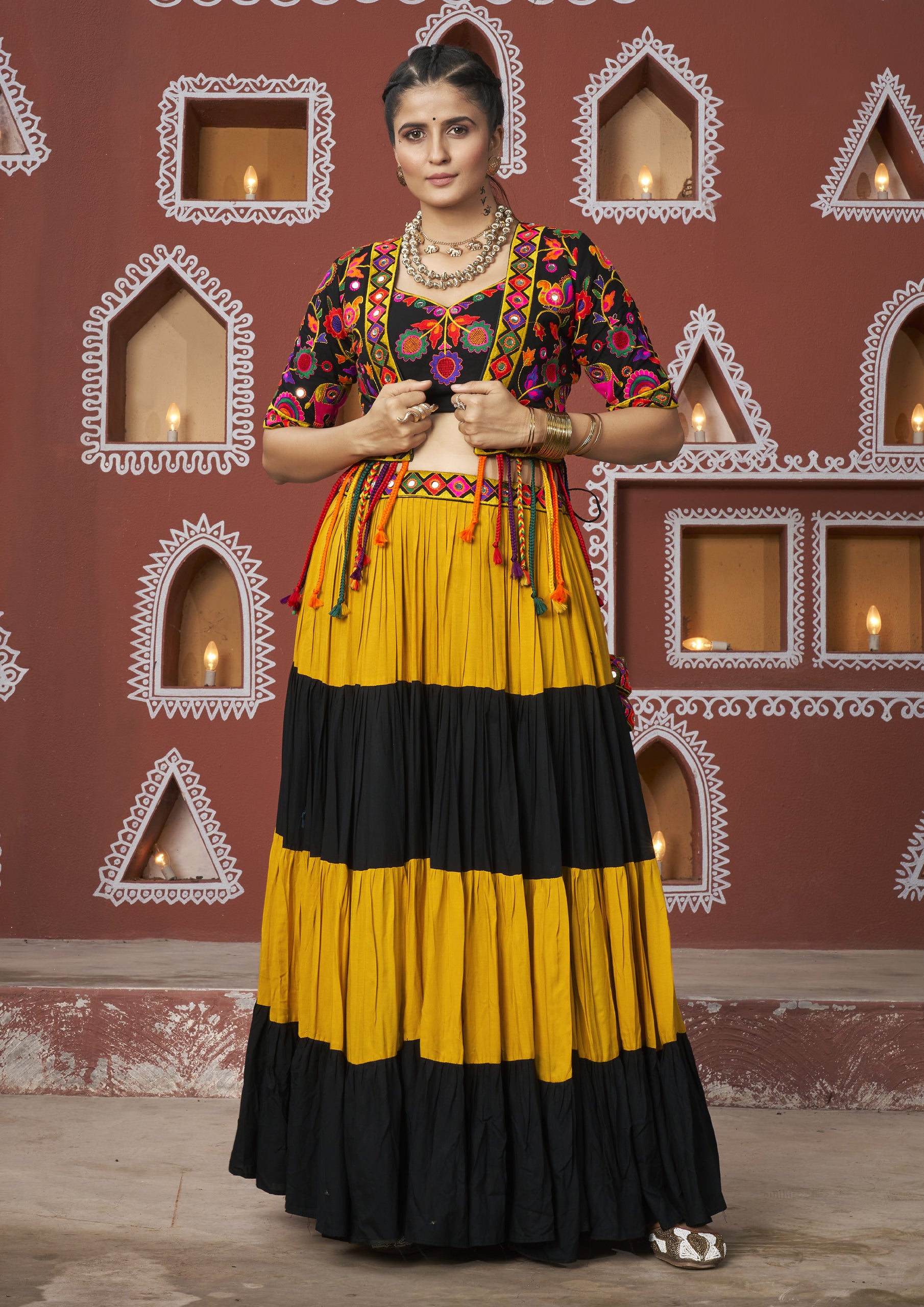 Black Color Georgette Hand Work Lehenga Choli With Shrug