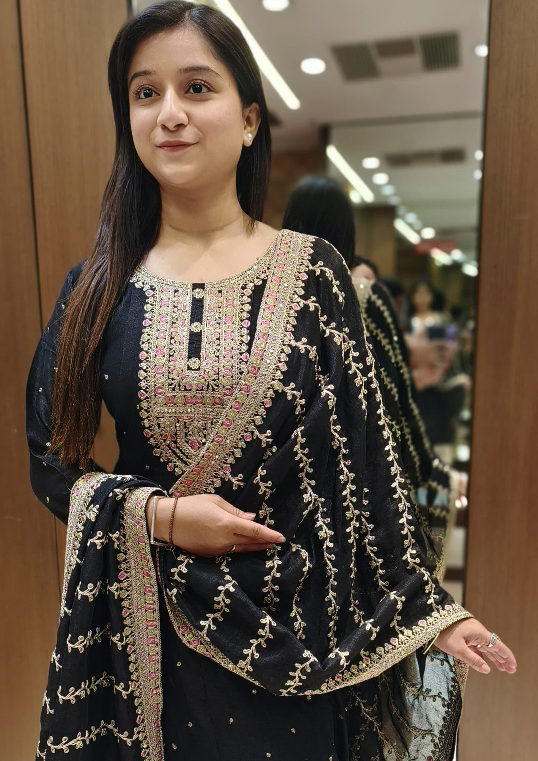 Black Color Silk Embroidered Salwar Suit