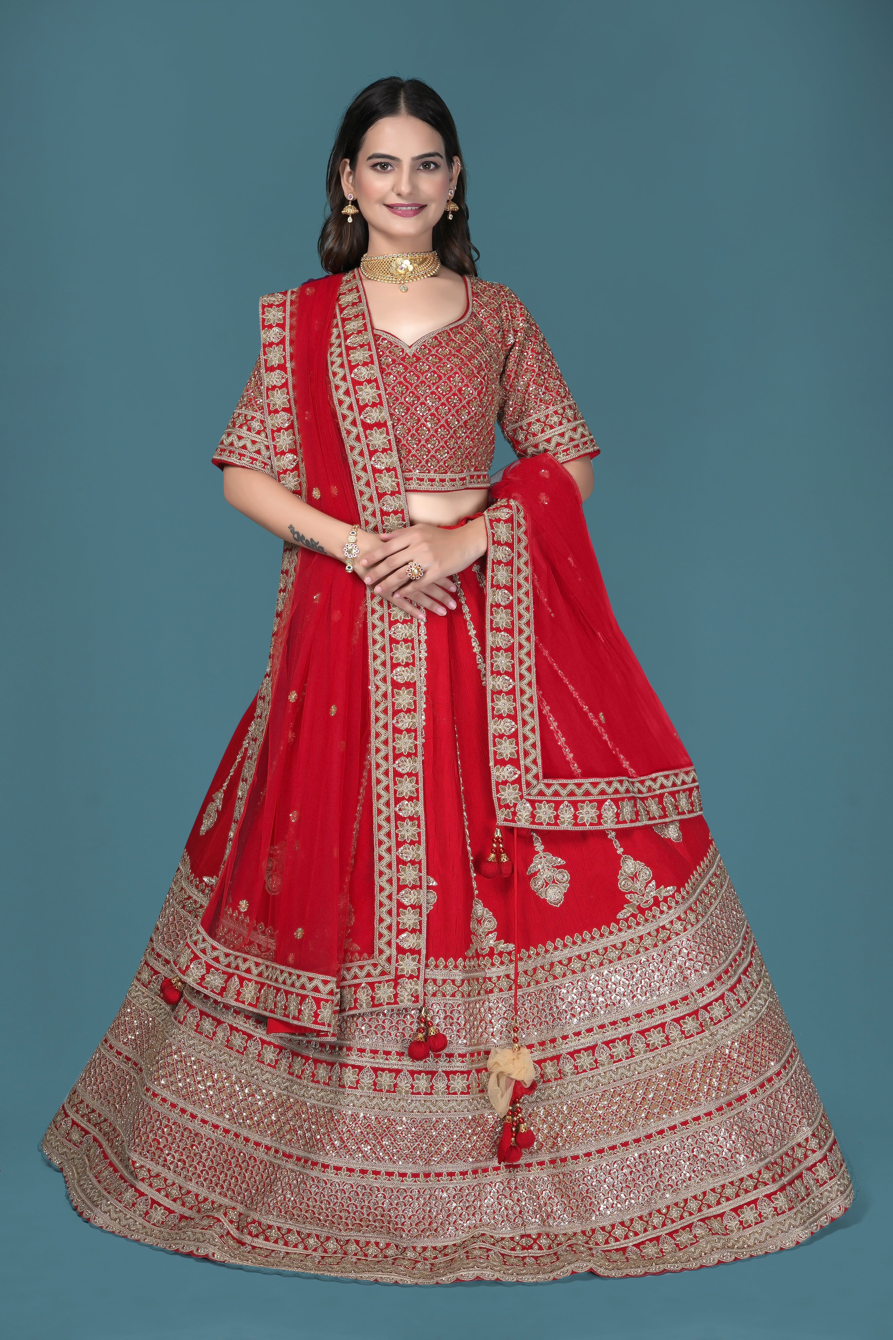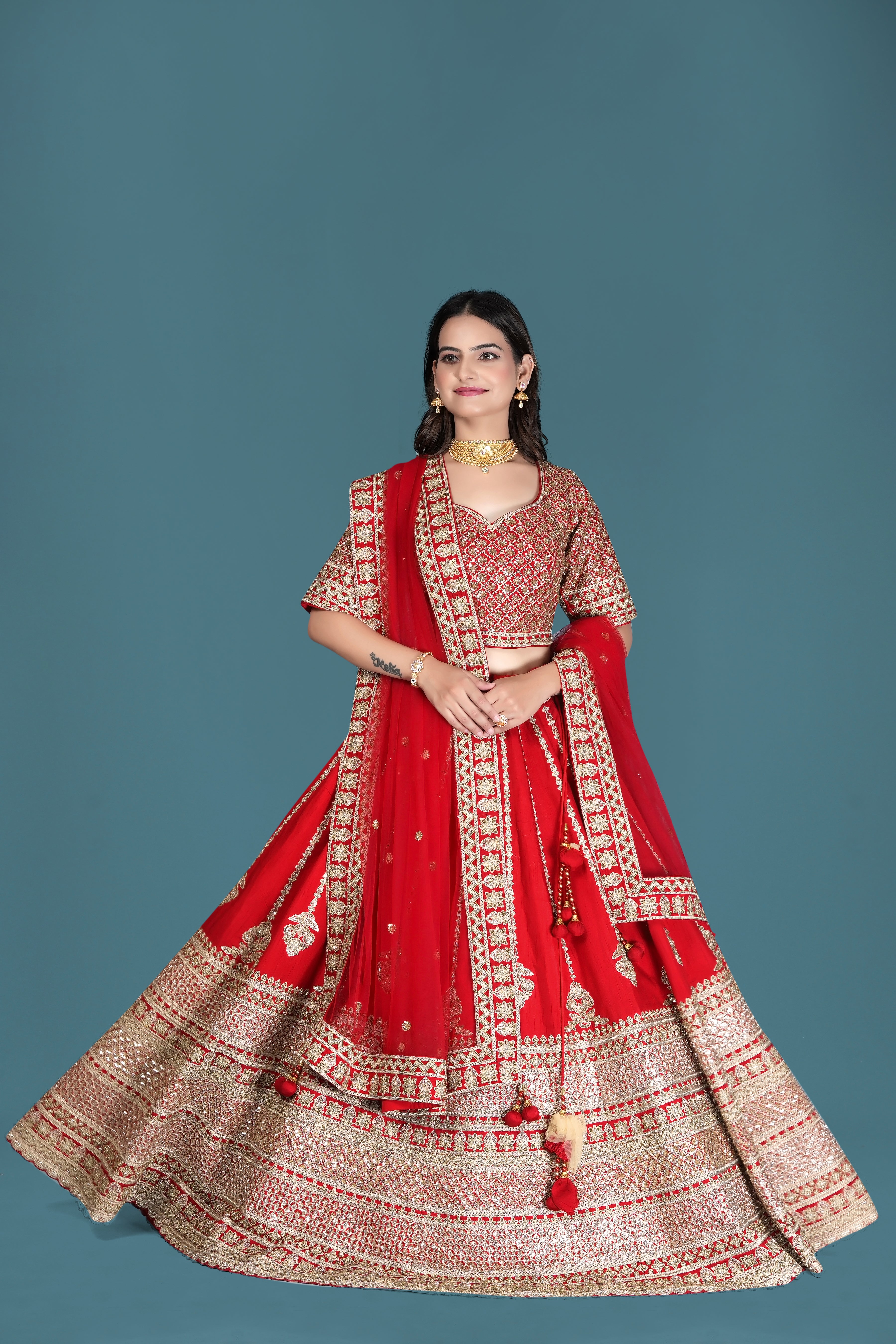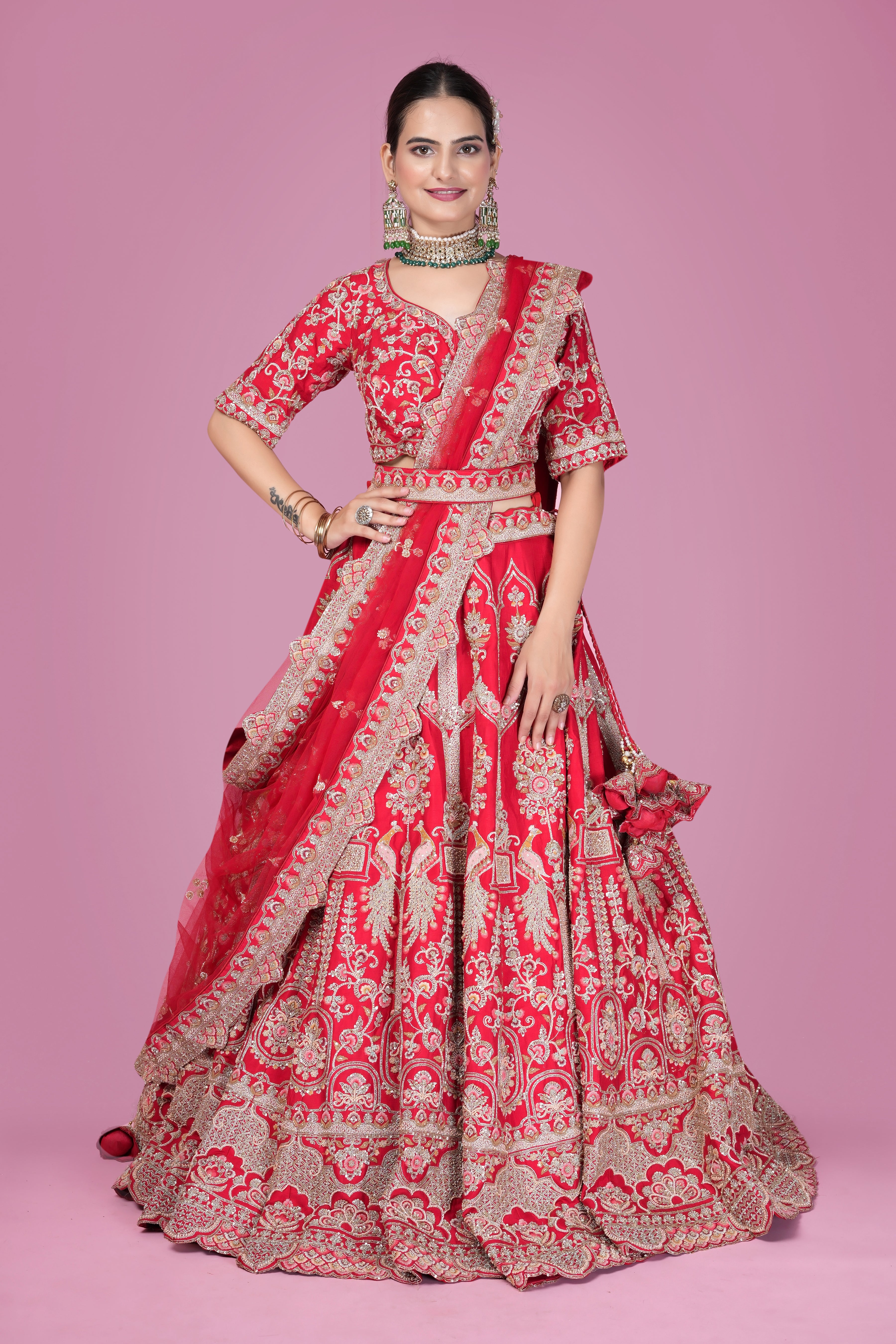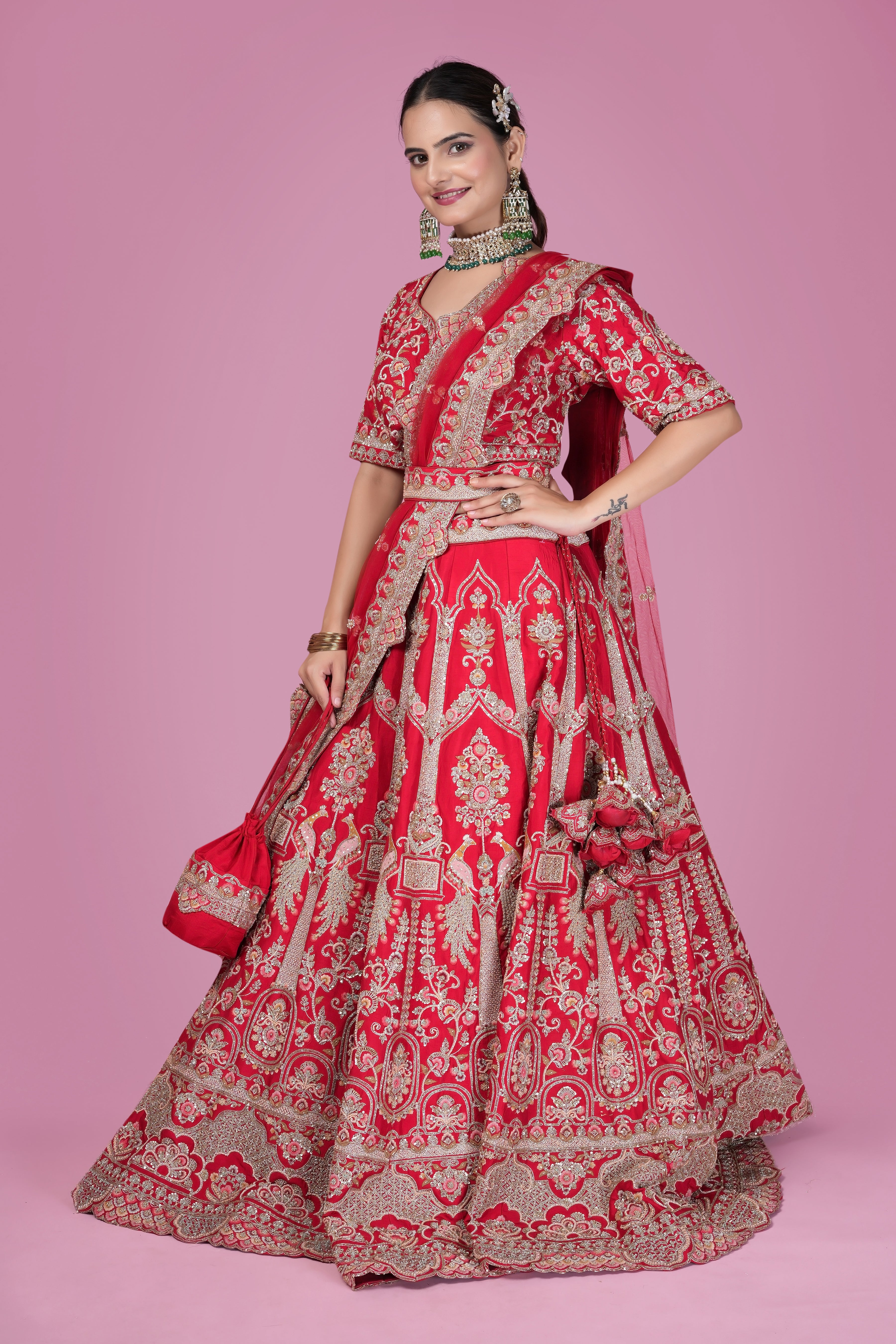 Regal Red Zardosi Embroidered Bridal Lehenga Set