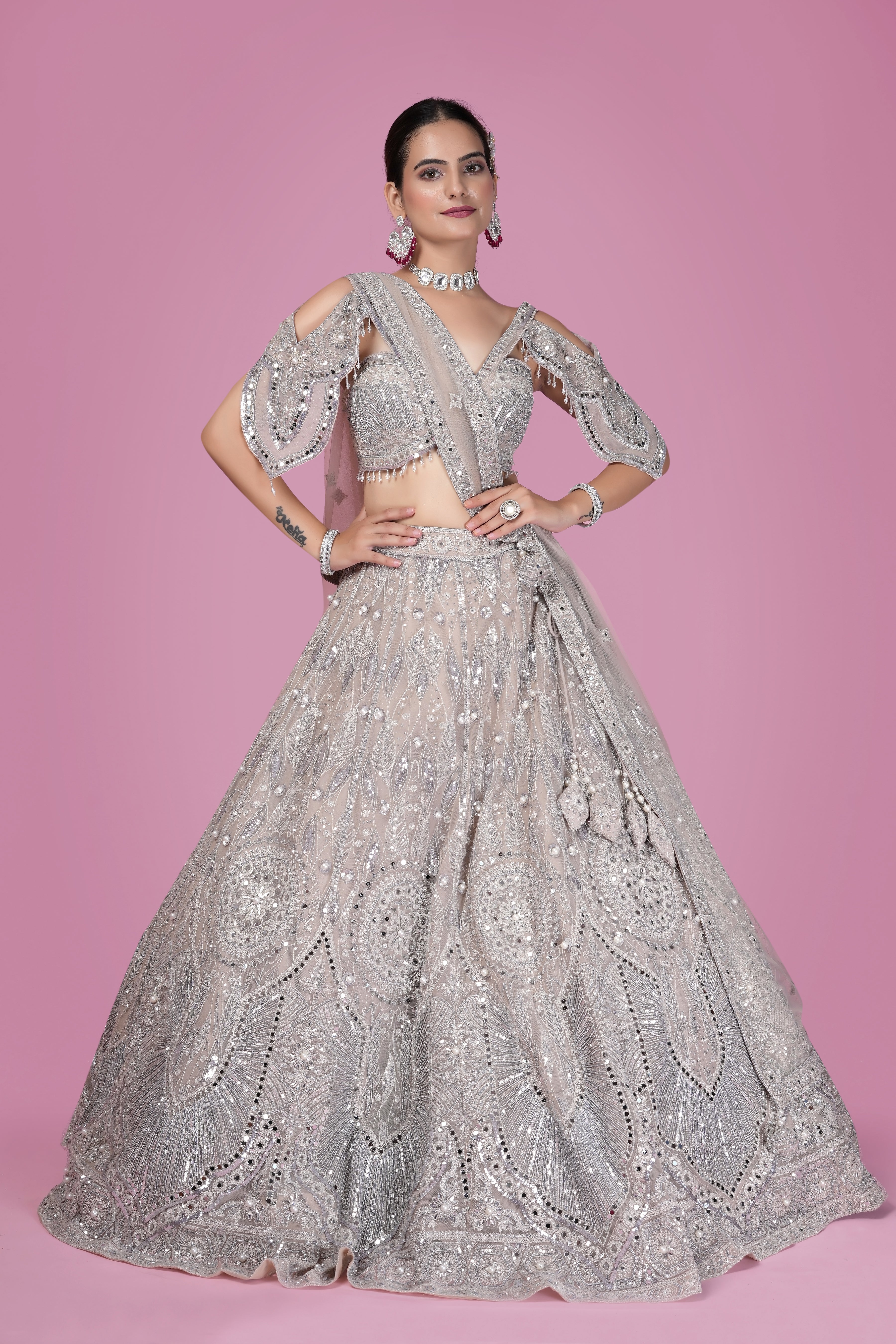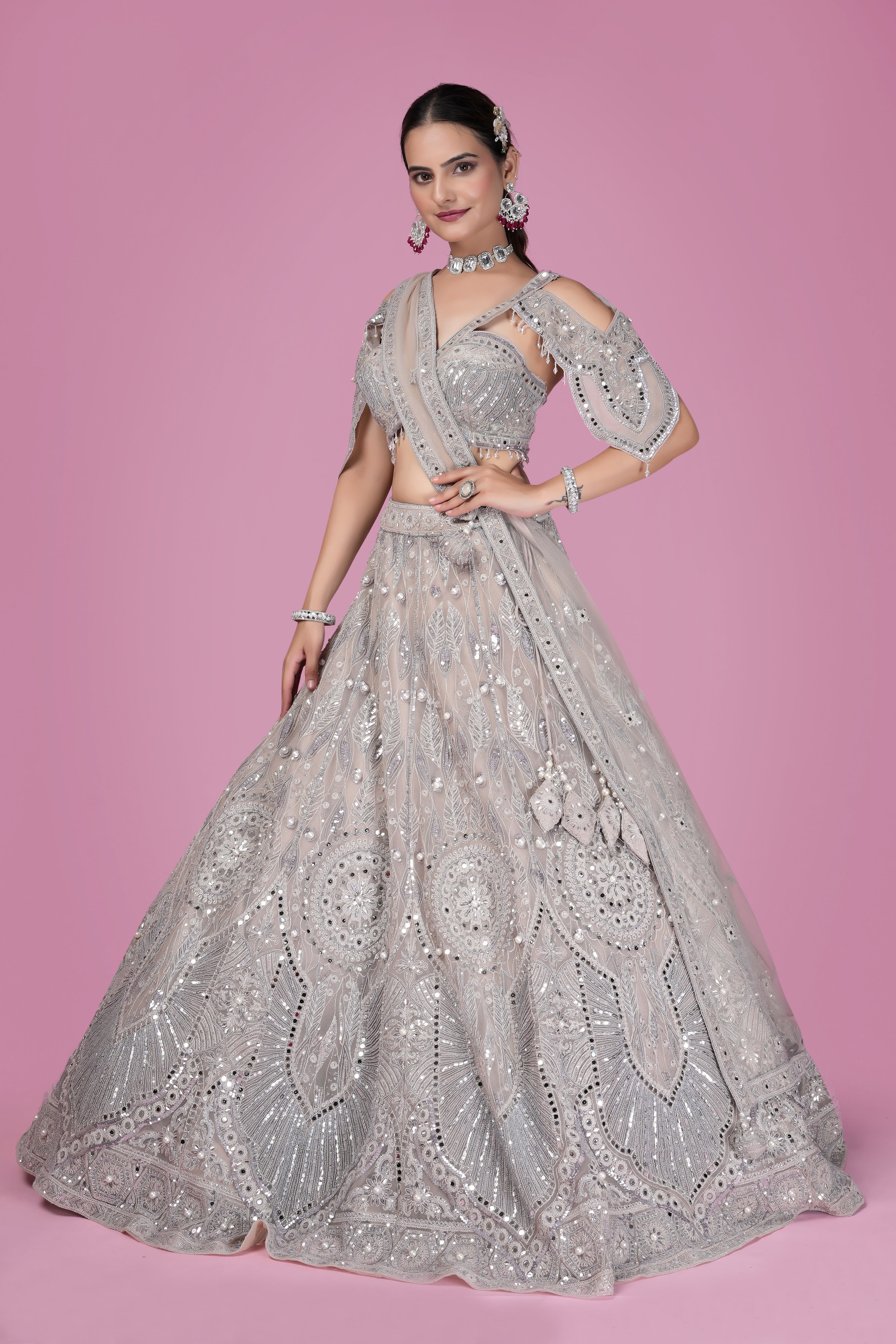 Silver Celeste Mirror Embroidered Designer Lehenga Set