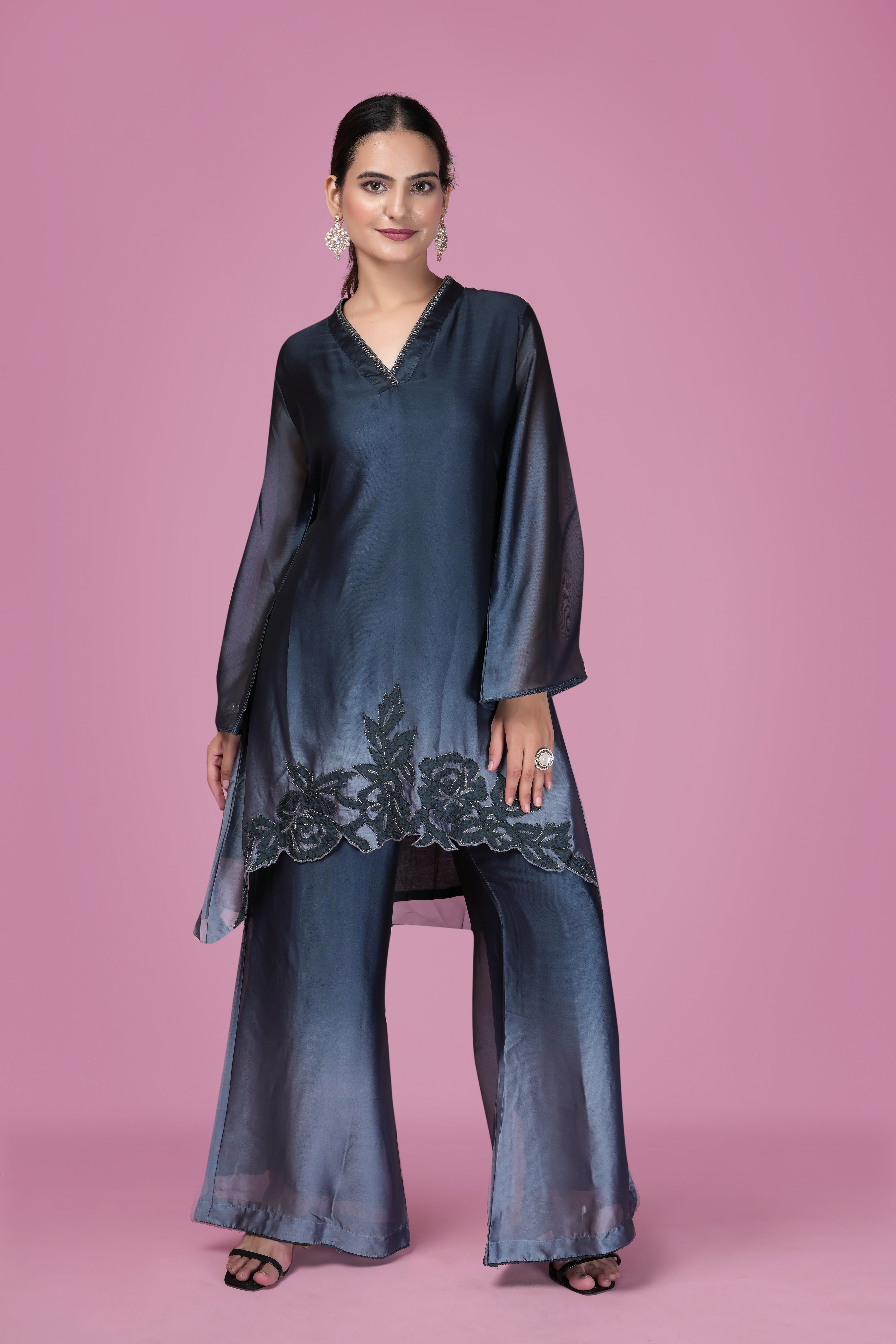 Mint Green Hand-Embroidered Silk Sherwani Set