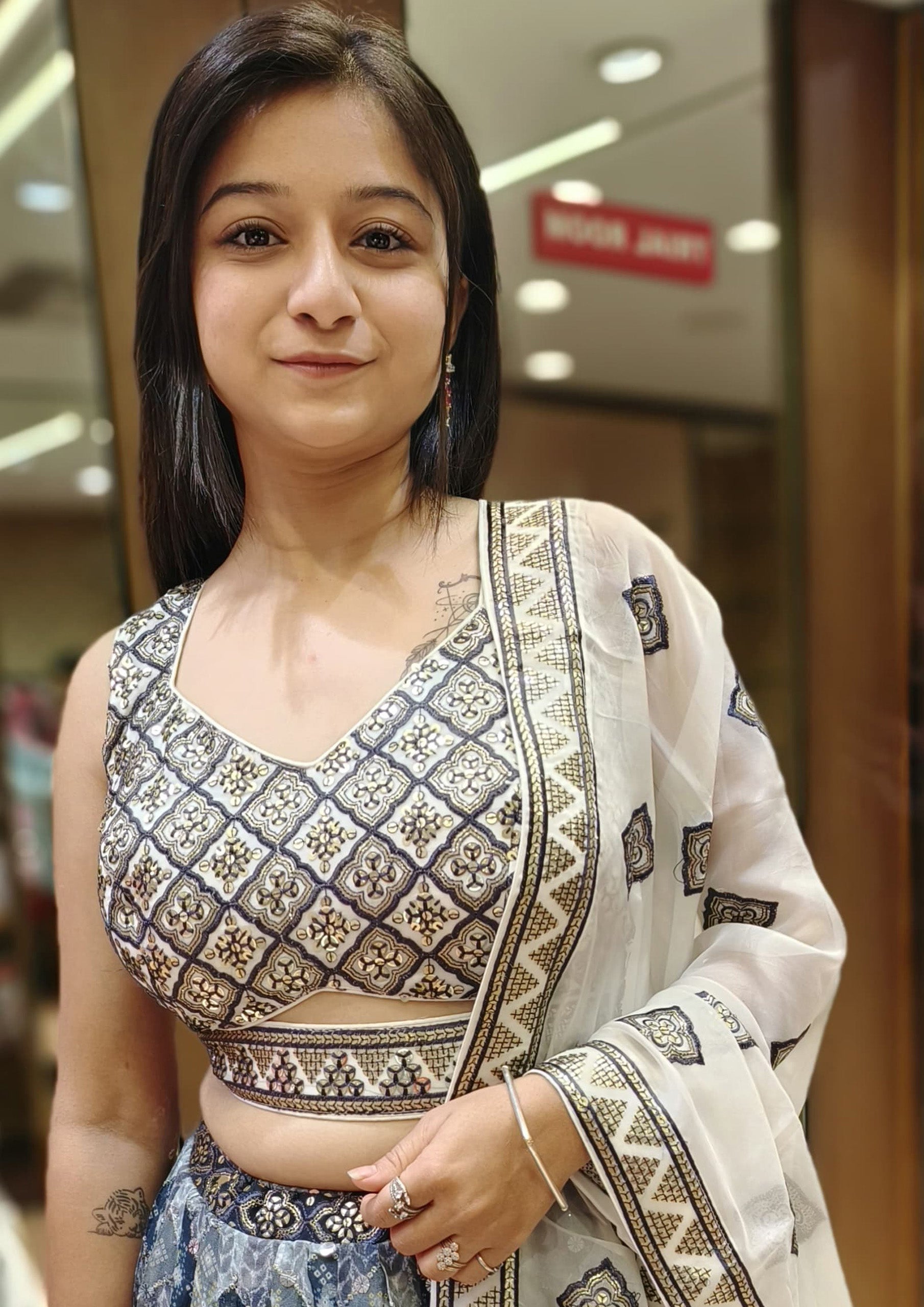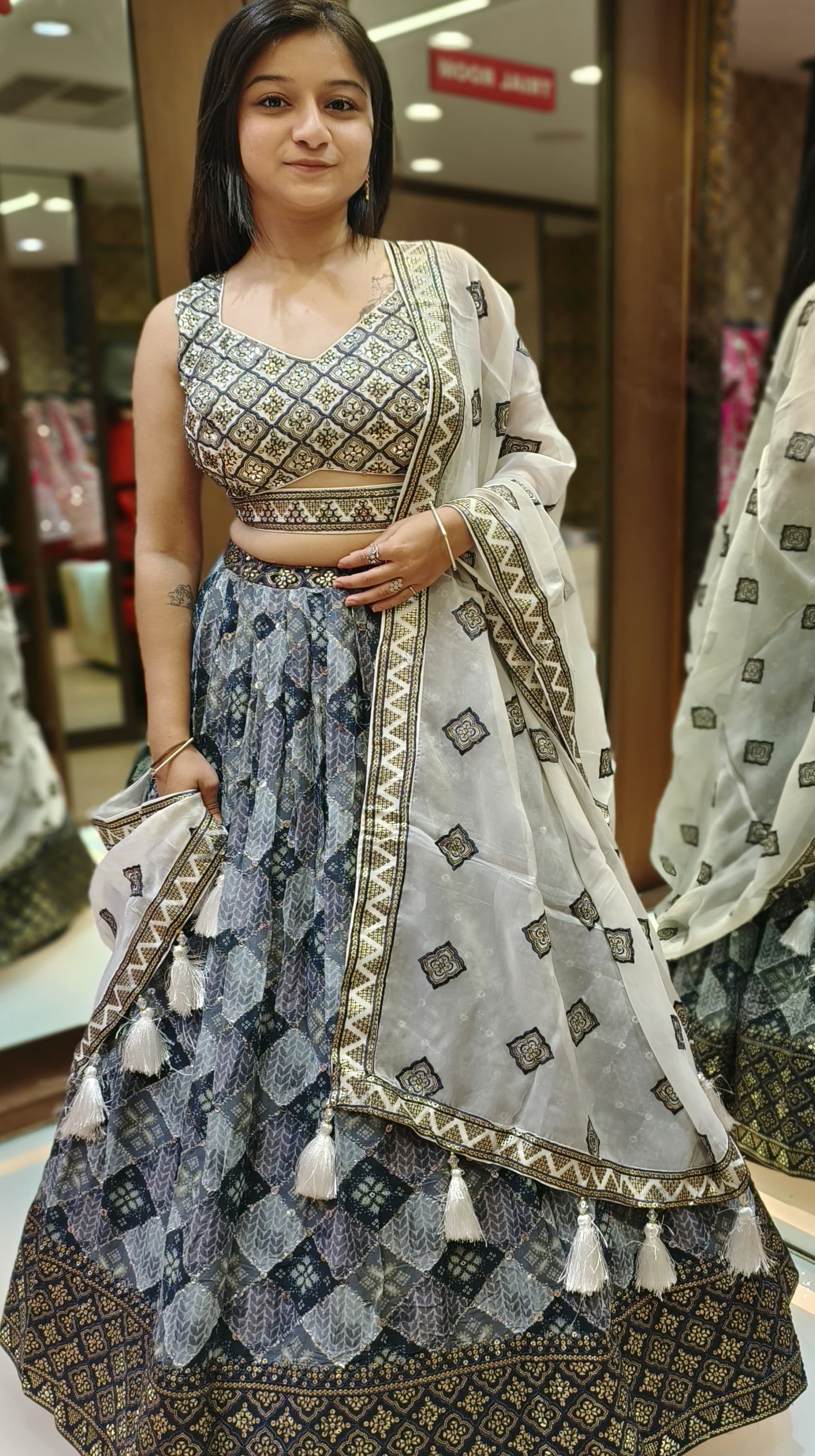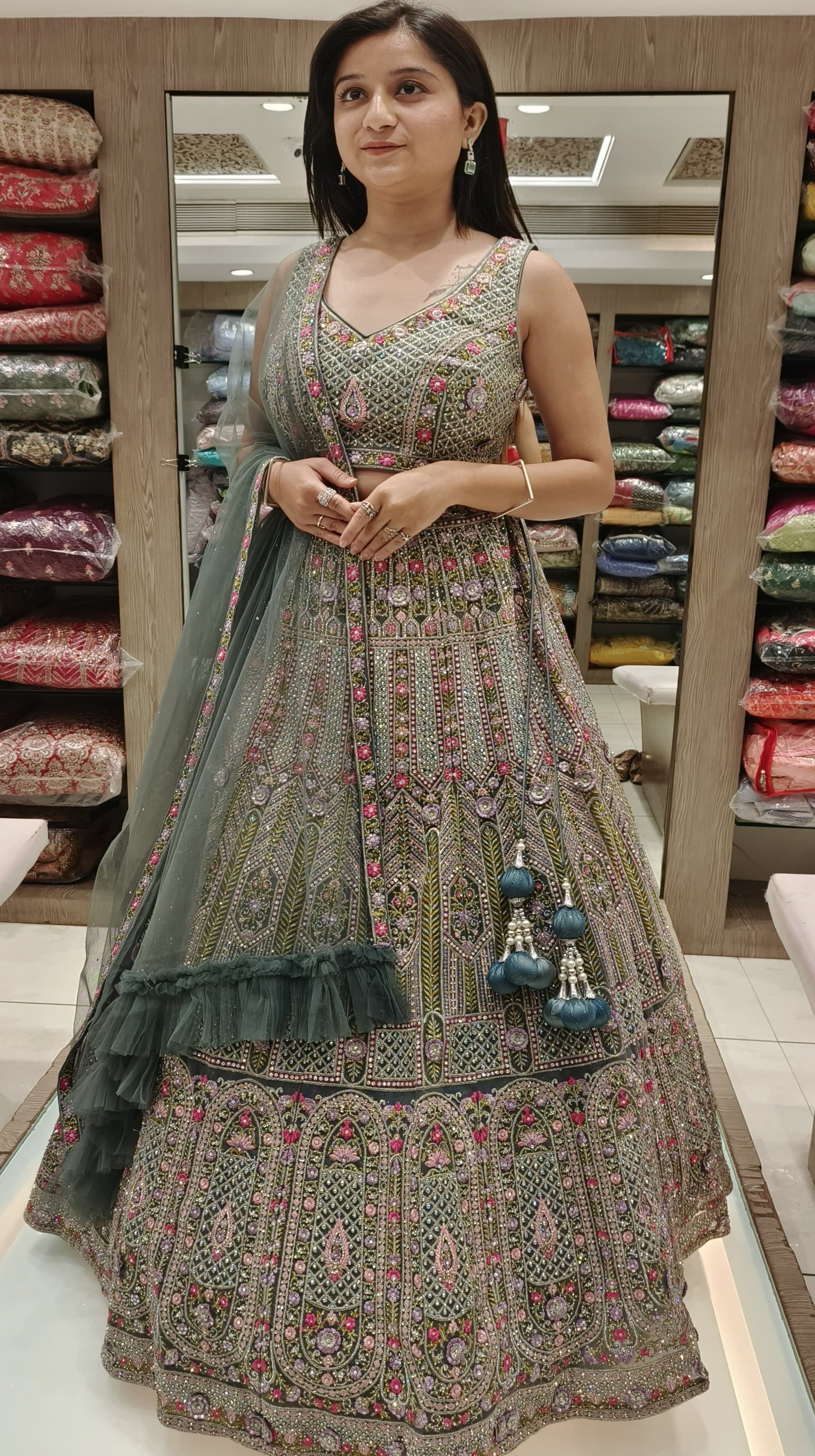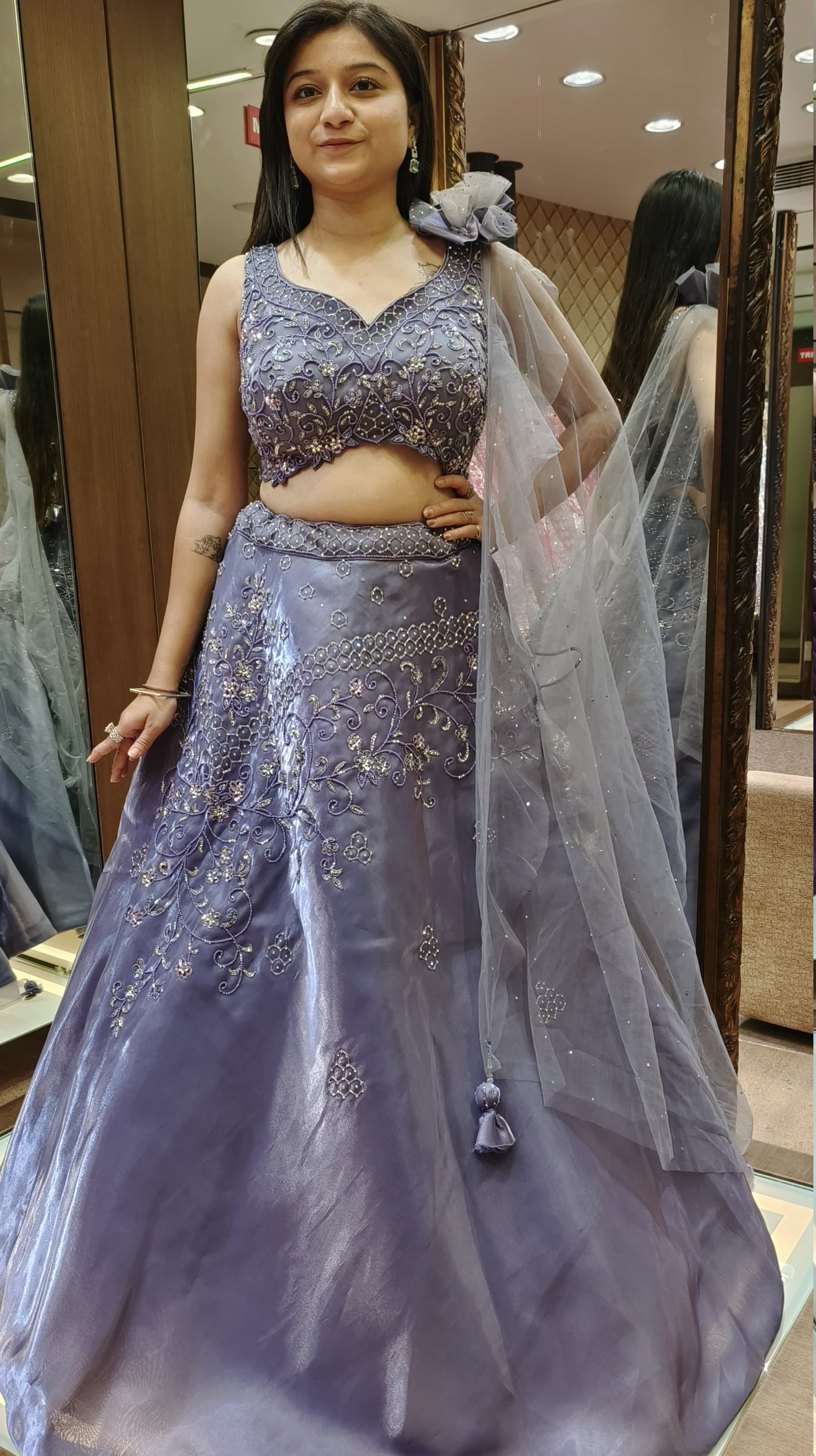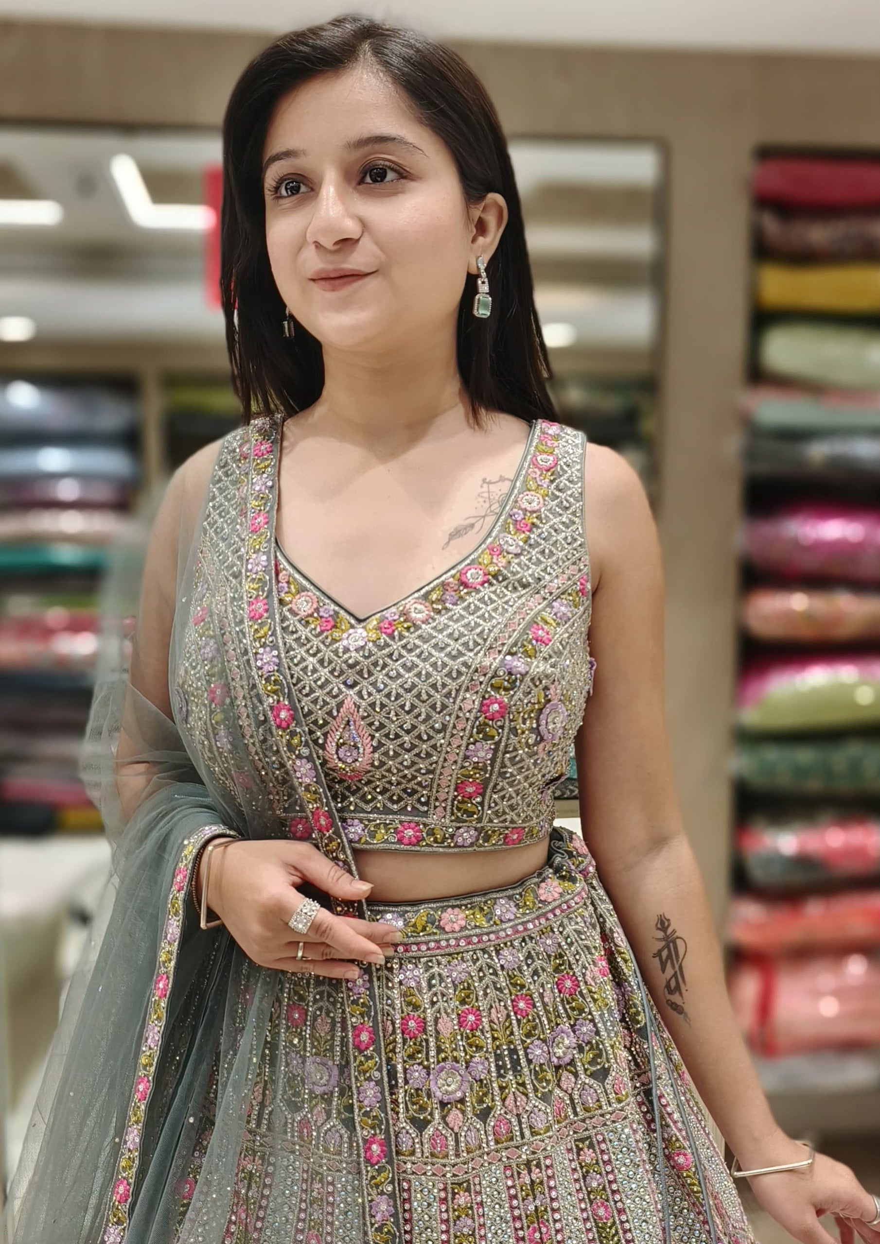 Designer Grey Color Organza Hand Work Lehenga Choli
