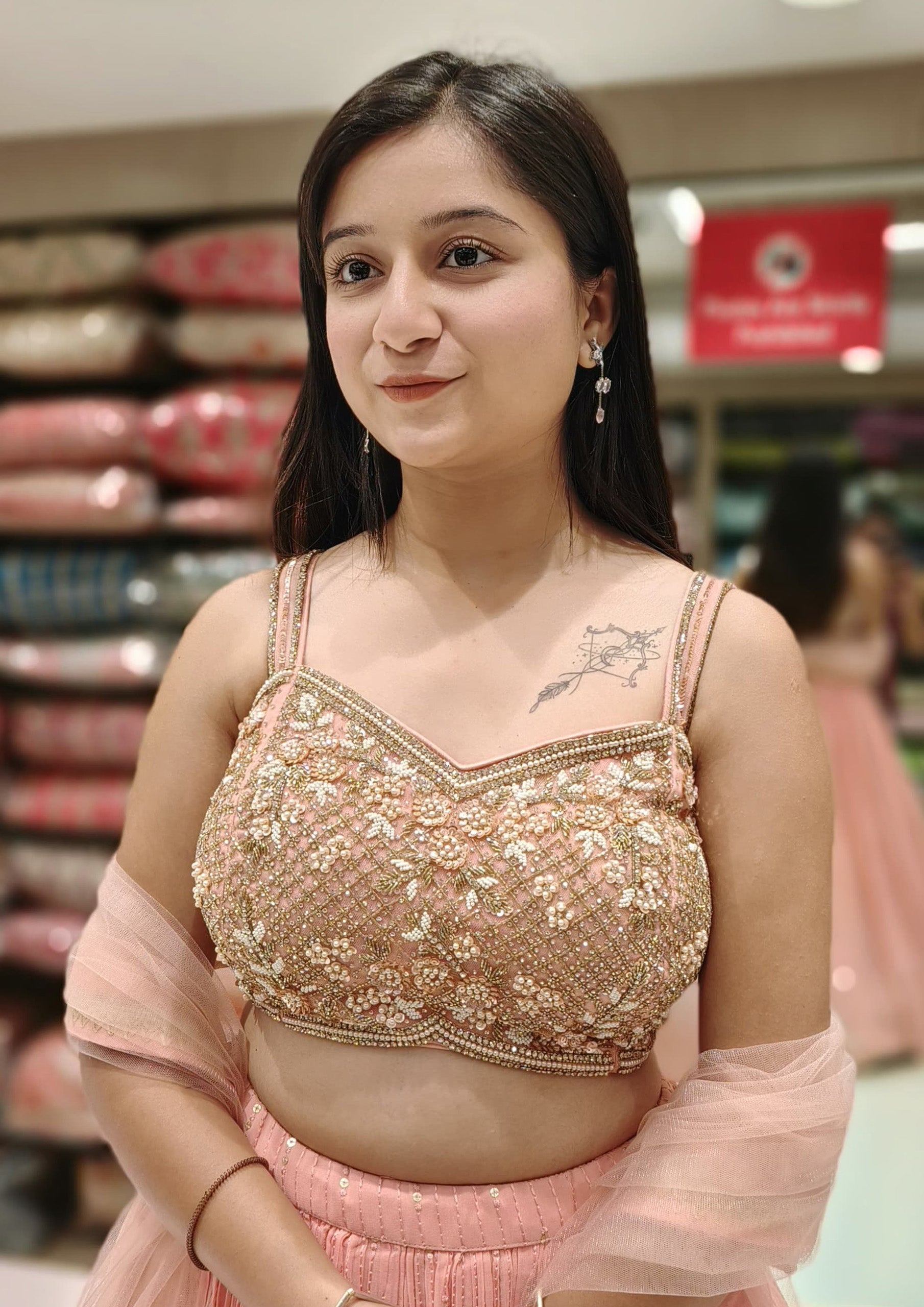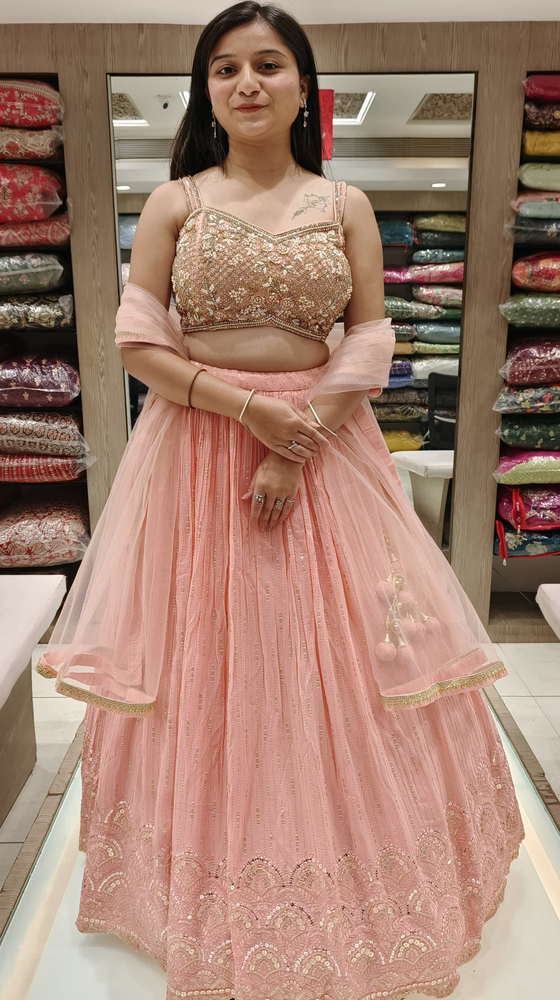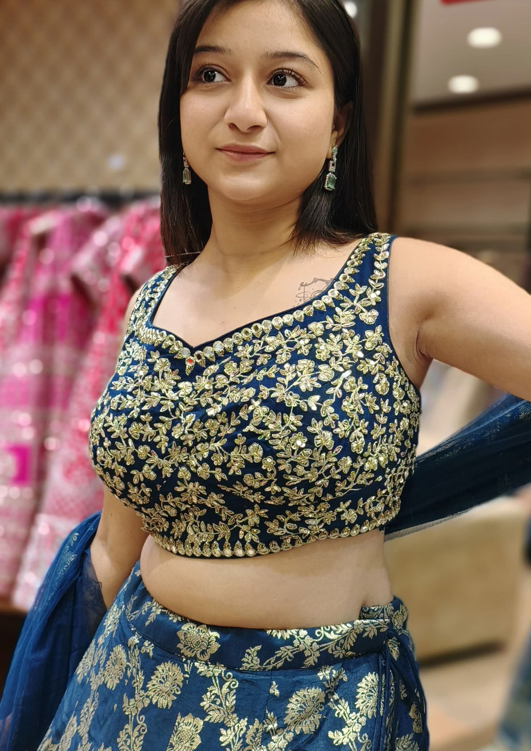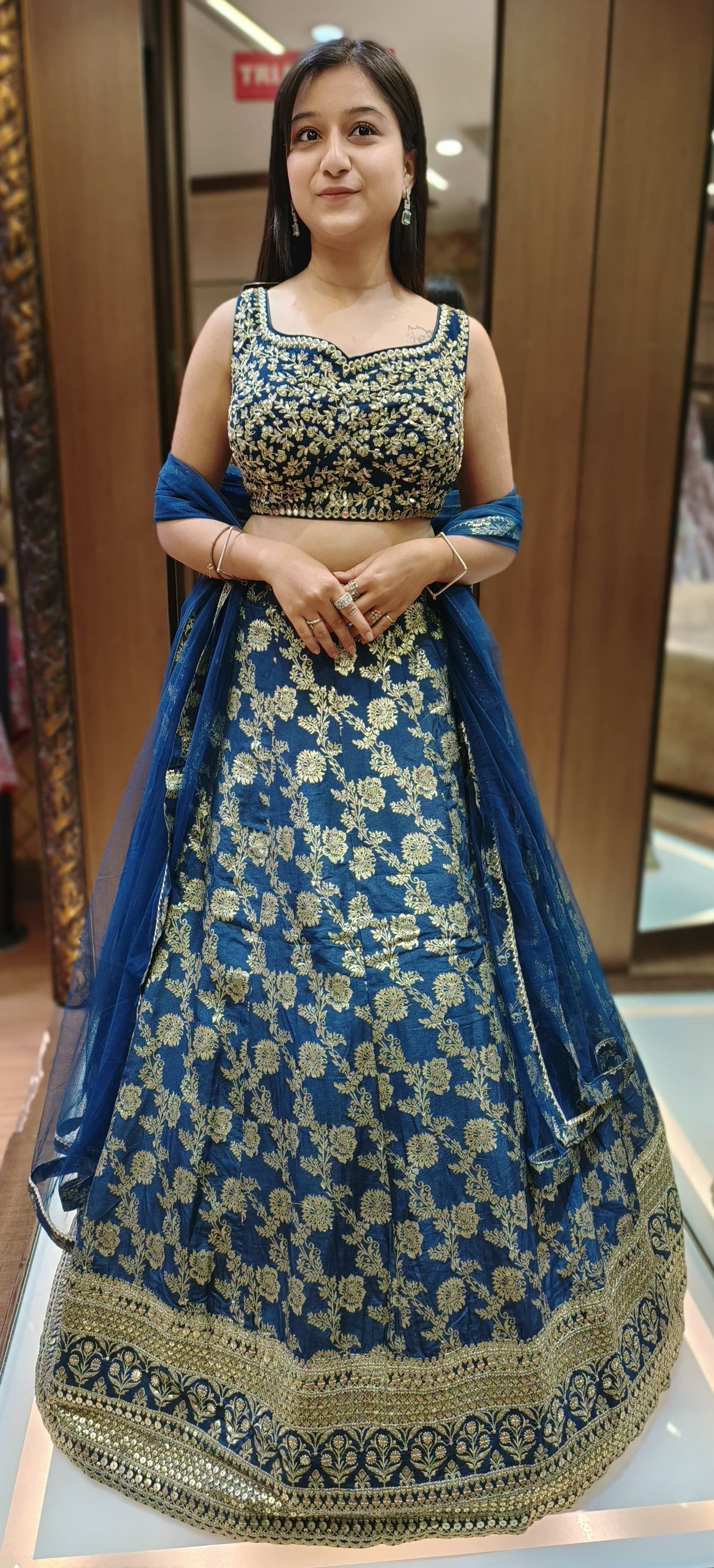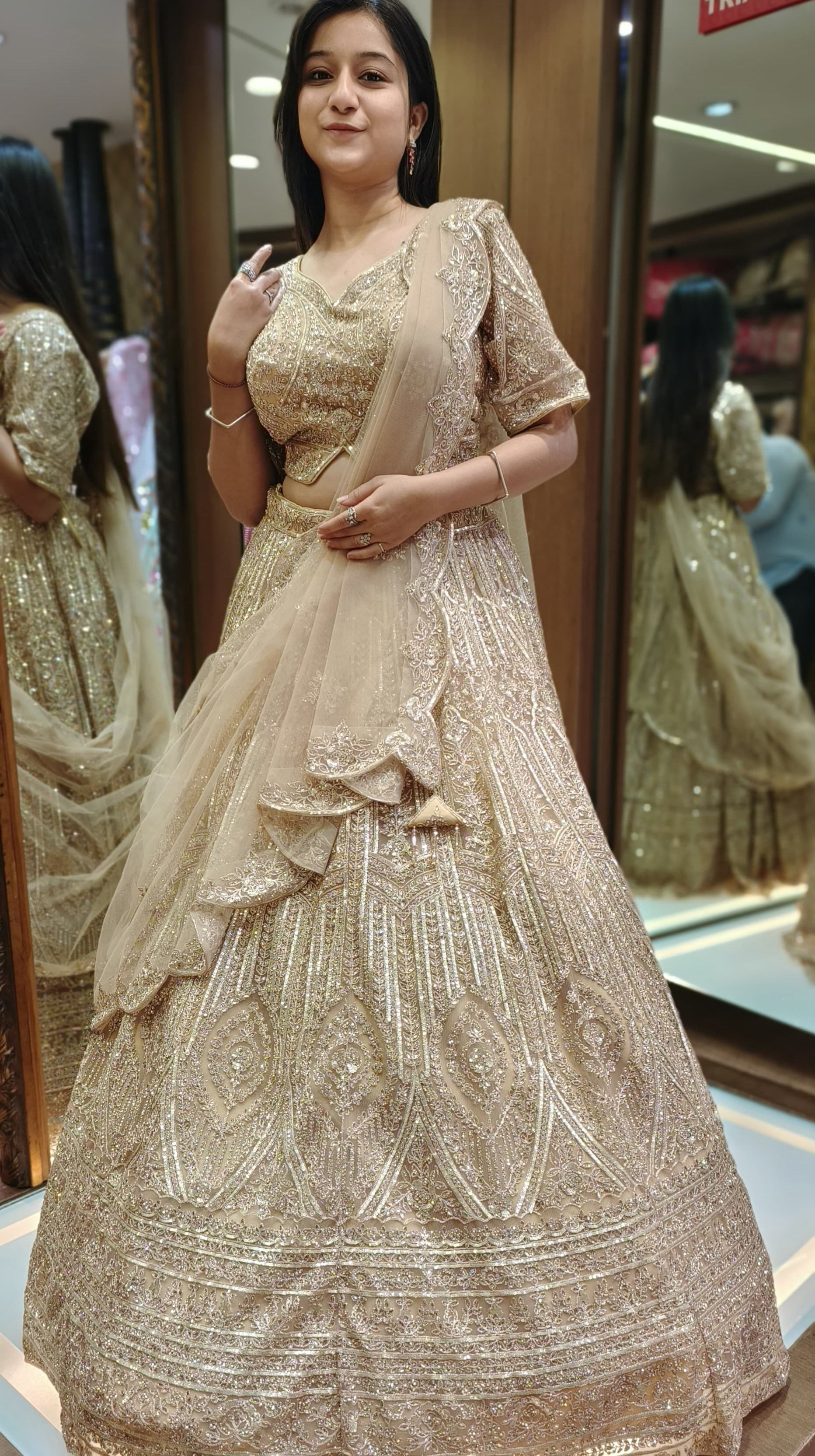 Gold Color Hand Sequins Work Net Lehenga Choli
