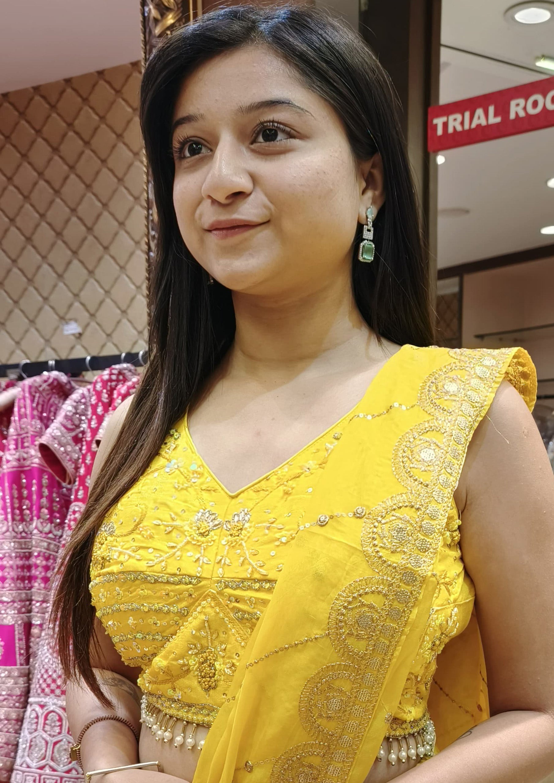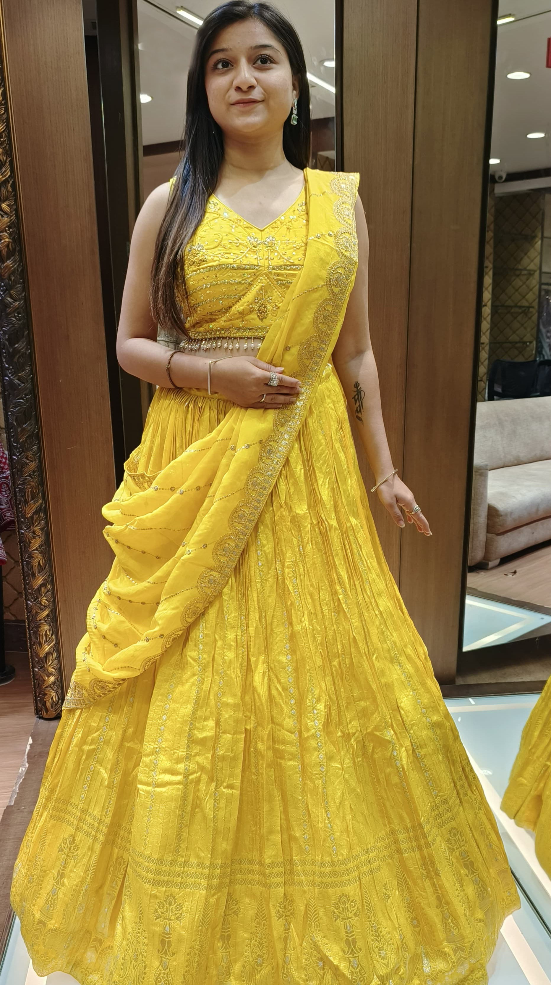 Yellow Color Dola Silk Hand Work Haldi Wear Lehenga