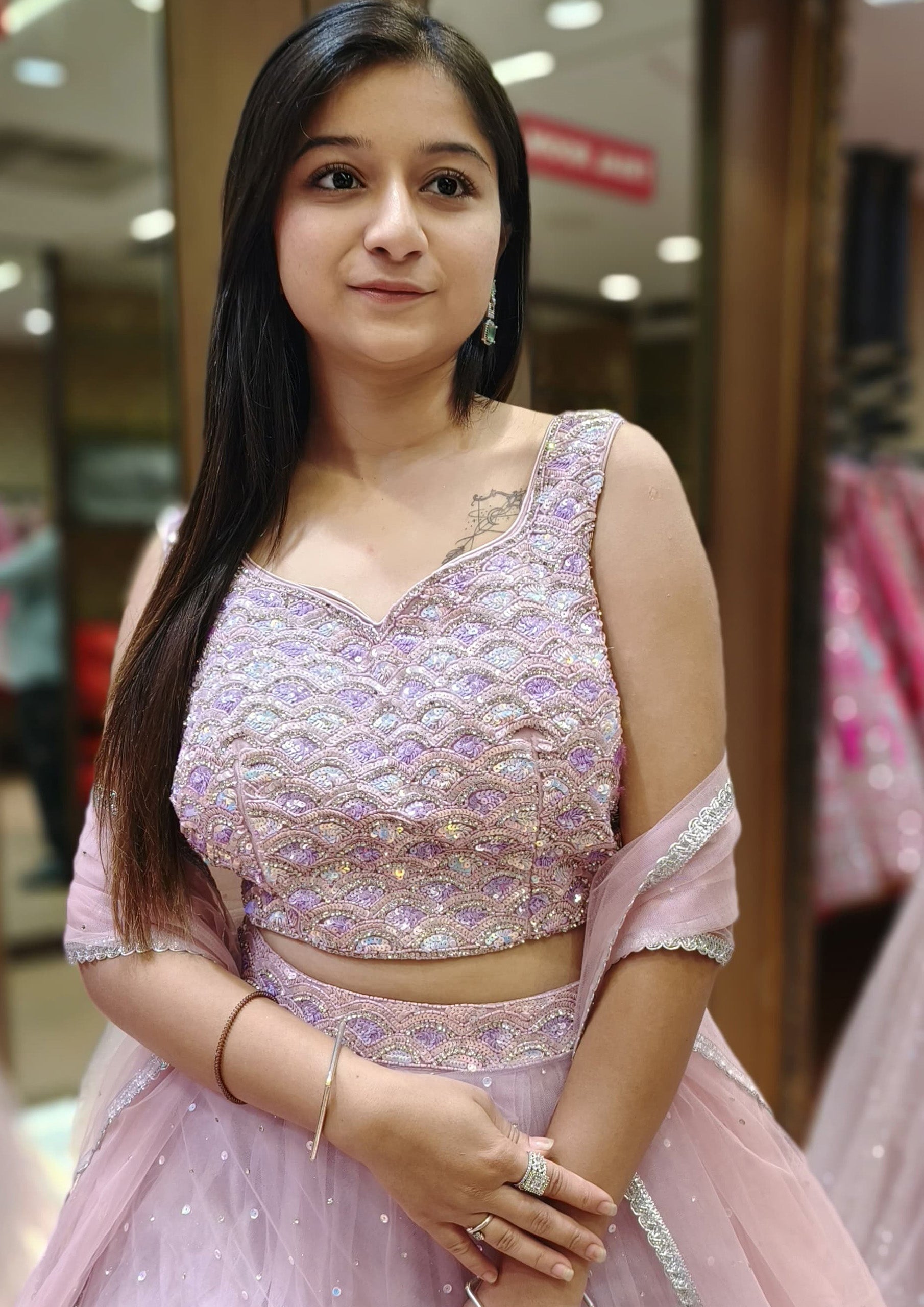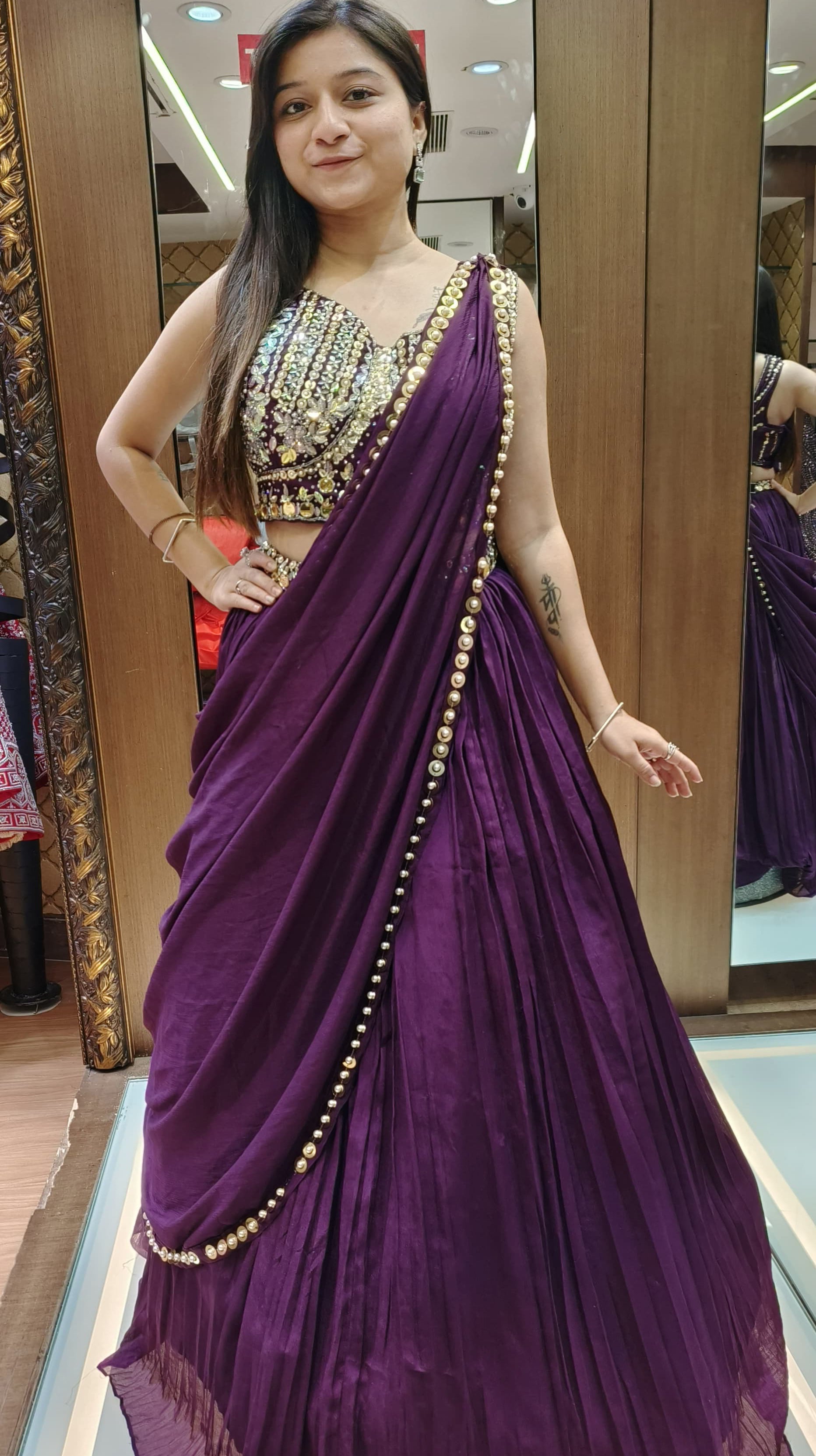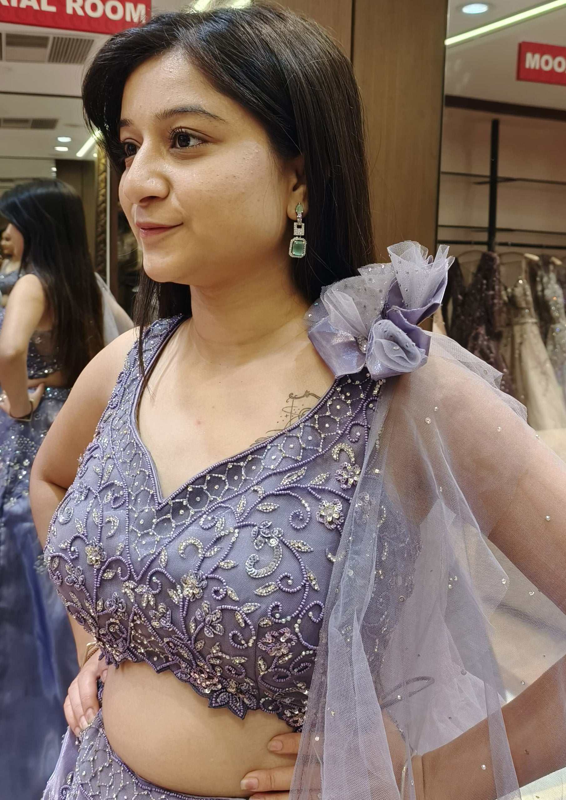 Purple Color Chinnon Hand Work Designer Lehenga Choli