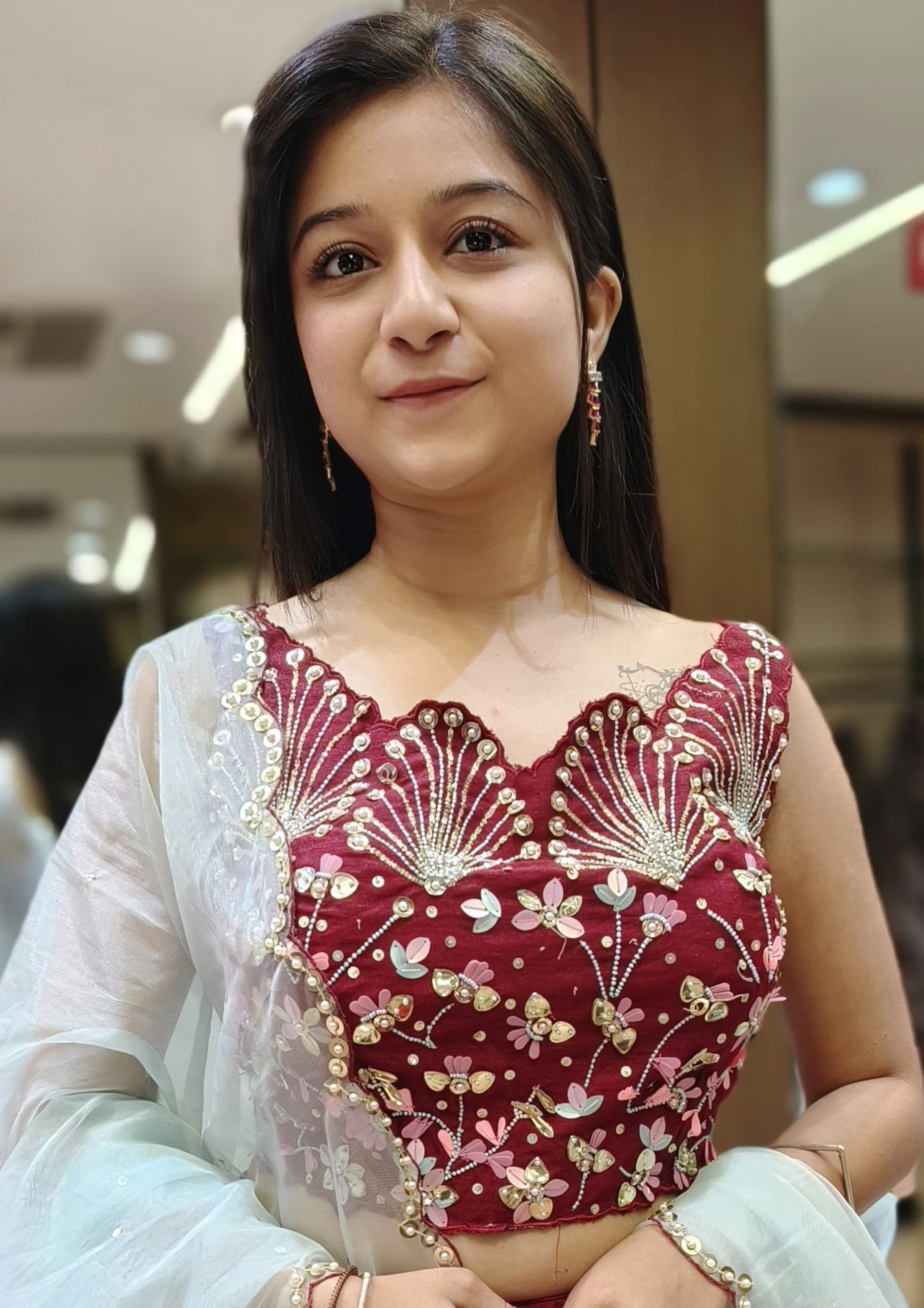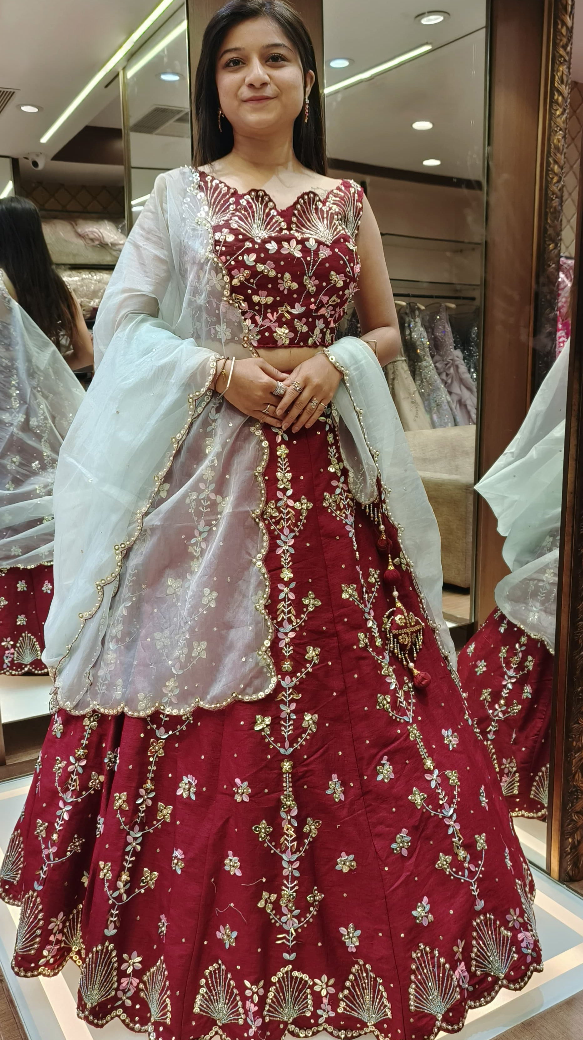 Maroon Color Raw Silk Hand Work Lehenga Choli