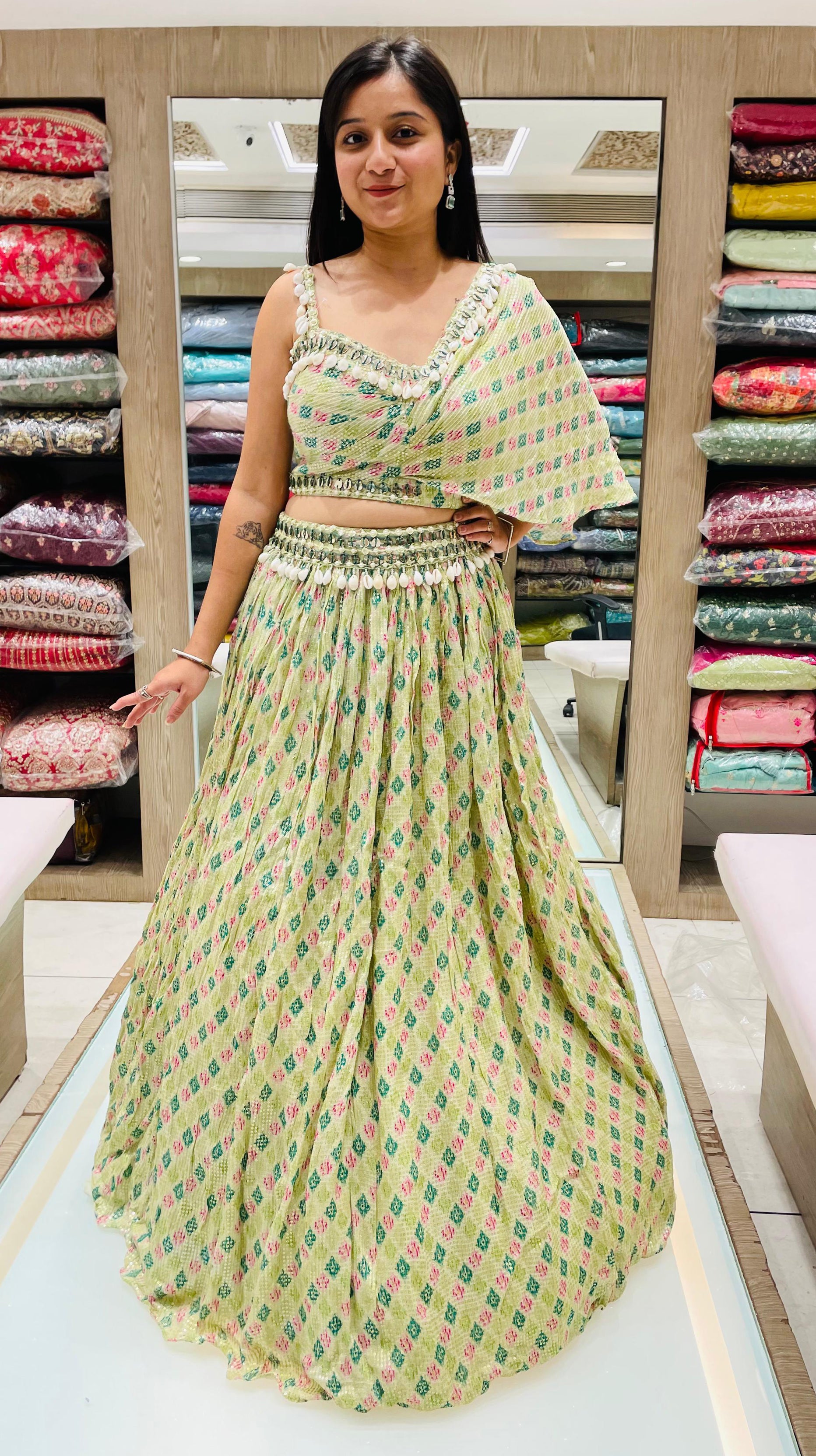 Mehndi Green Color Net Resham Work Lehenga Choli