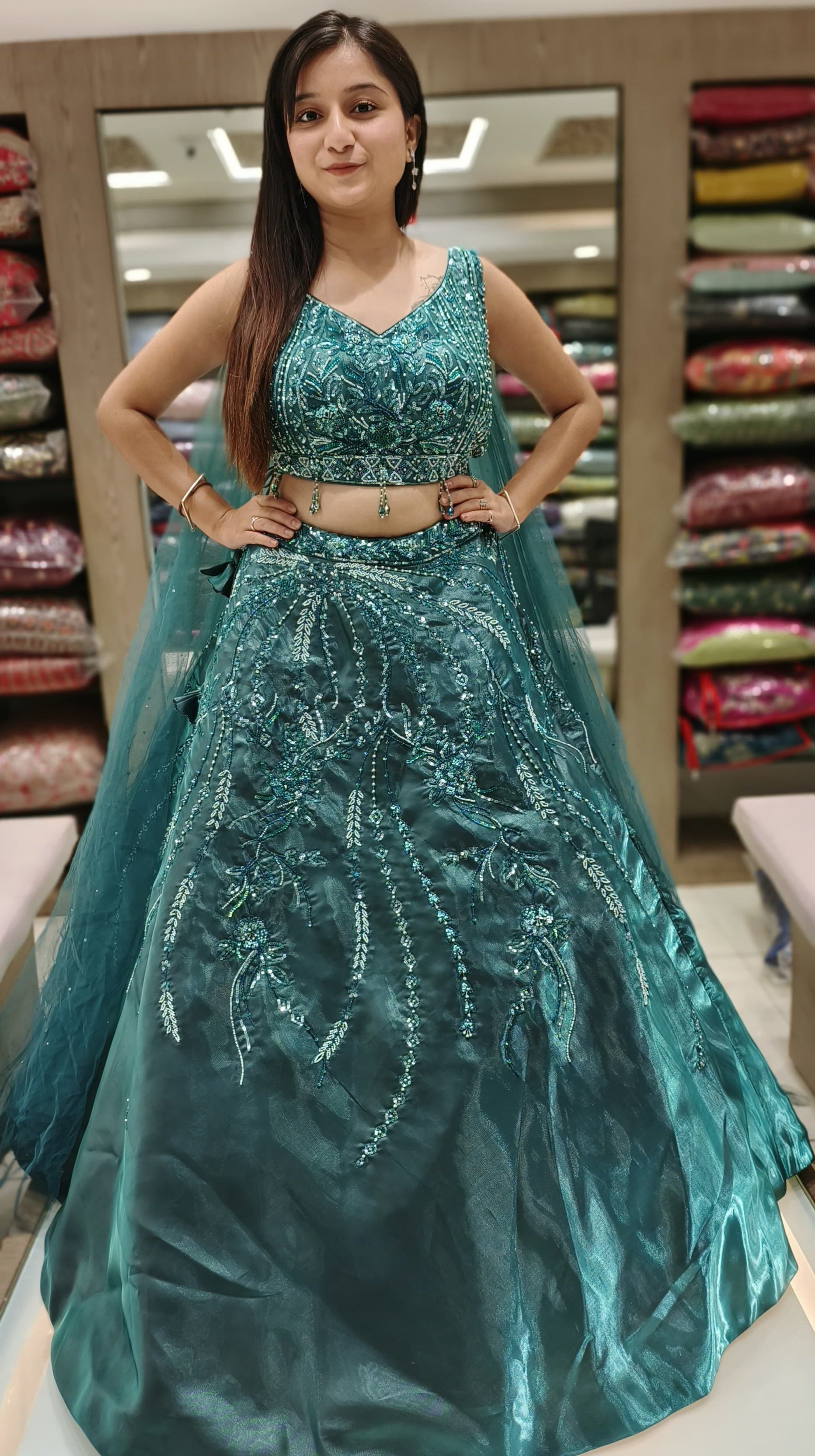 Dark Rama Color Organza Beads Work Fancy Lehenga Choli