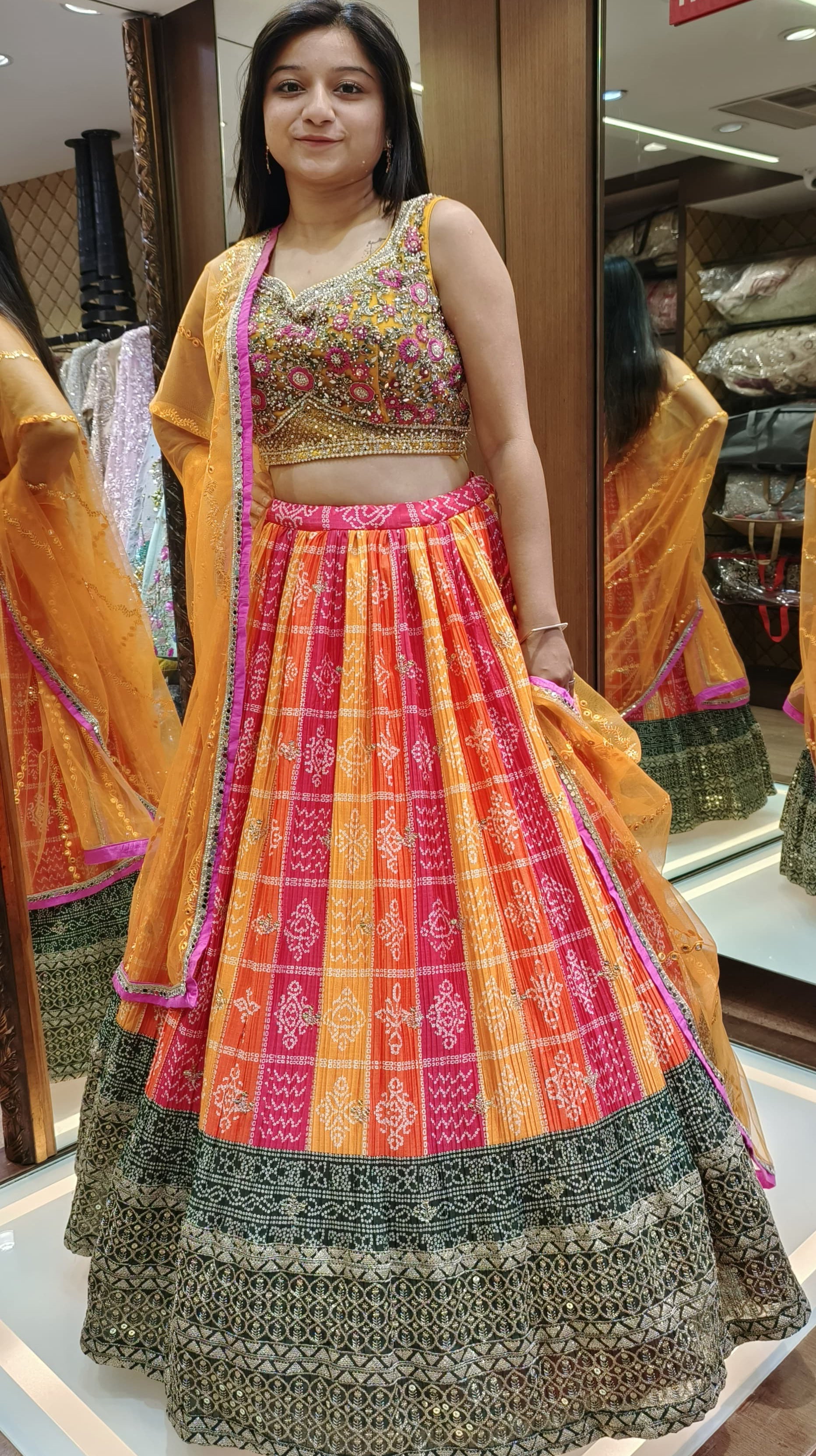 Multi Color Bandhani Silk Hand Work Lehenga Choli