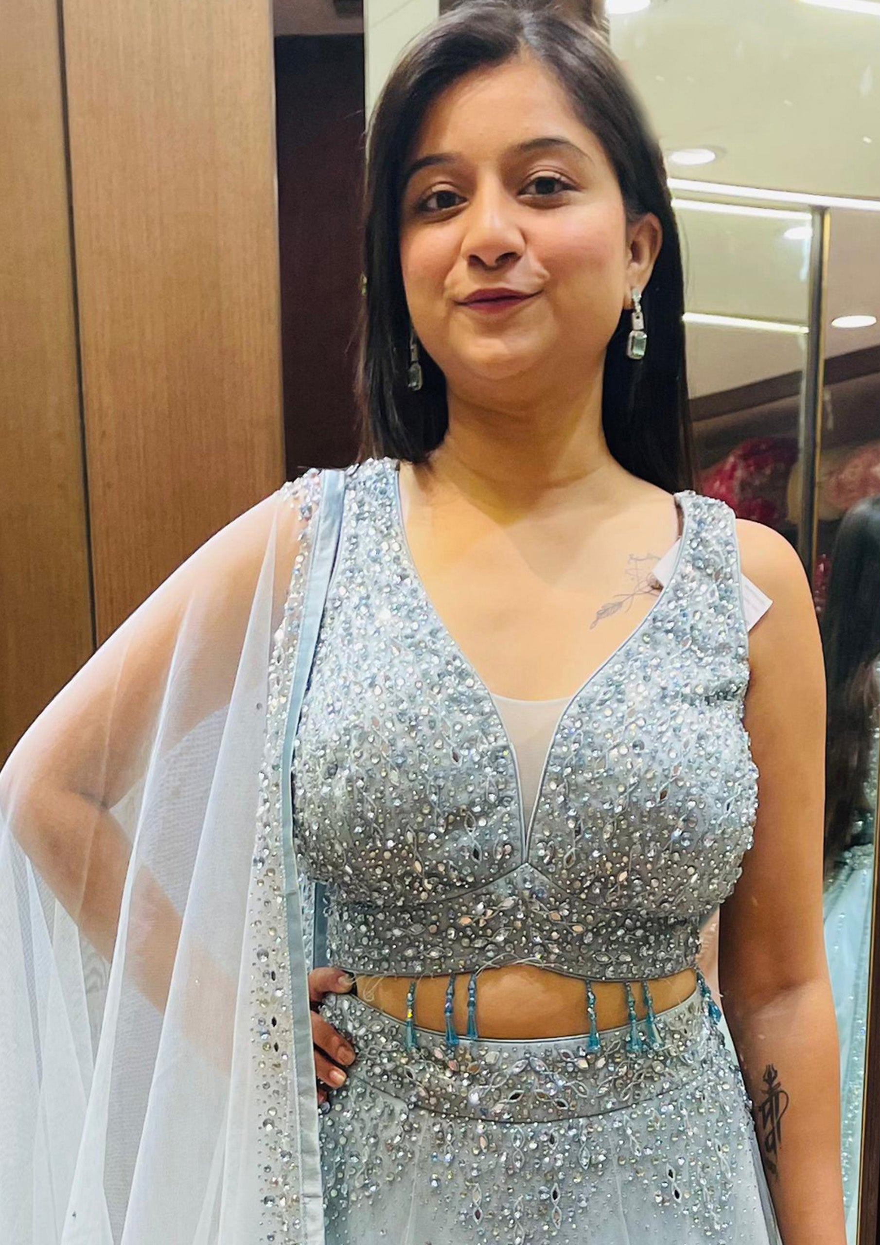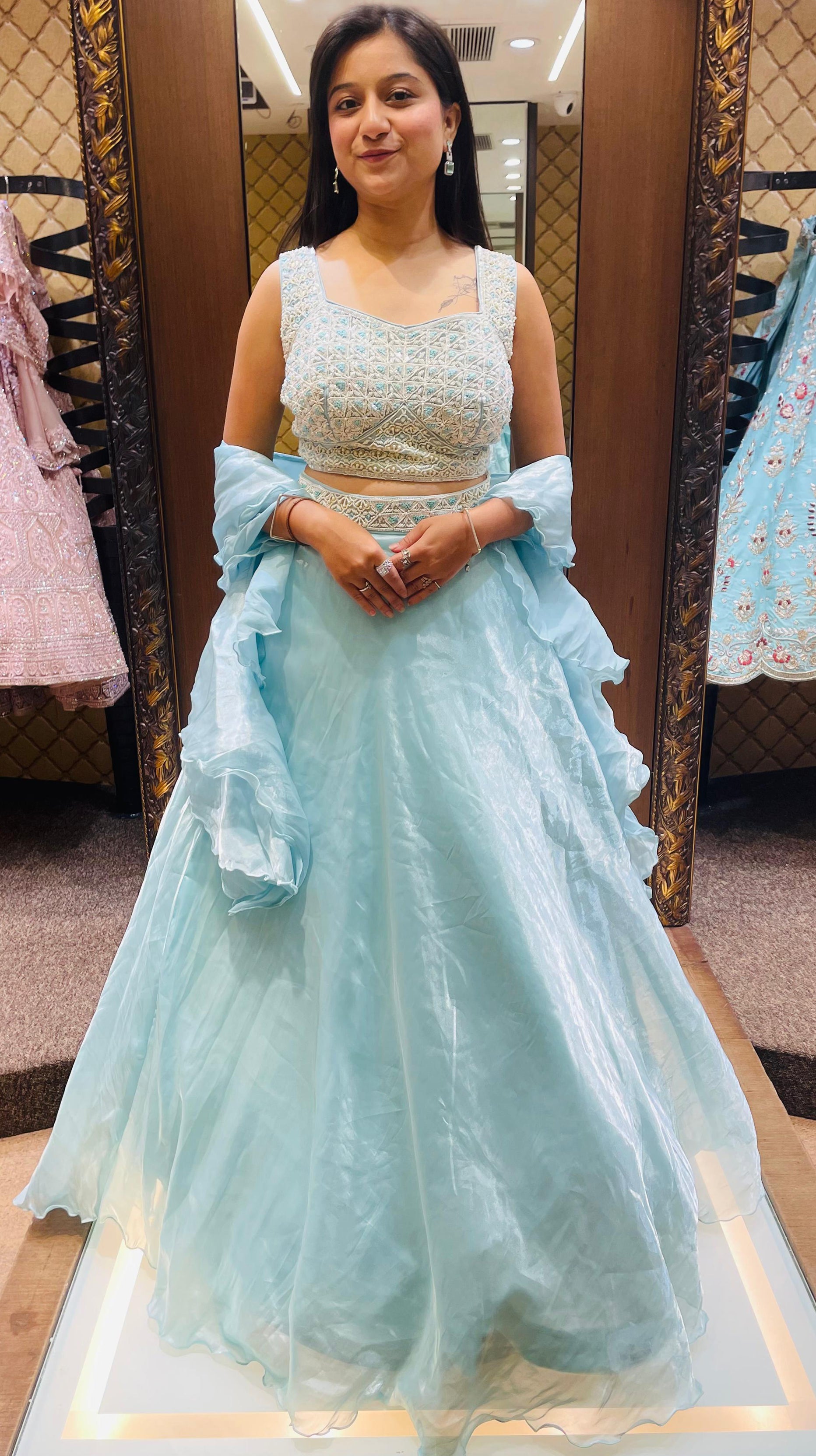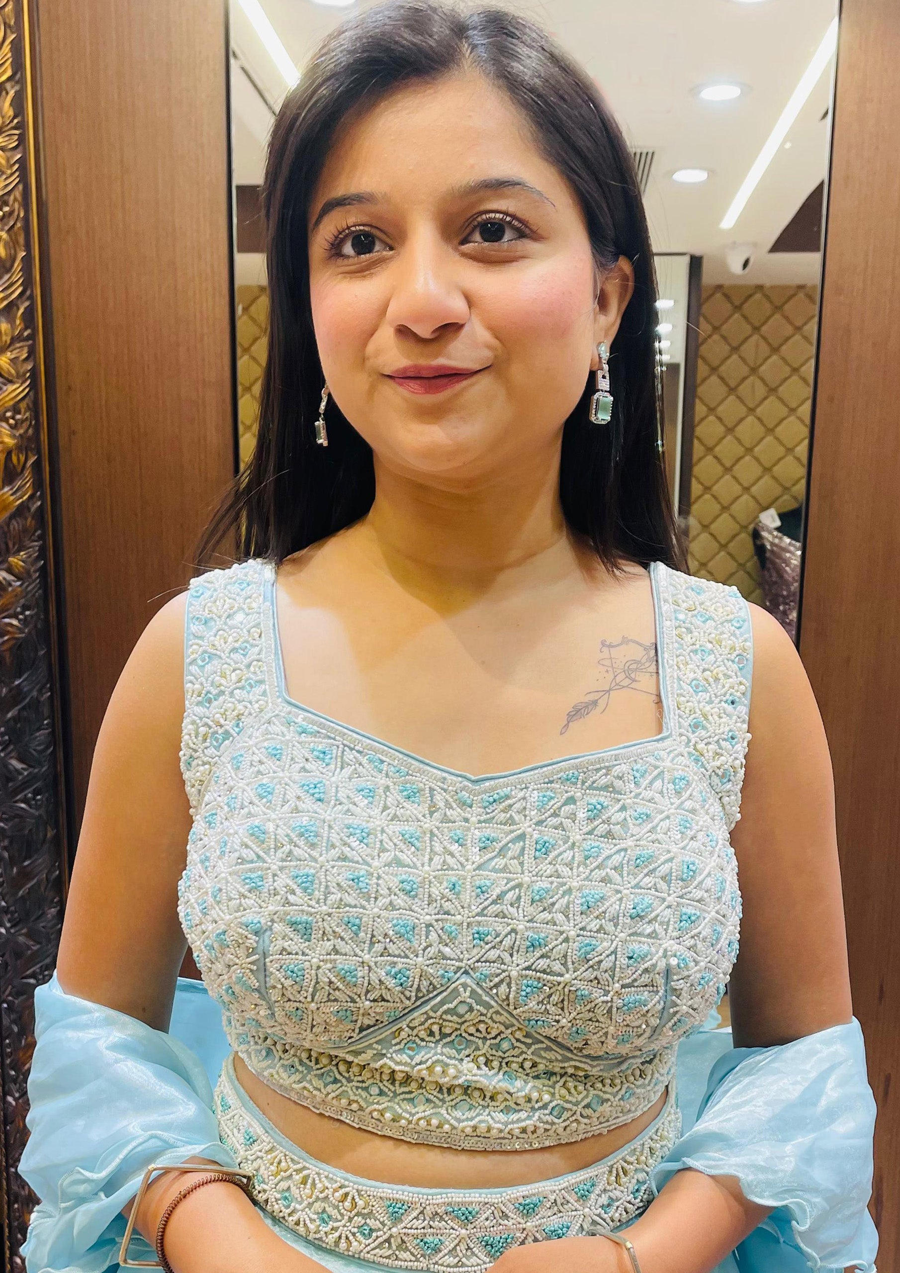 Sky Blue Color Organza Beads Work Lehenga Choli