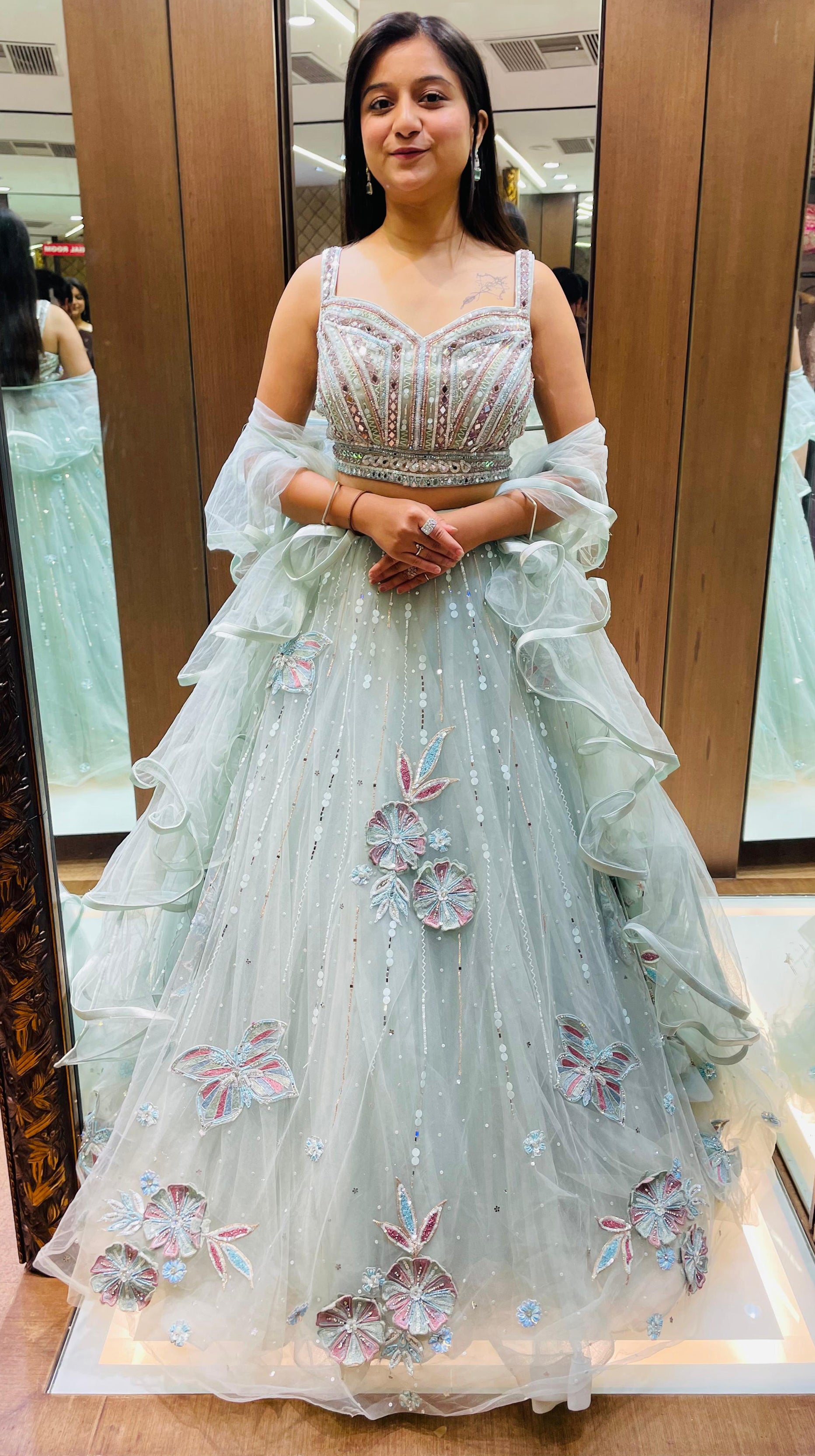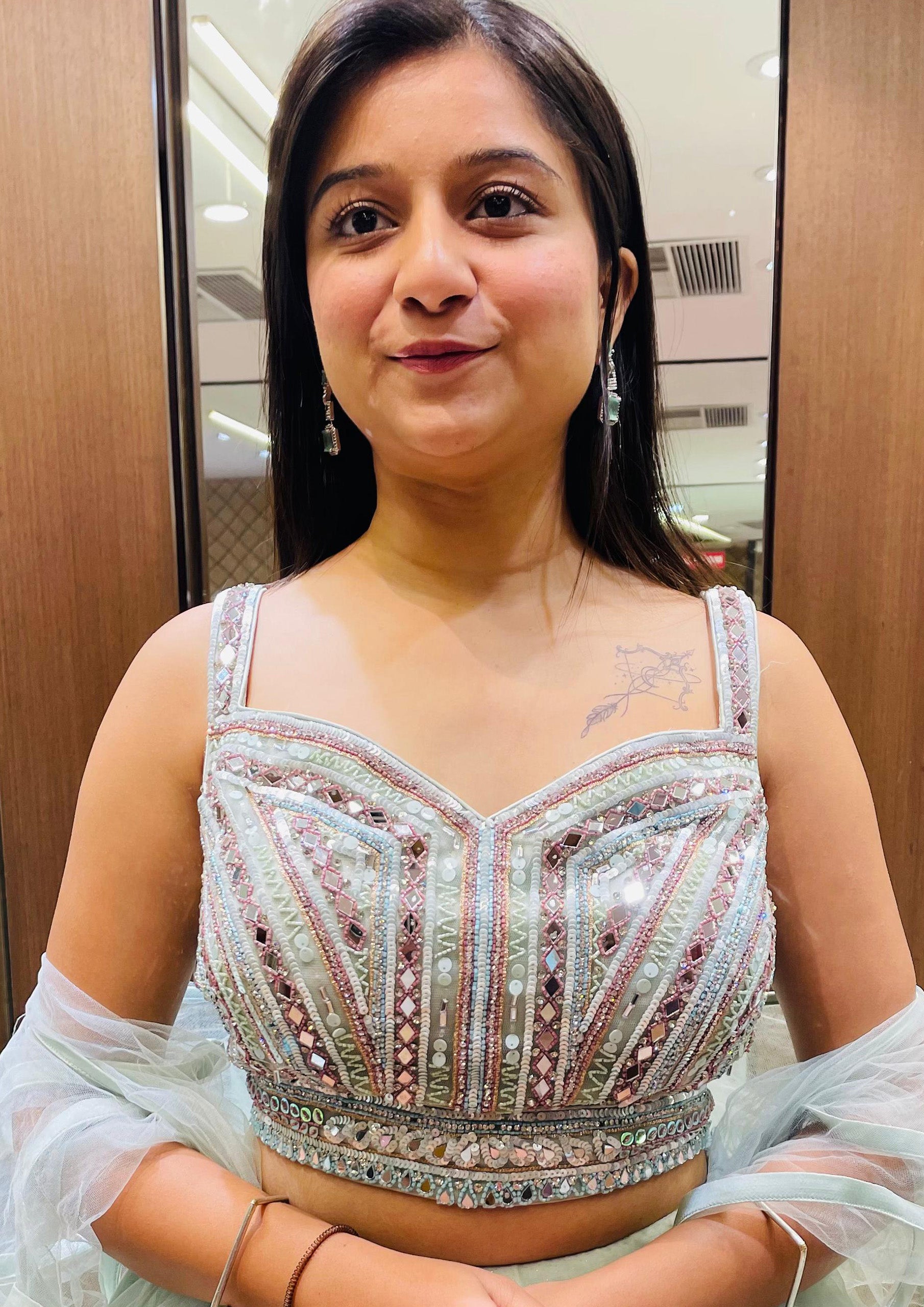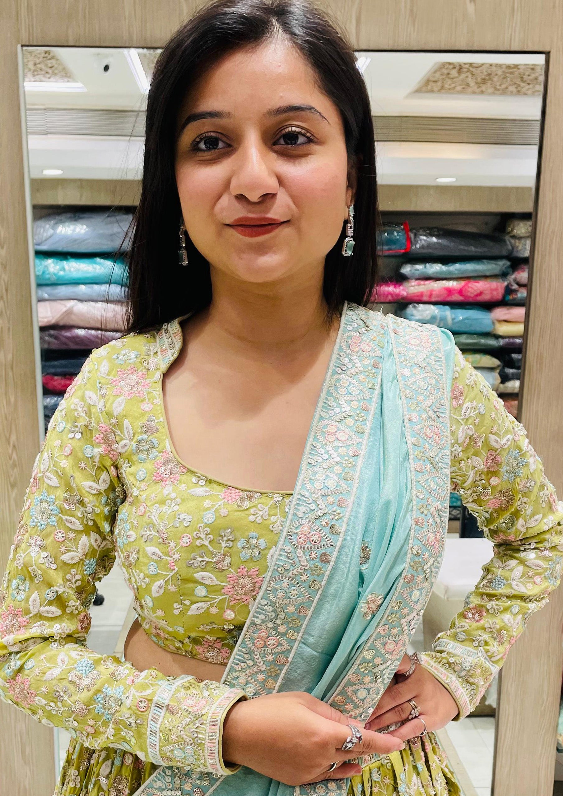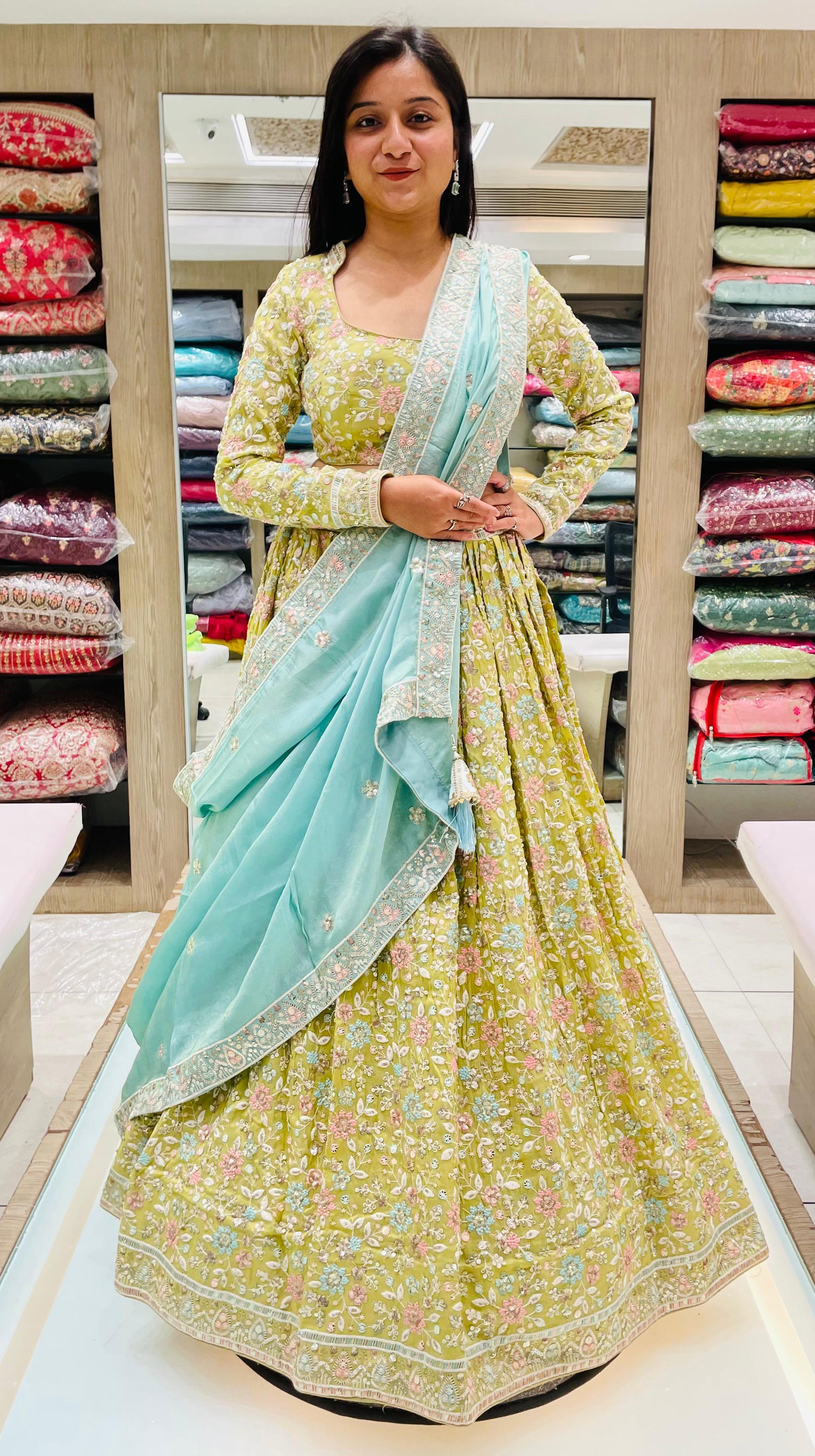 Sky Blue Color Organza Beads Work Lehenga Choli