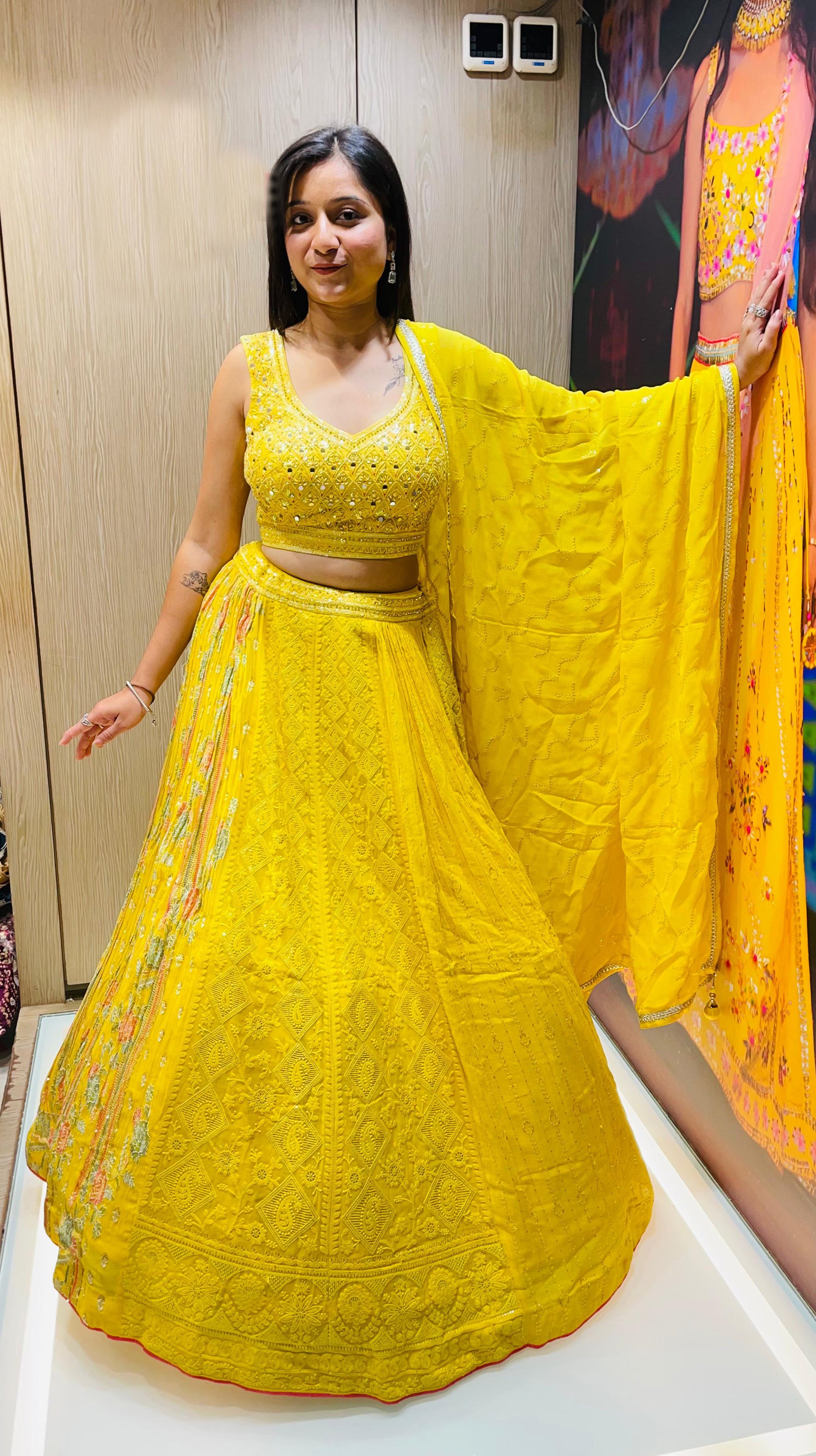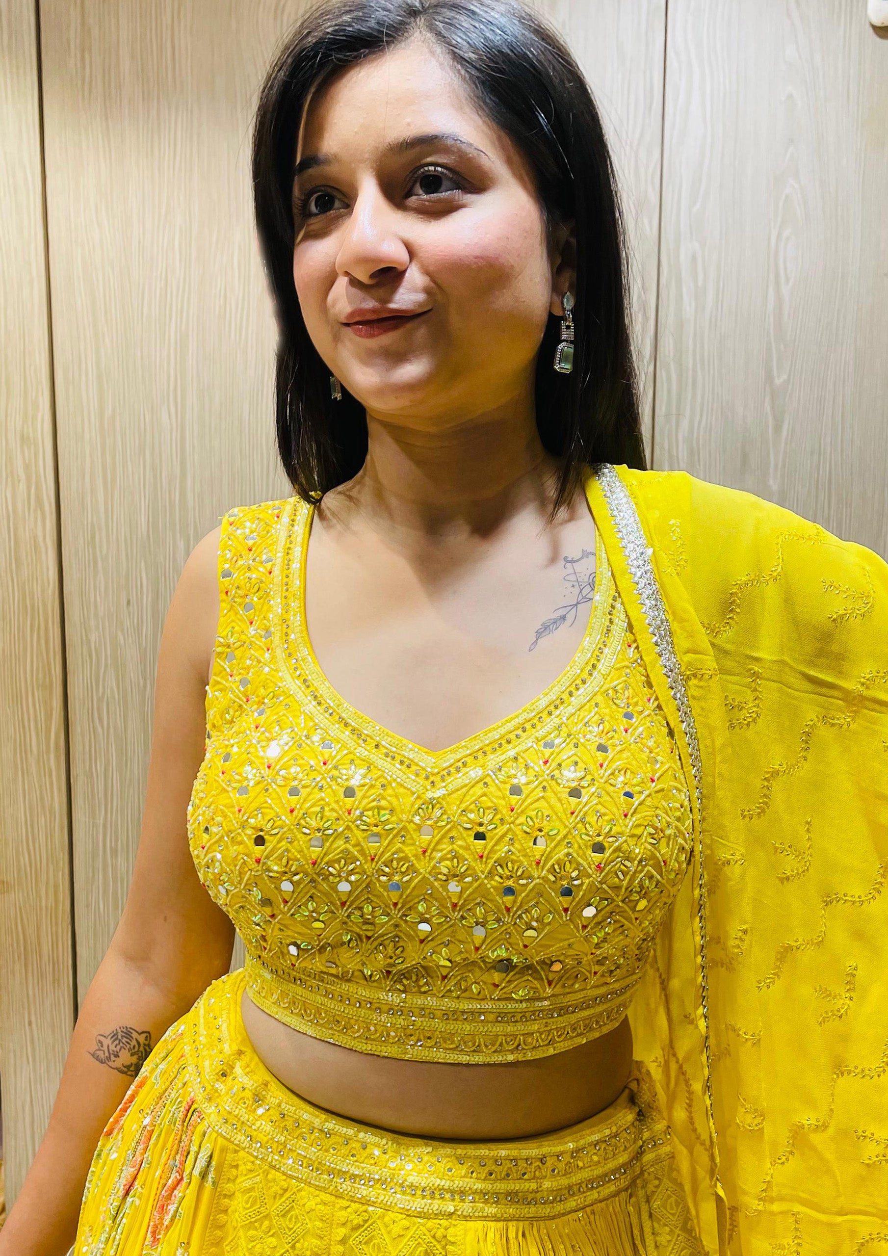 Yellow Color Georgette Lucknowi Work Lehenga Choli