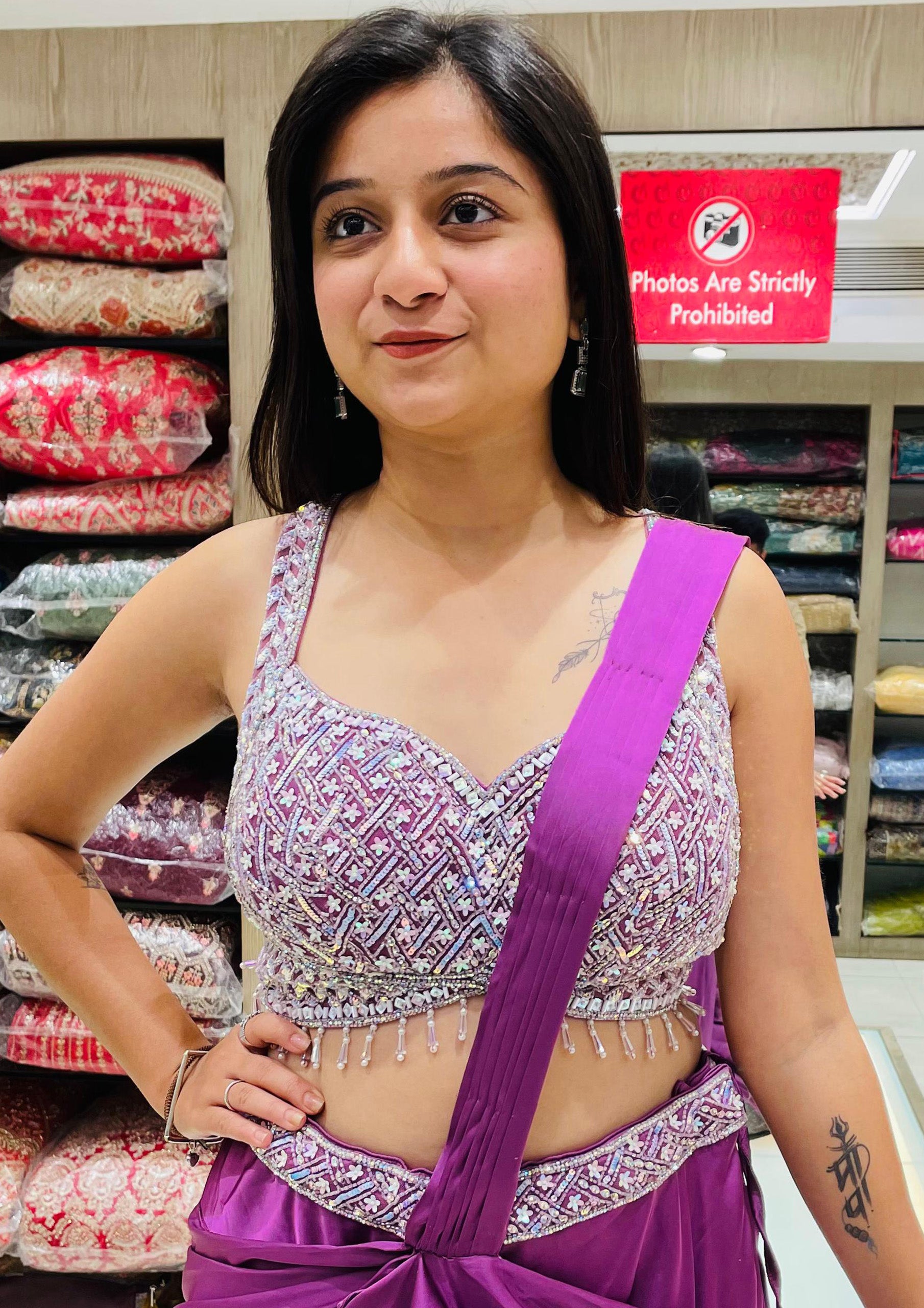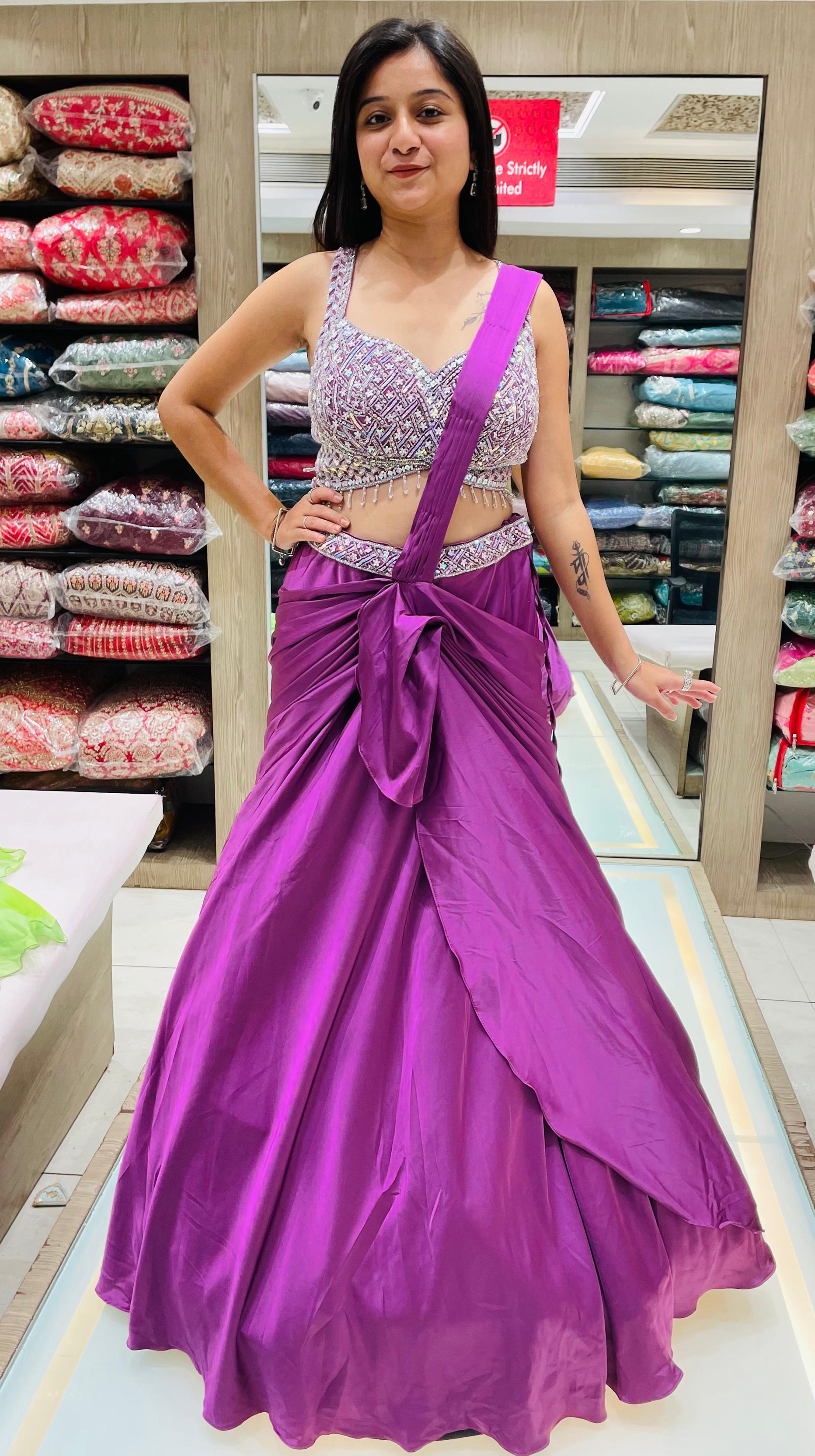 Purple Color Chinnon Hand Work Designer Lehenga Choli