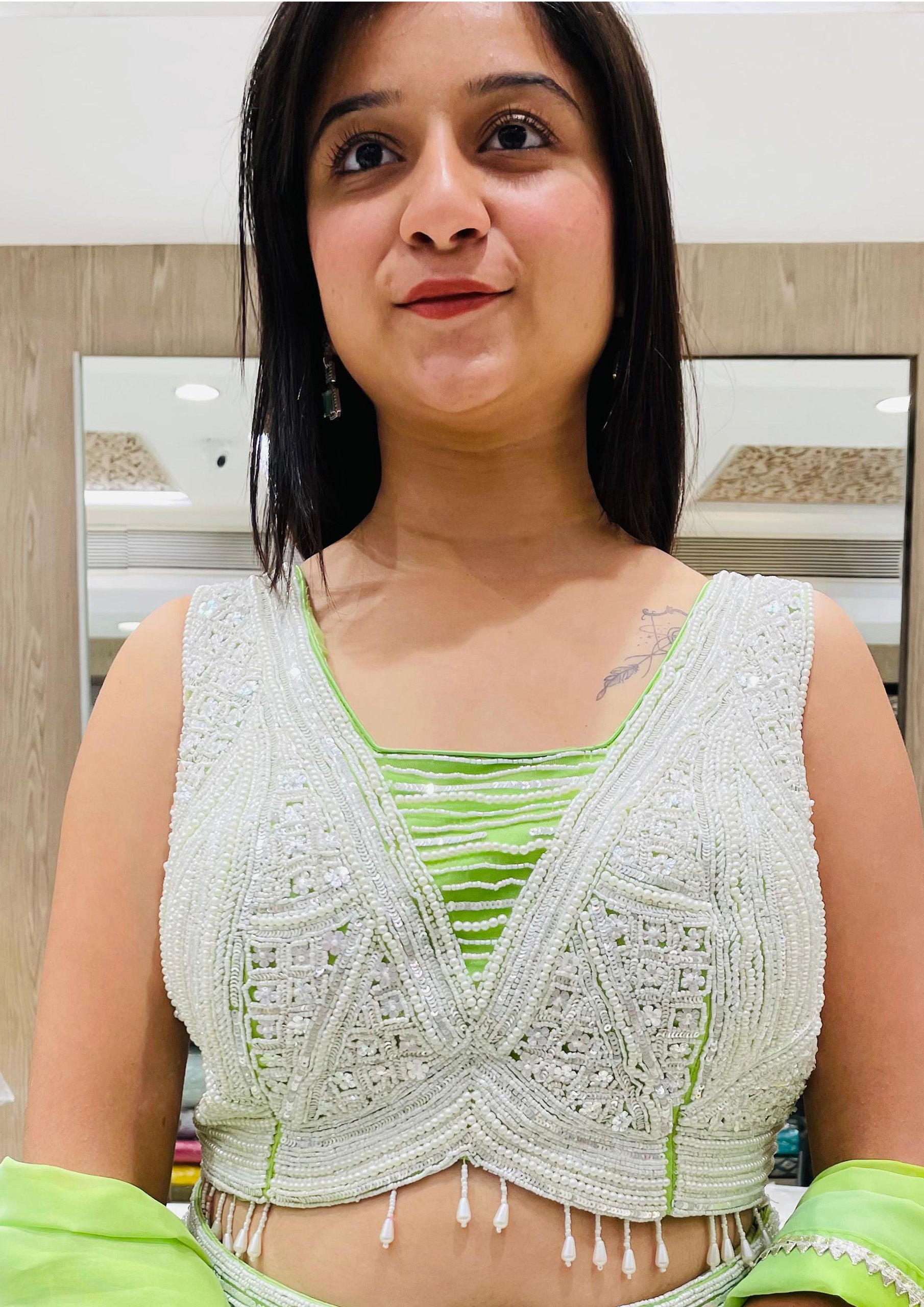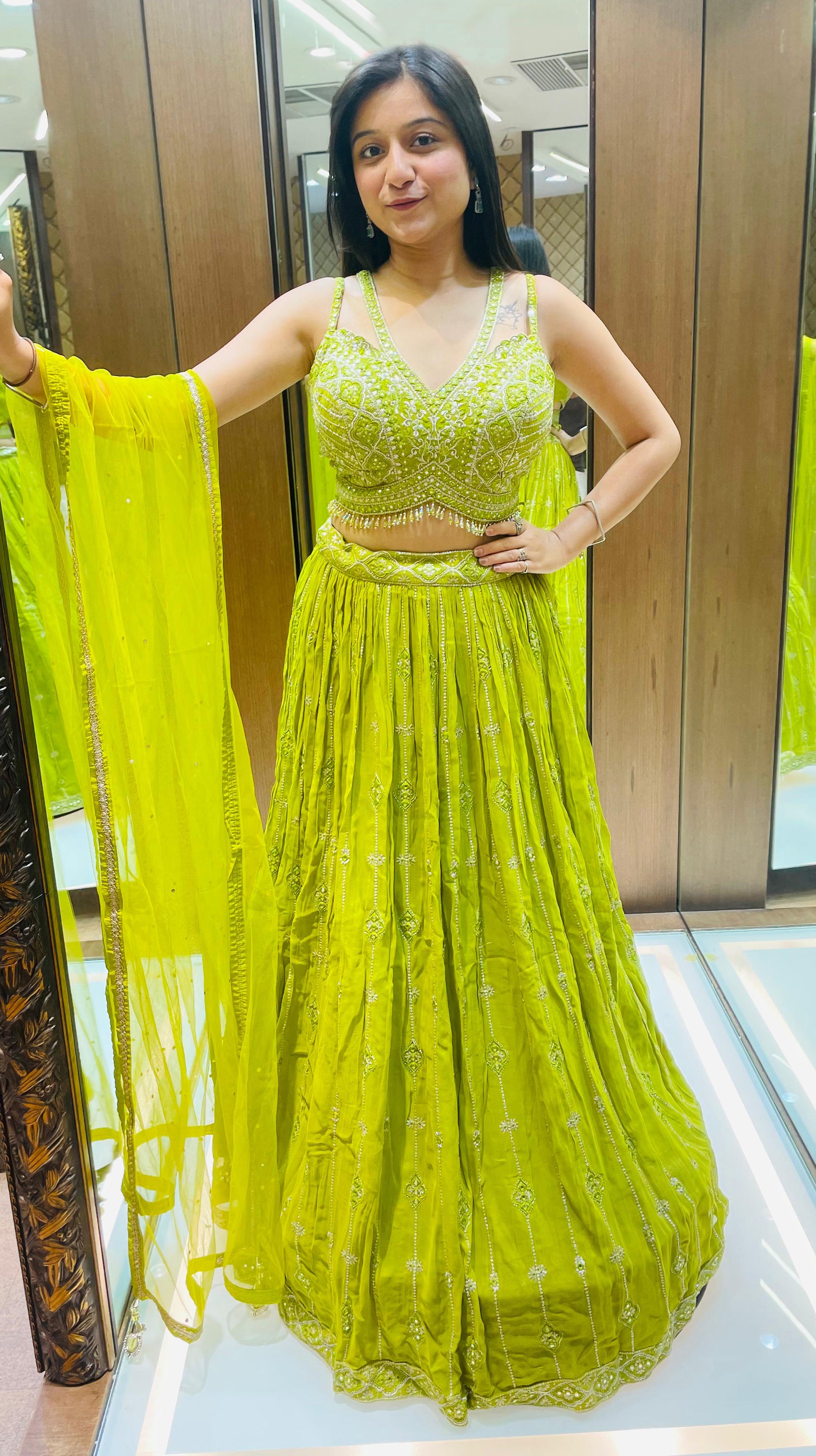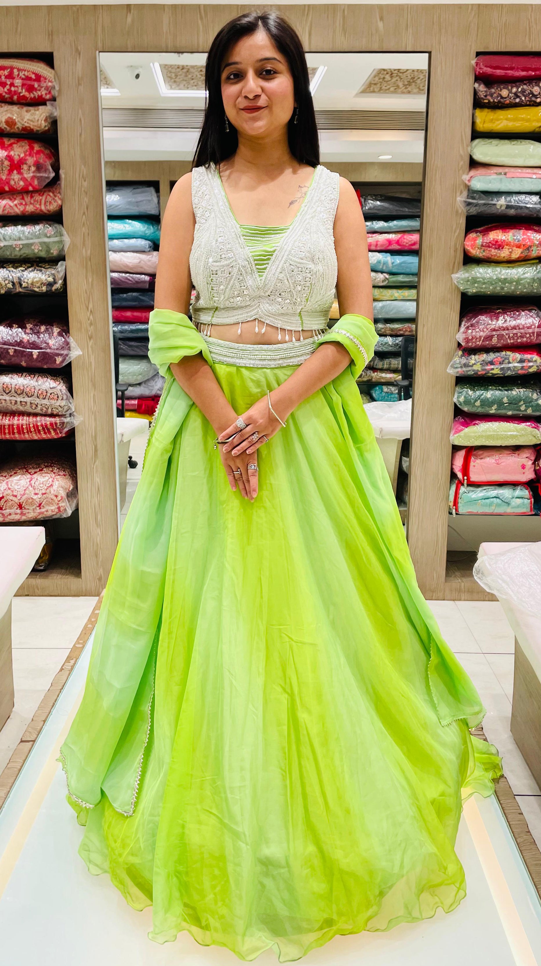Parrot Green Color Georgette Beads Work Lehenga
