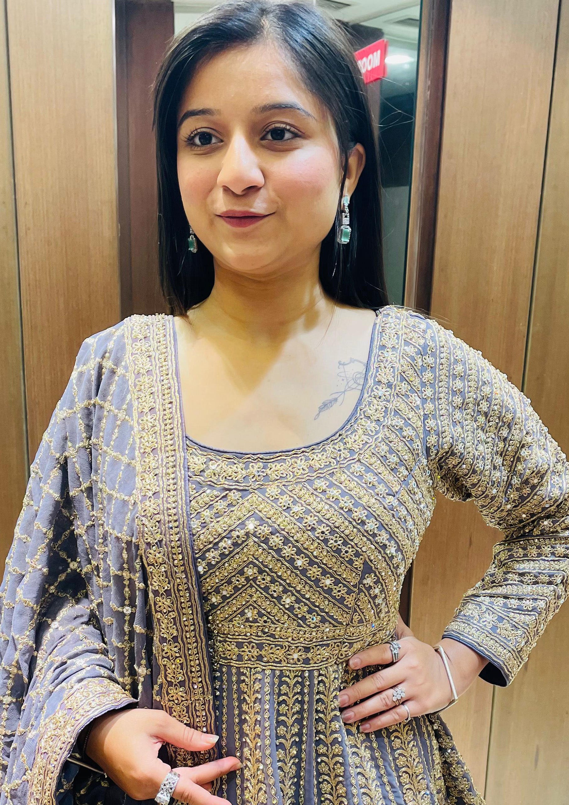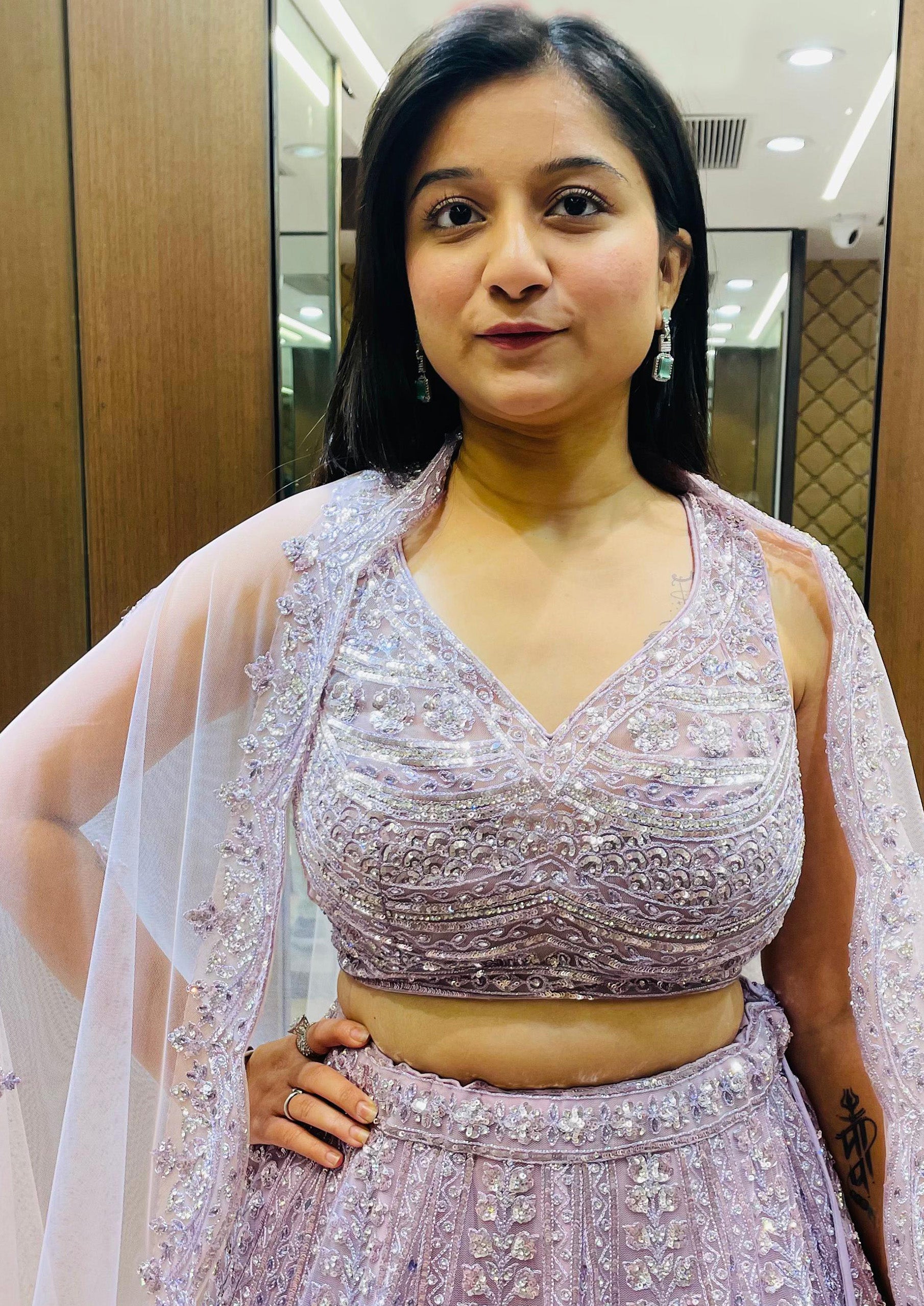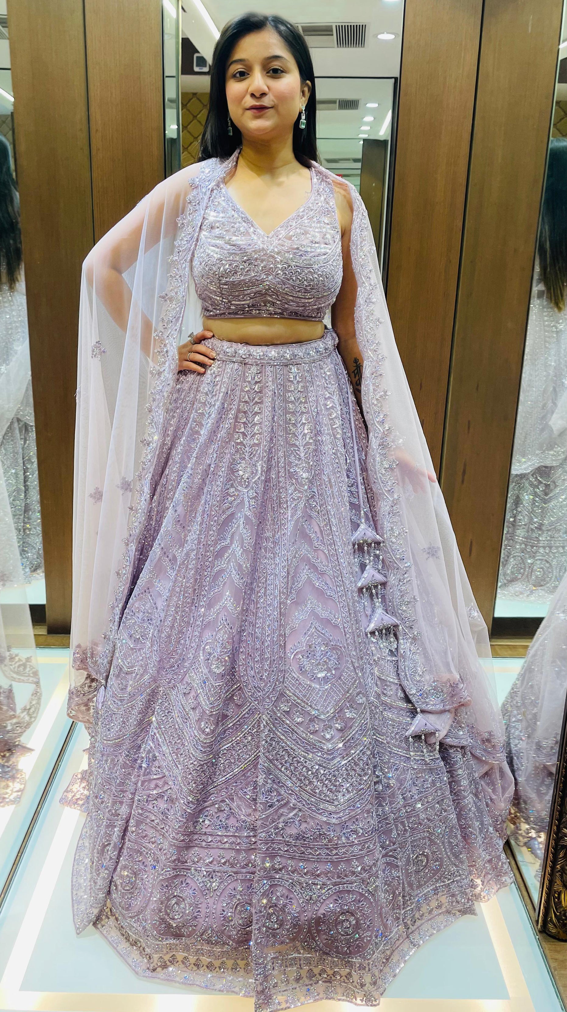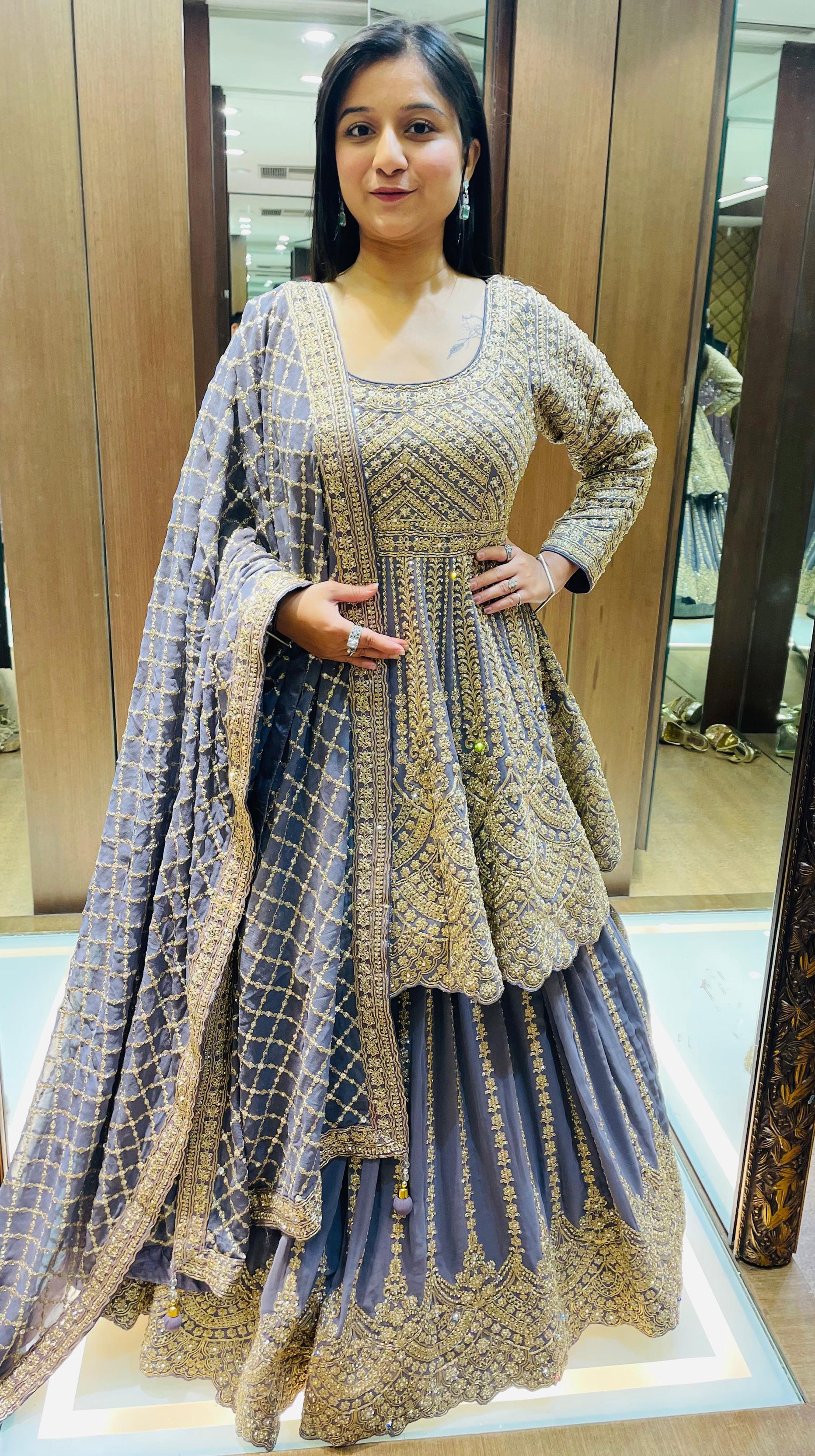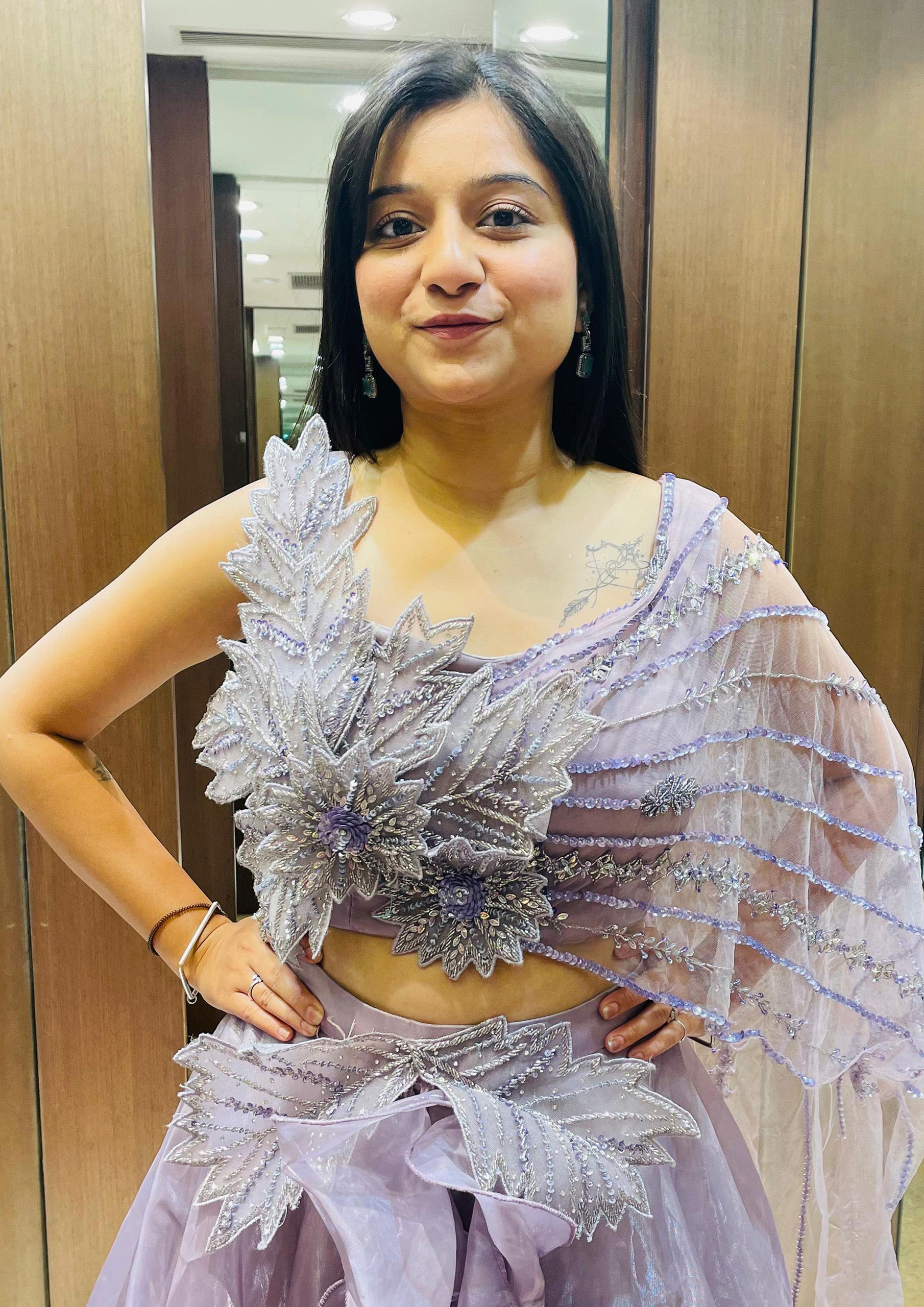 Light Purple Color Zari Machine Work Indo Western