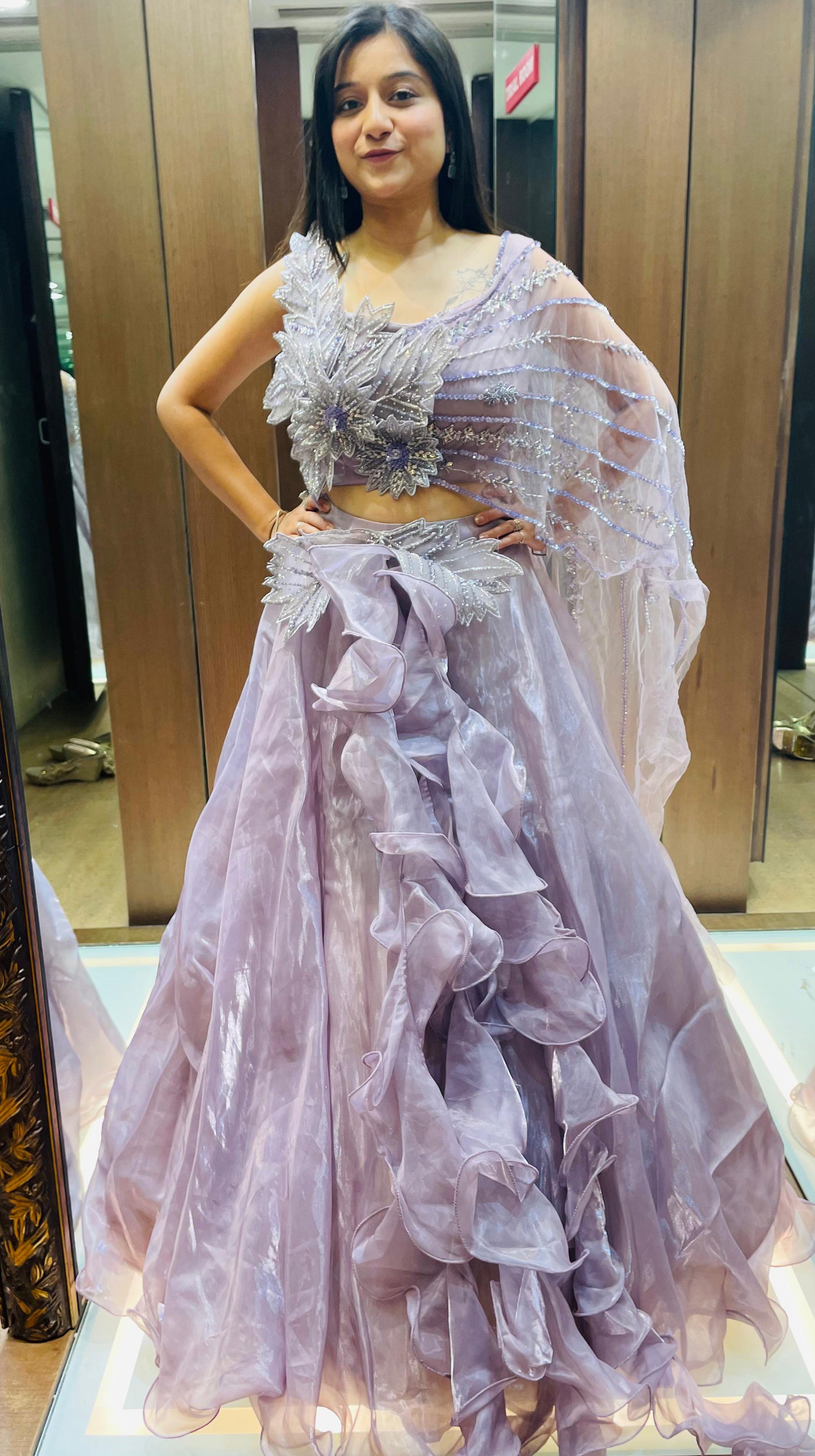 Purple Color Hand Work Organza Wedding Wear Lehenga