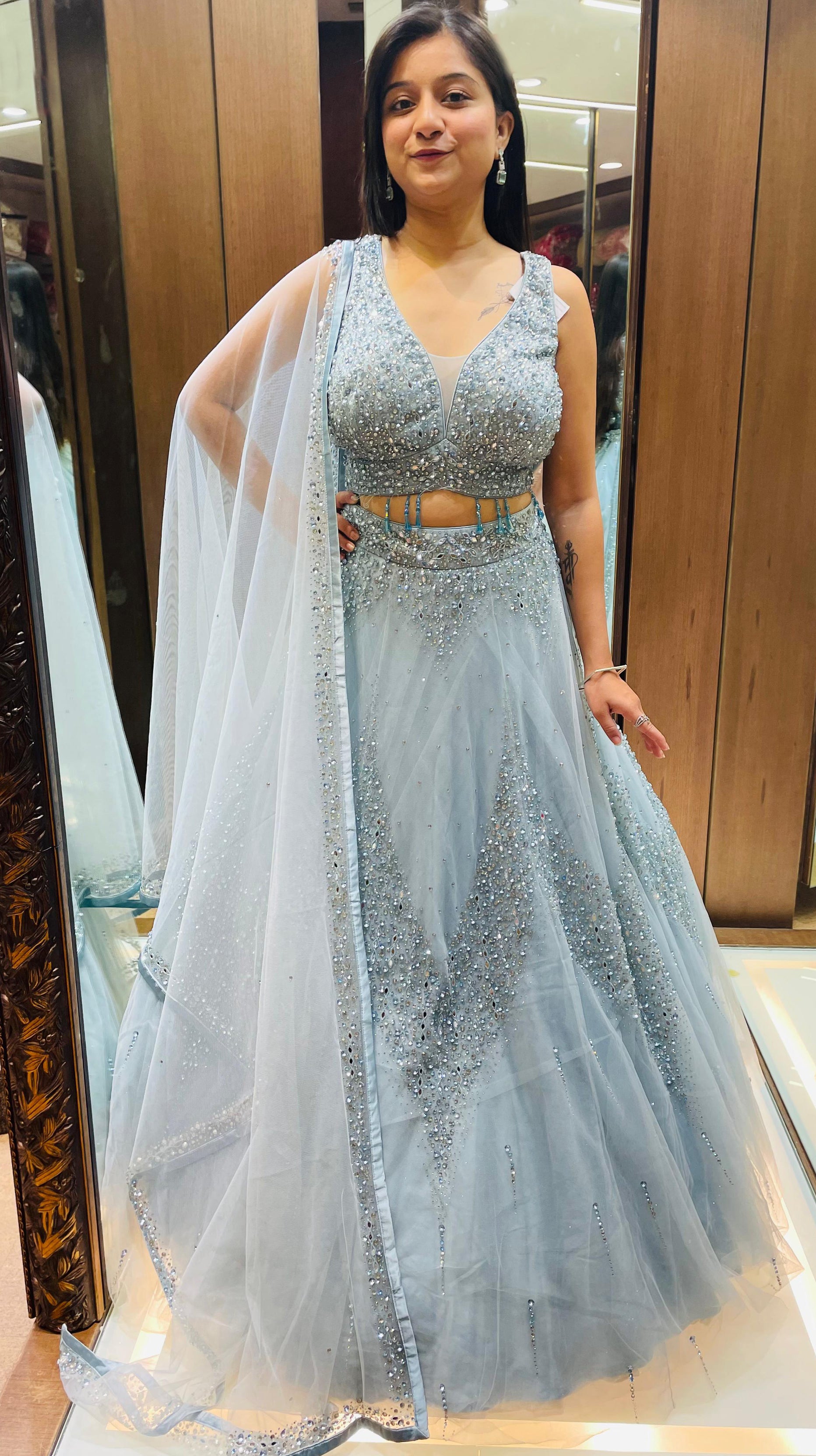 Sky Blue Color Net Hand Work Fancy Lehenga Choli