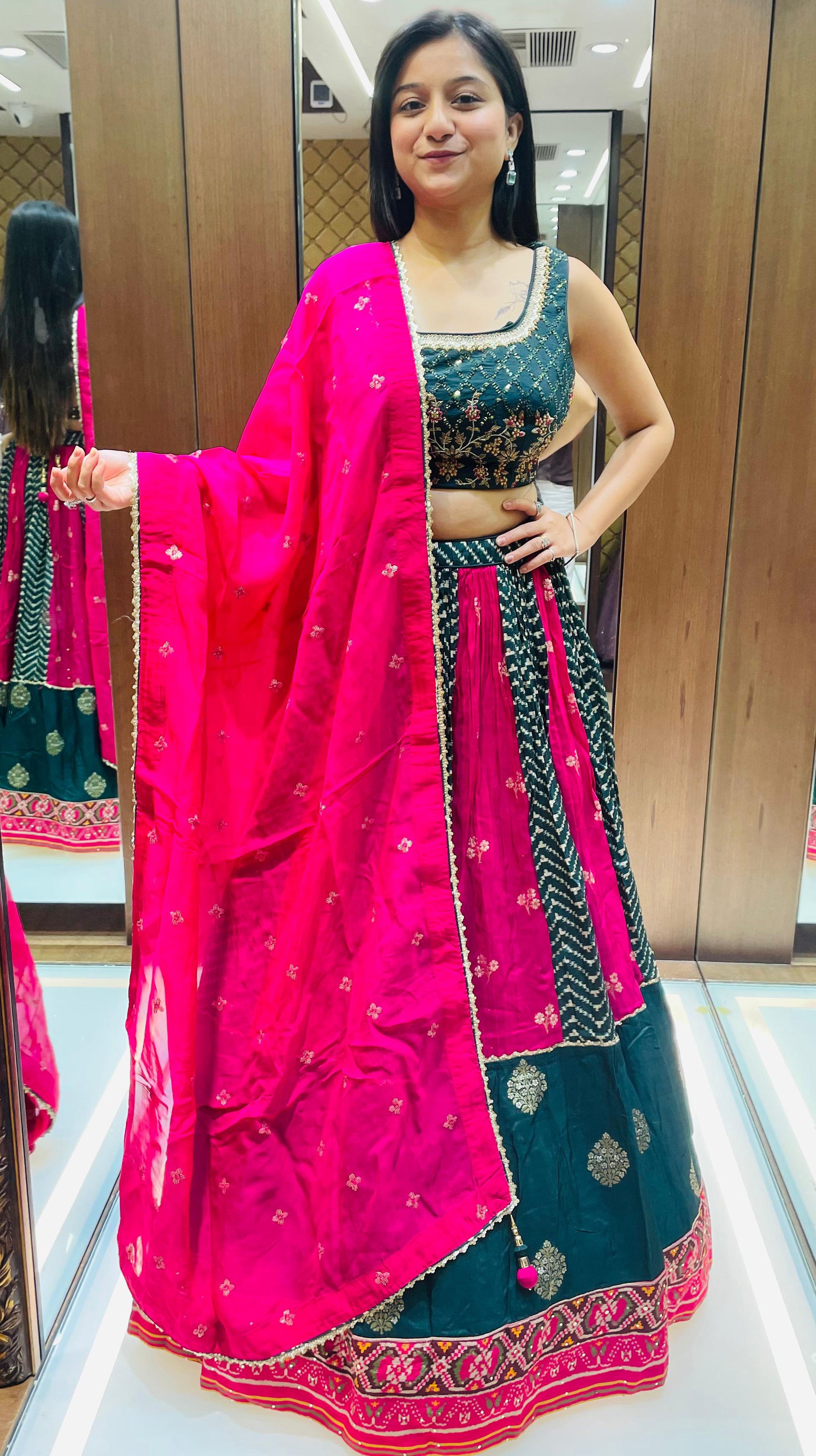 Rani And Green Color Patola Silk Hand Work Lehenga Choli