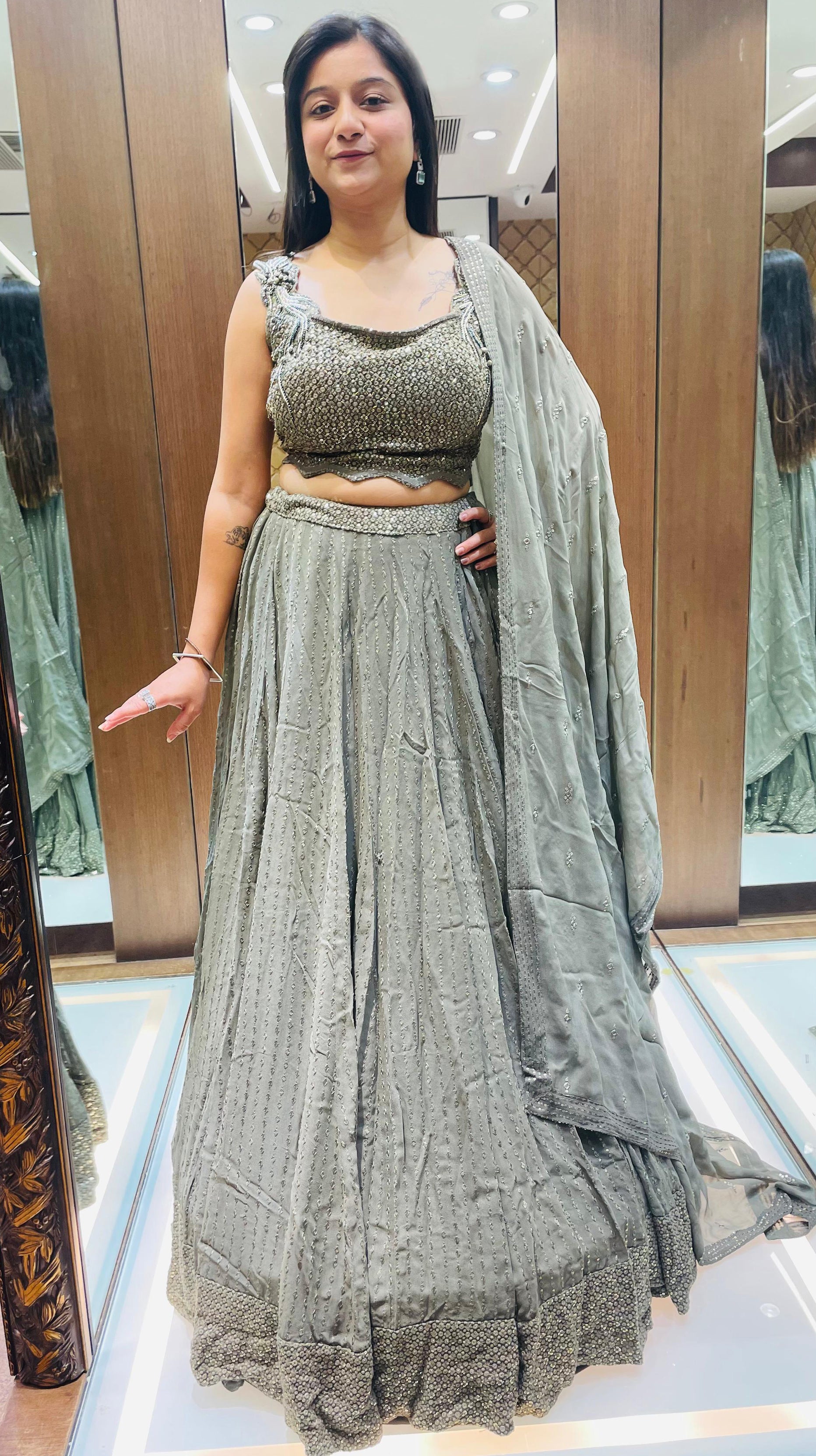 Dusty Green Color Georgette Thread Work Lehenga Choli