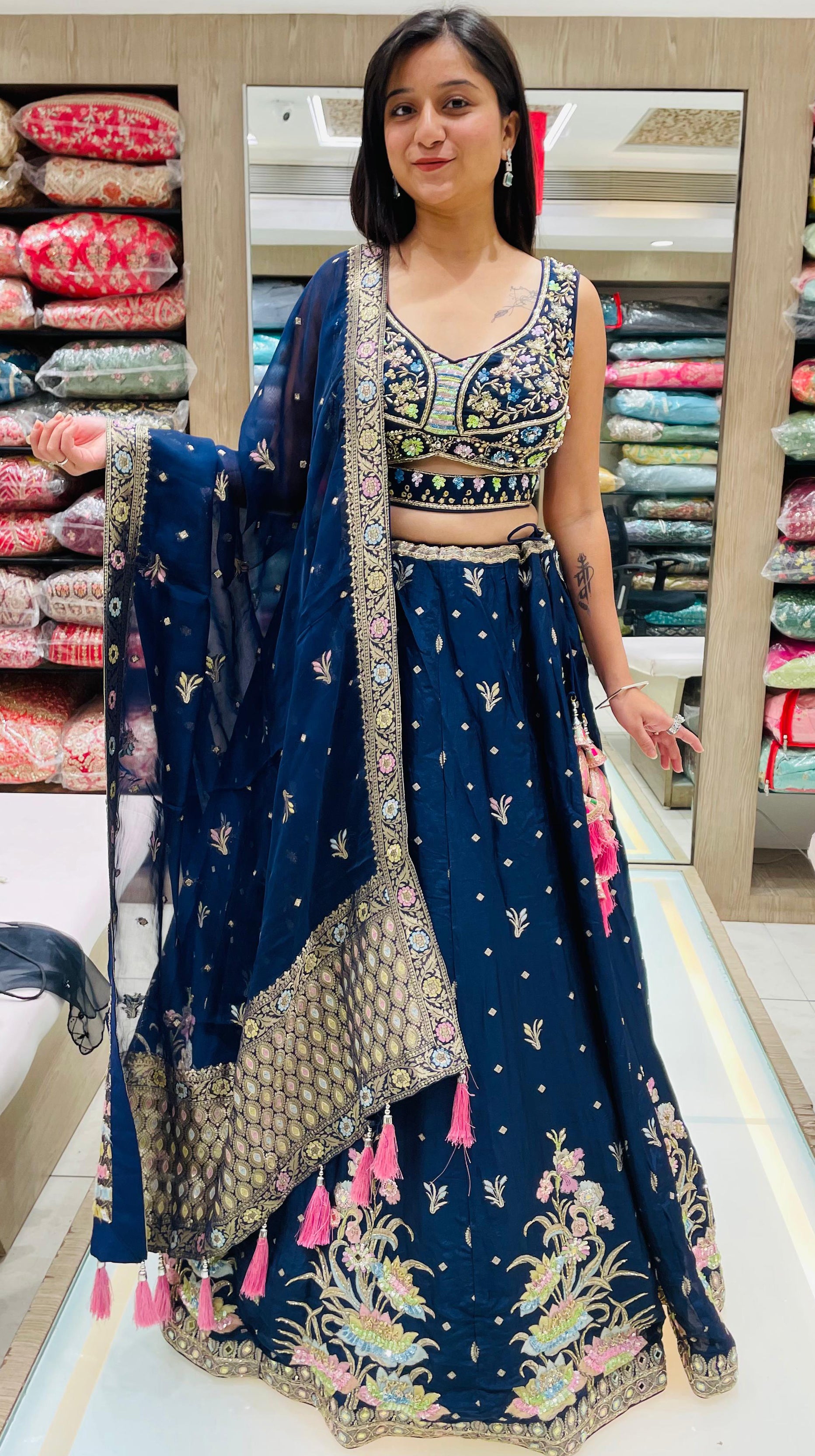 Navy Blue Color Dola Silk Zardosi Work Lehenga Choli