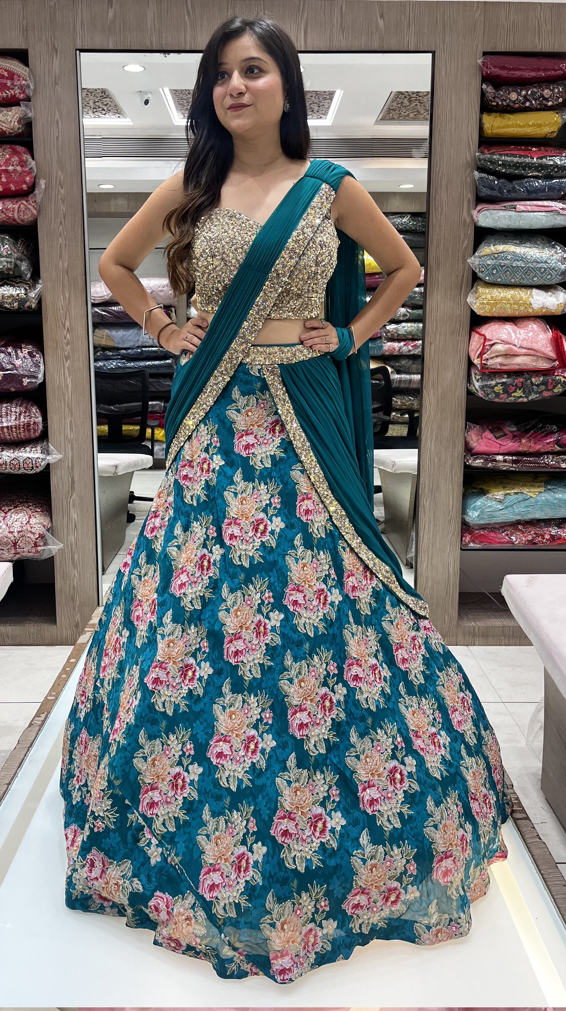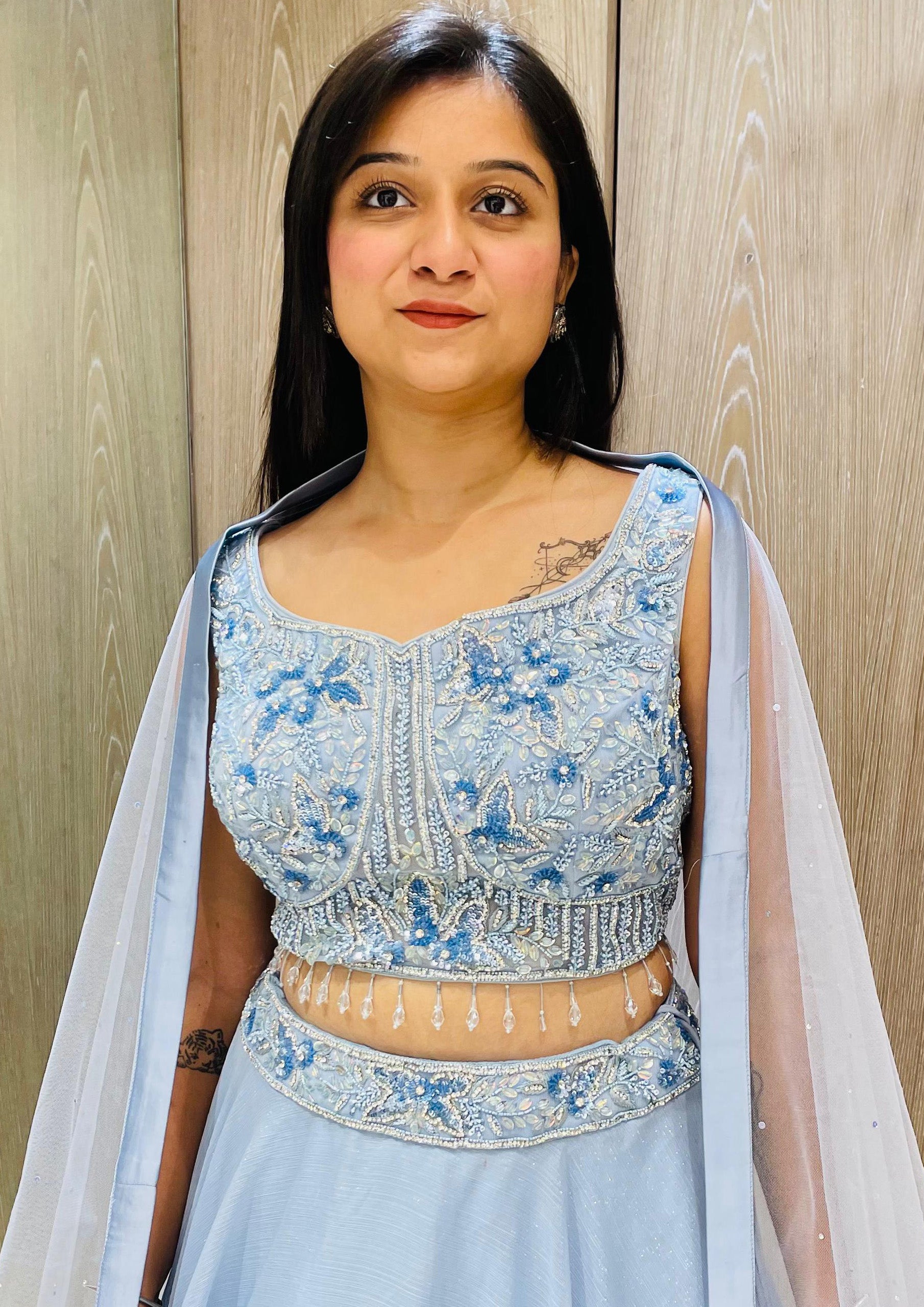 Sky Blue Color Georgette Hand Work Lehenga Choli