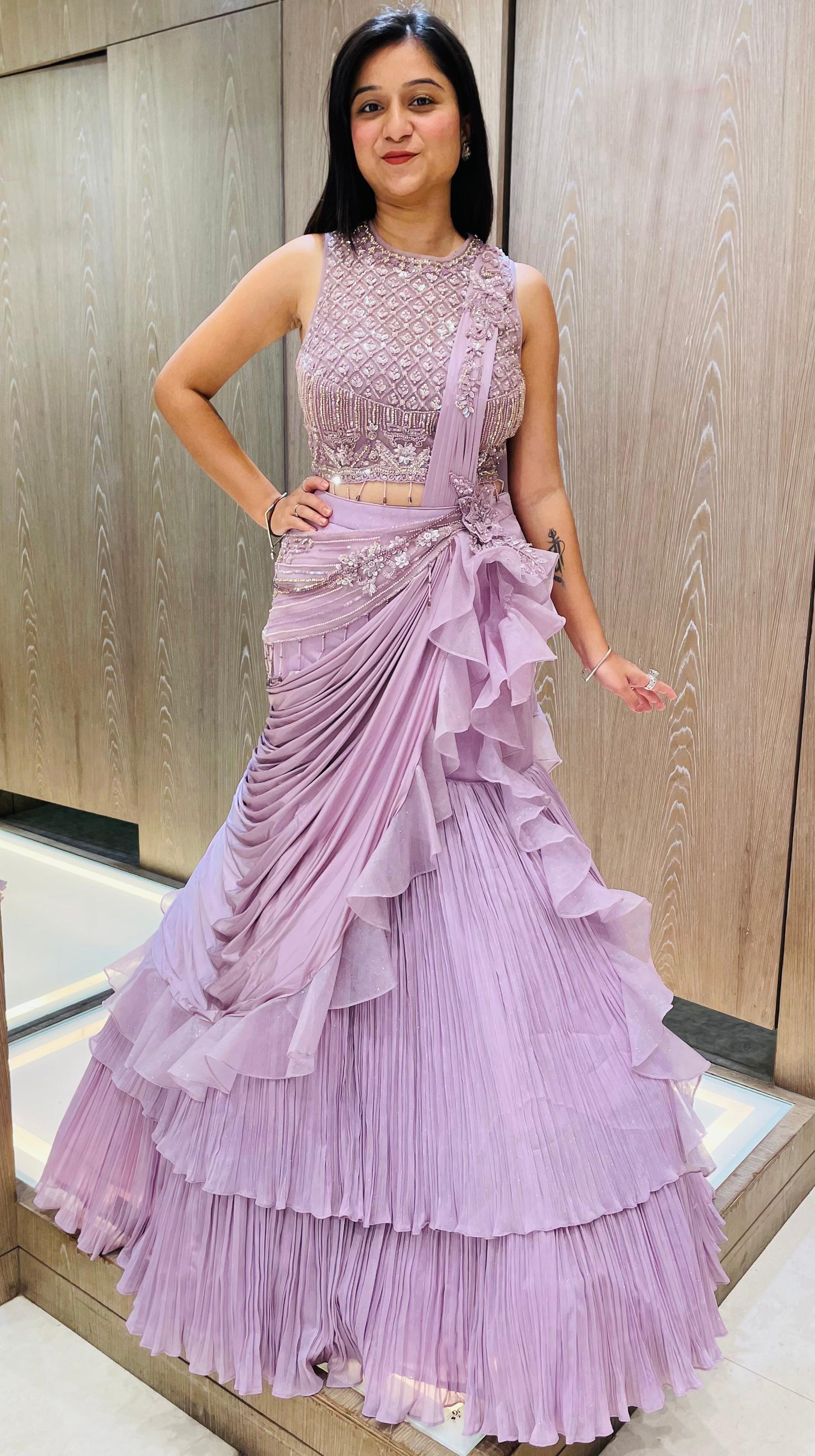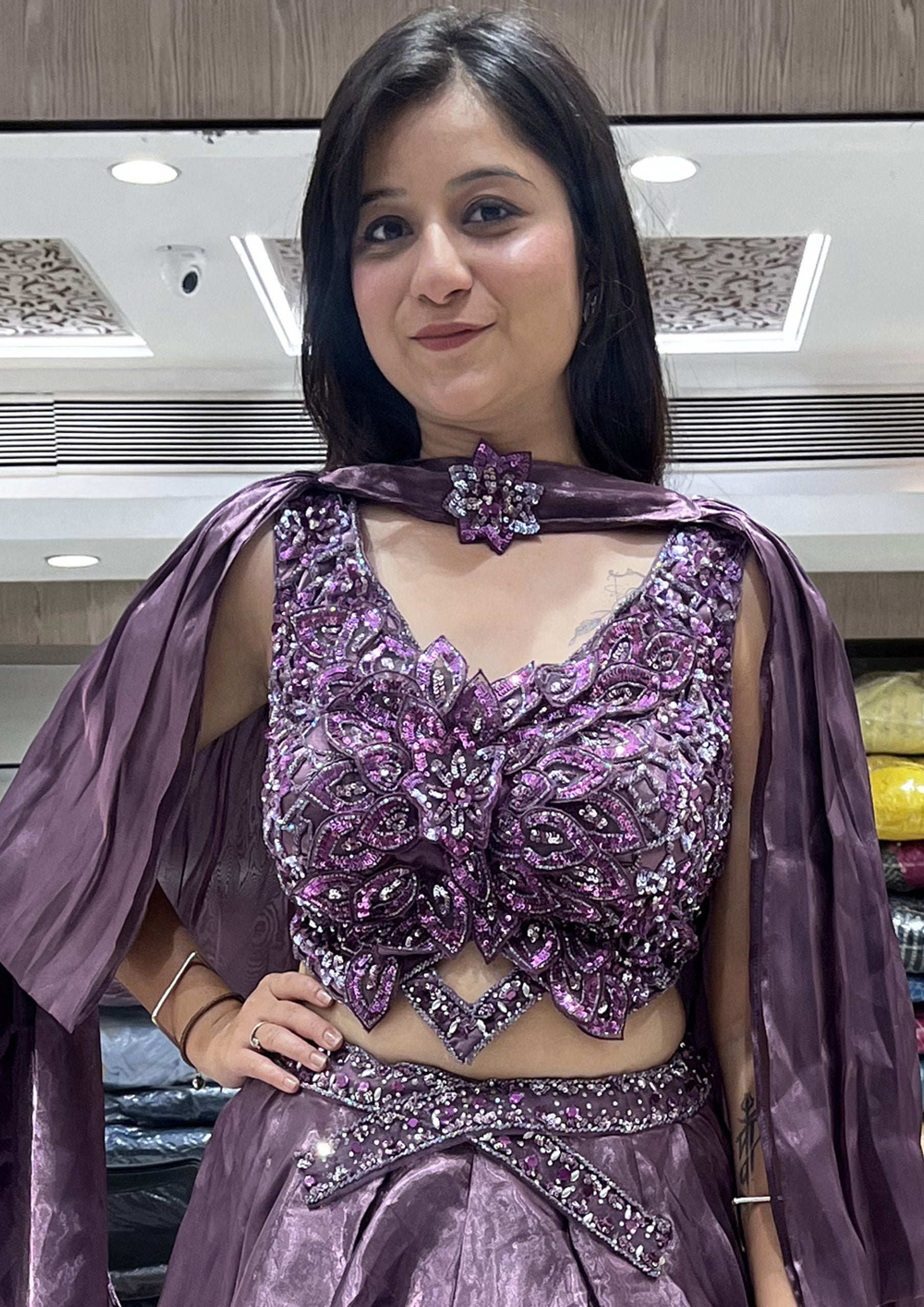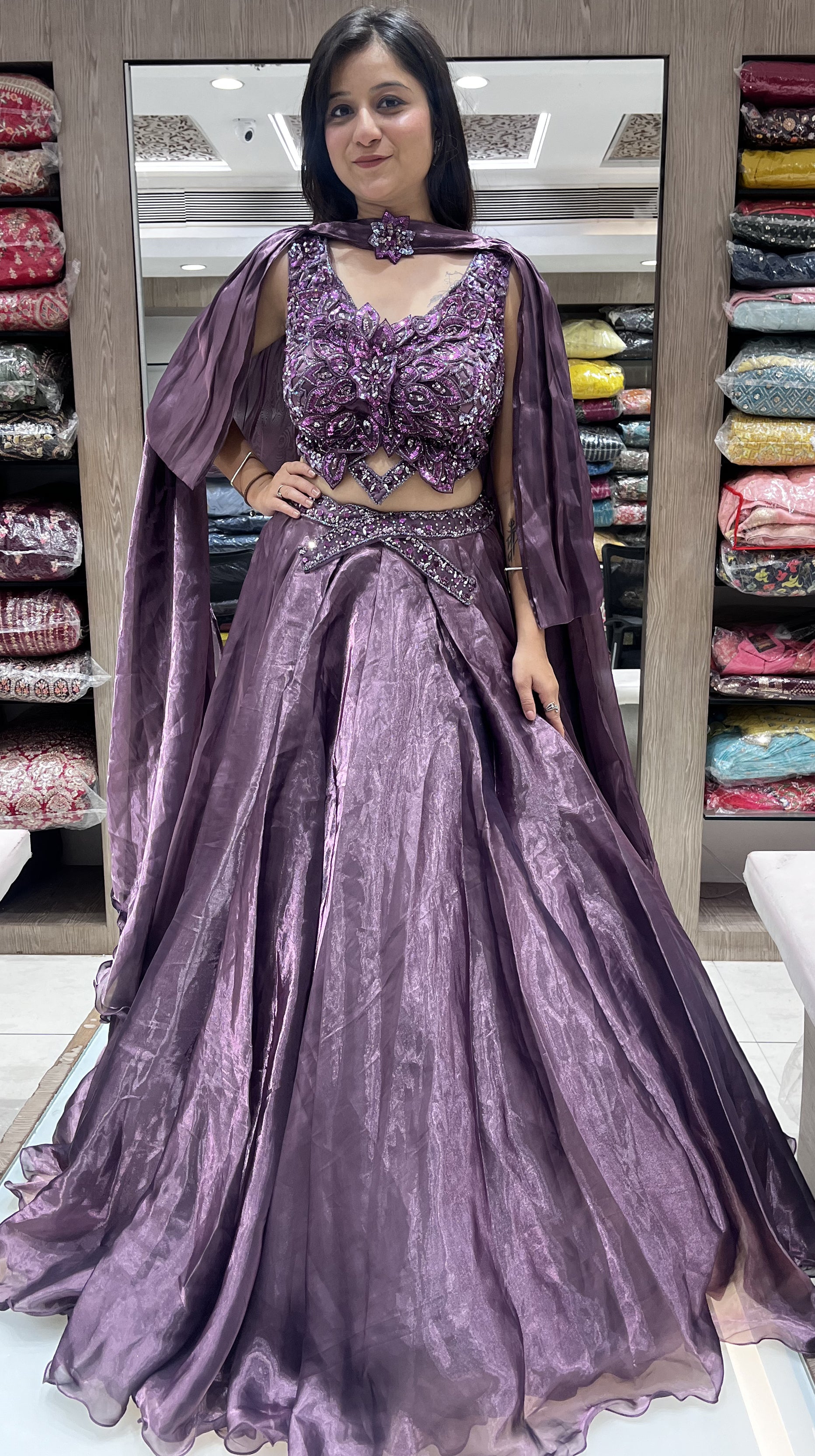 Purple Color Hand Work Organza Fancy Lehenga Choli