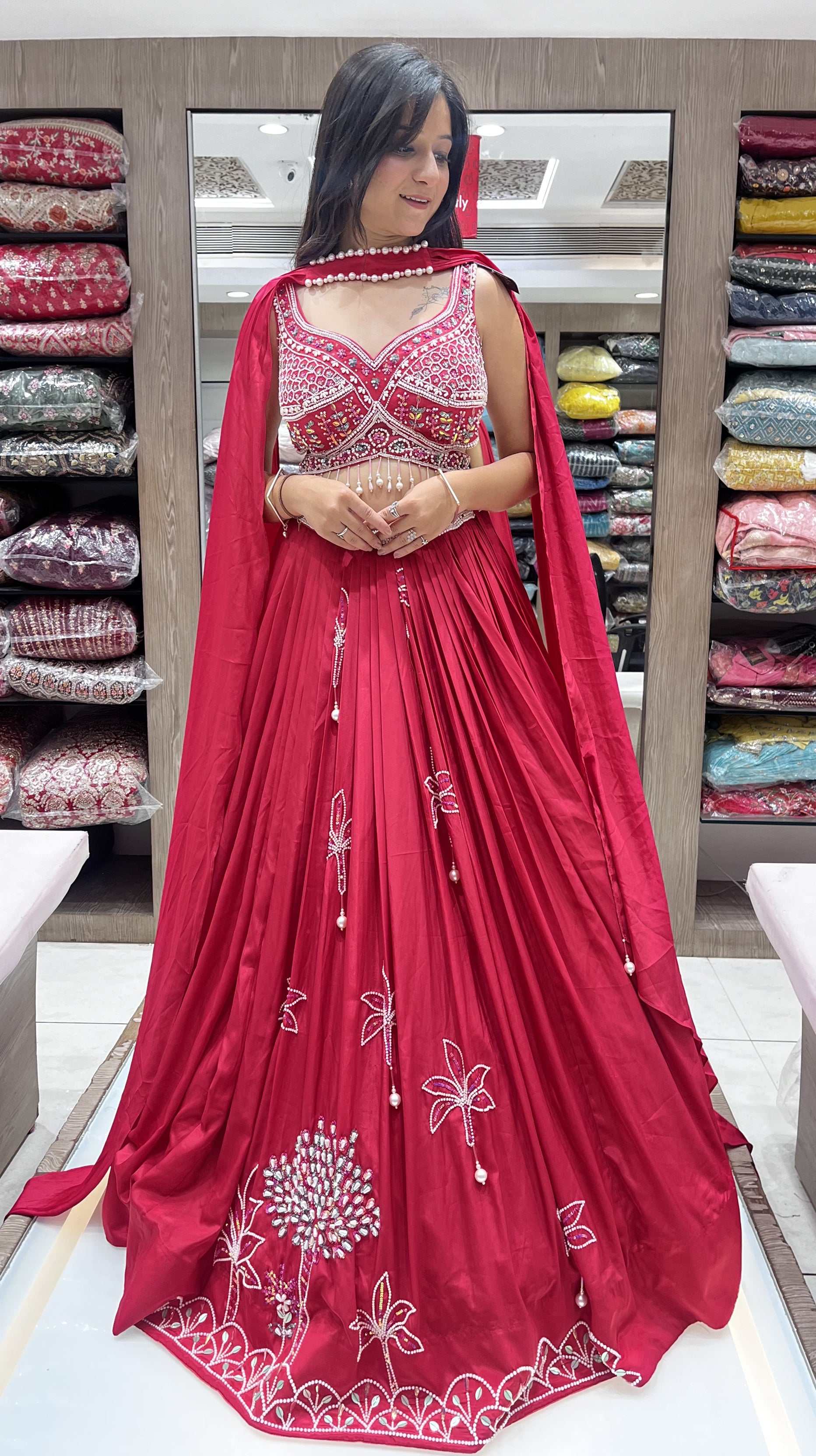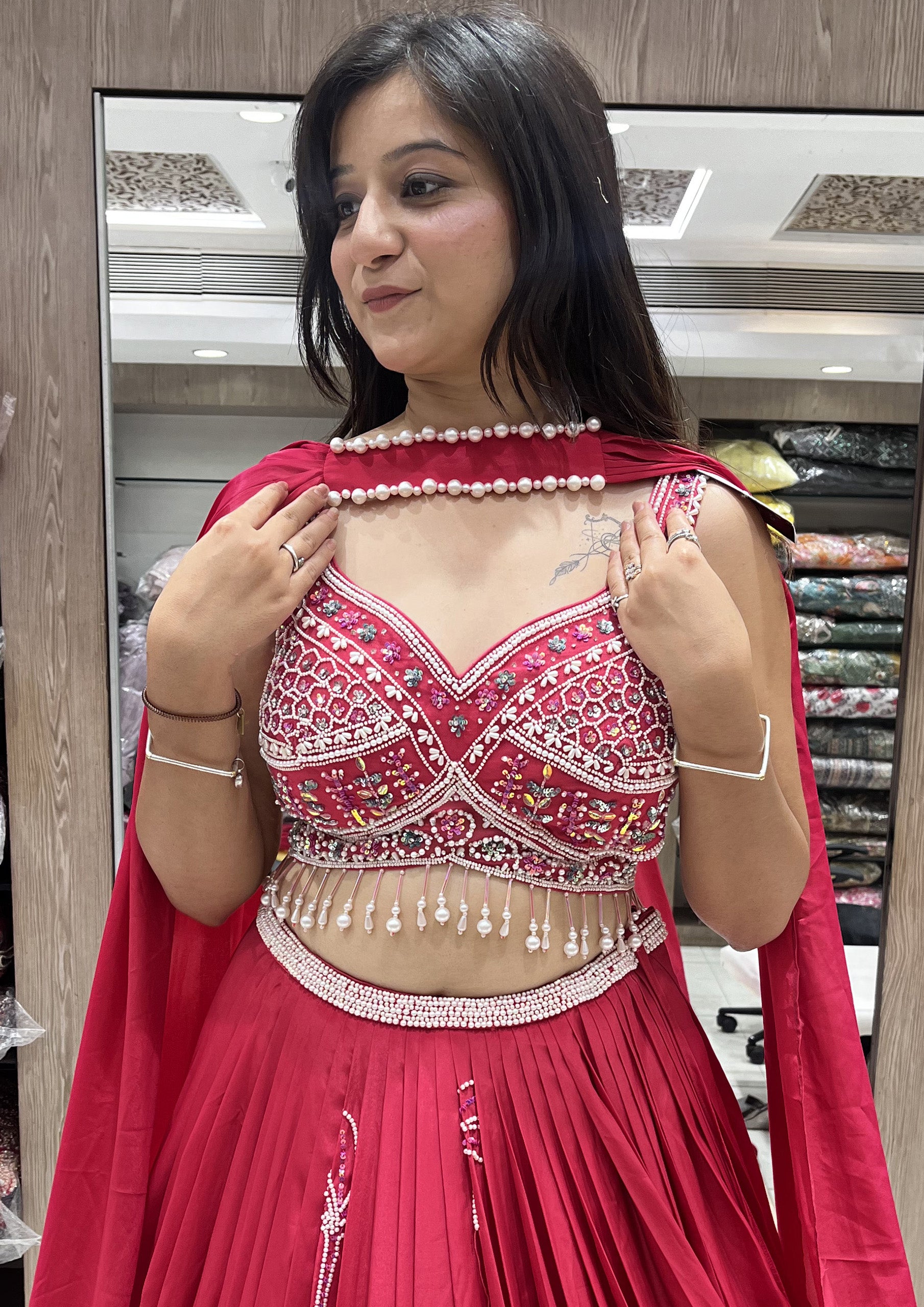 Pink Color Crepe Hand Work Lehenga Choli For Wedding