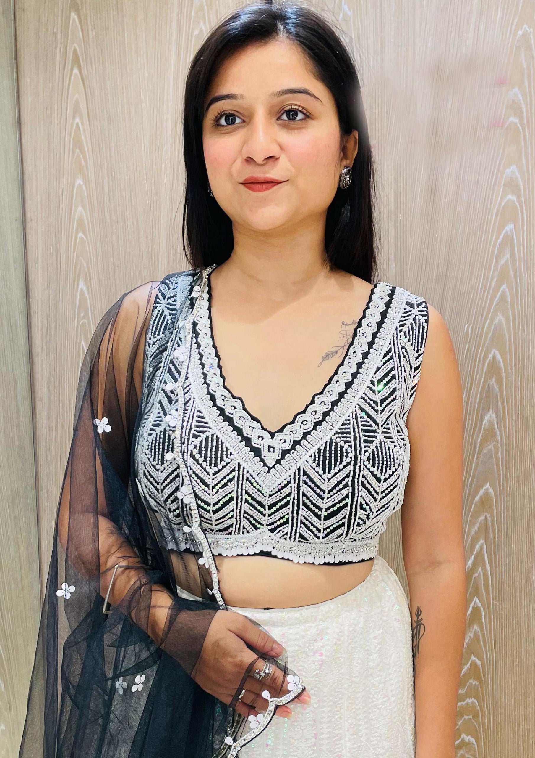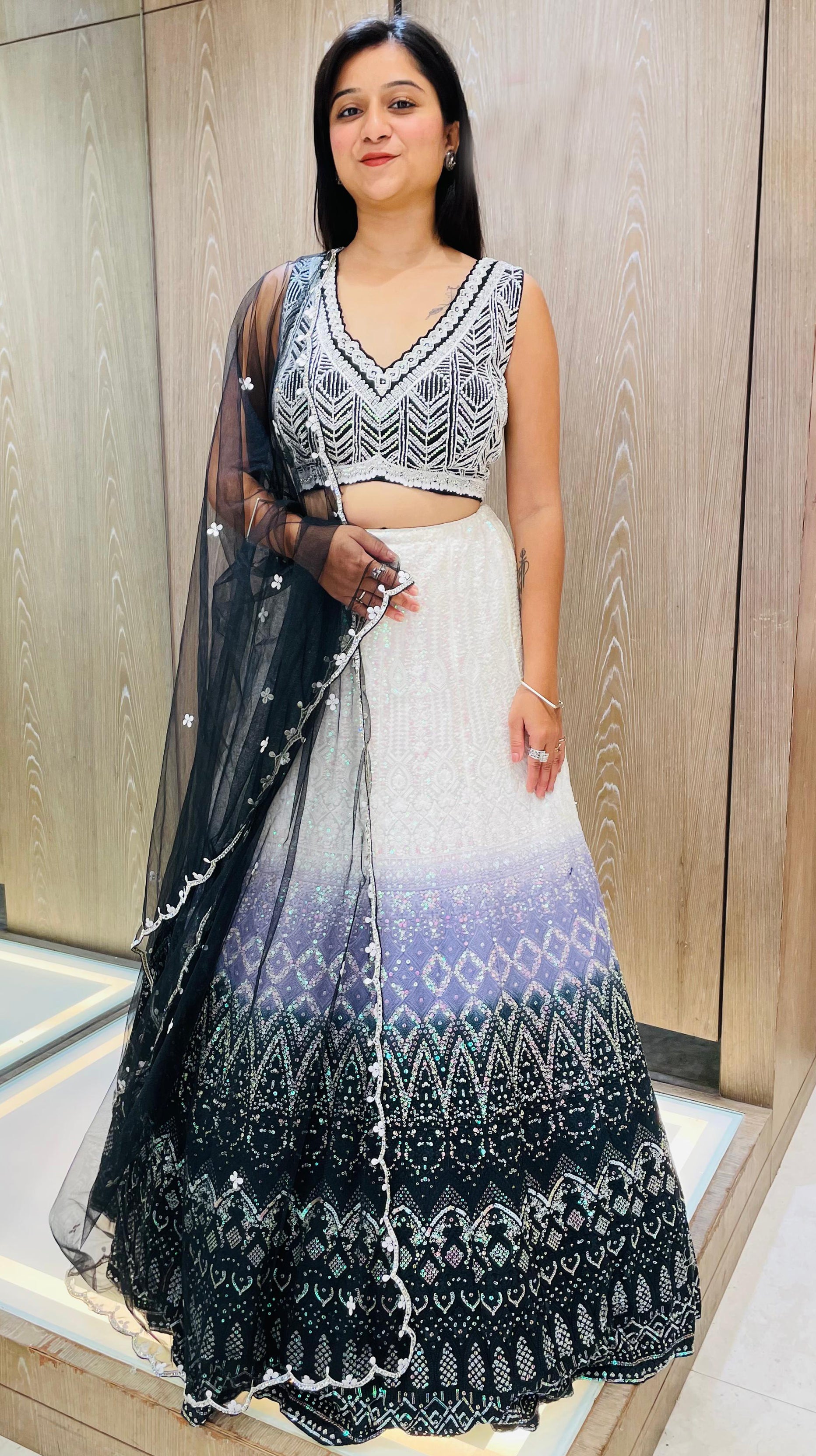Black Color Georgette Hand Work Lehenga Choli With Shrug