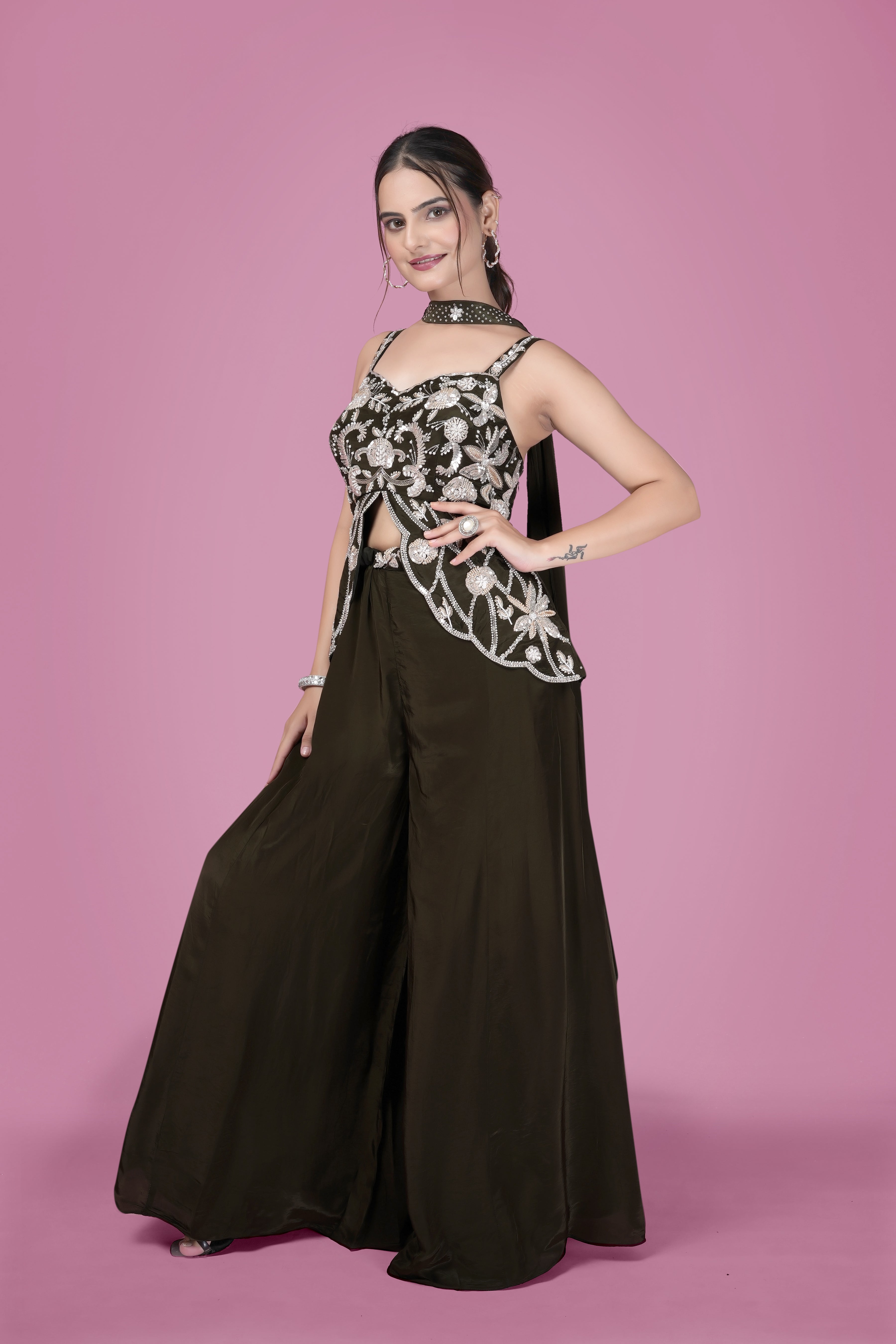 Teal Color Resham Work Chinnon Chiffon Gharara Suit