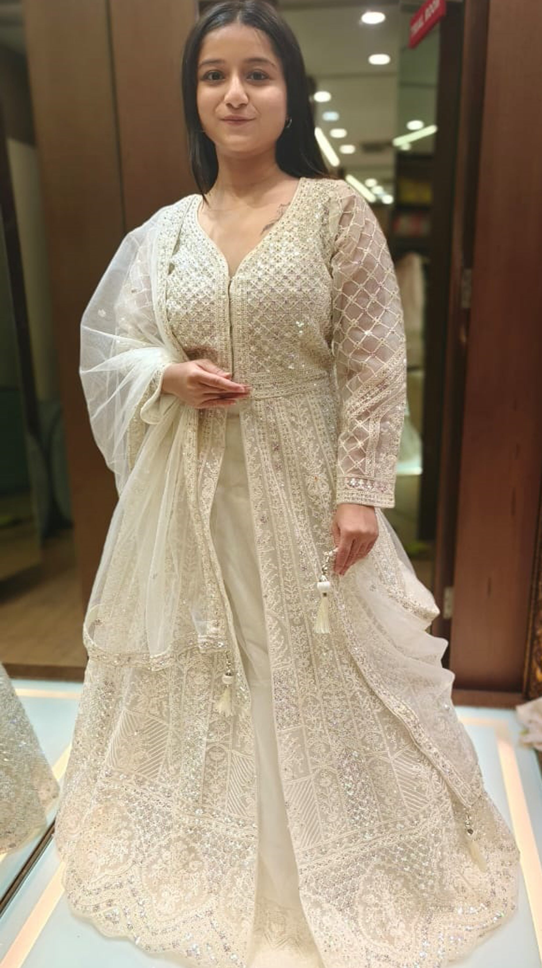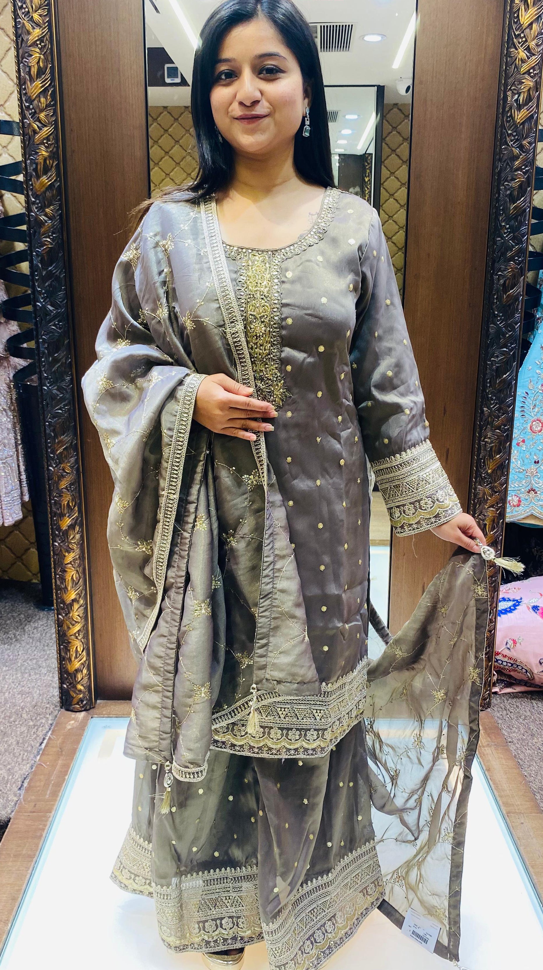 Grey Color Silk Zari Work Pakistani Style Readymade Suit