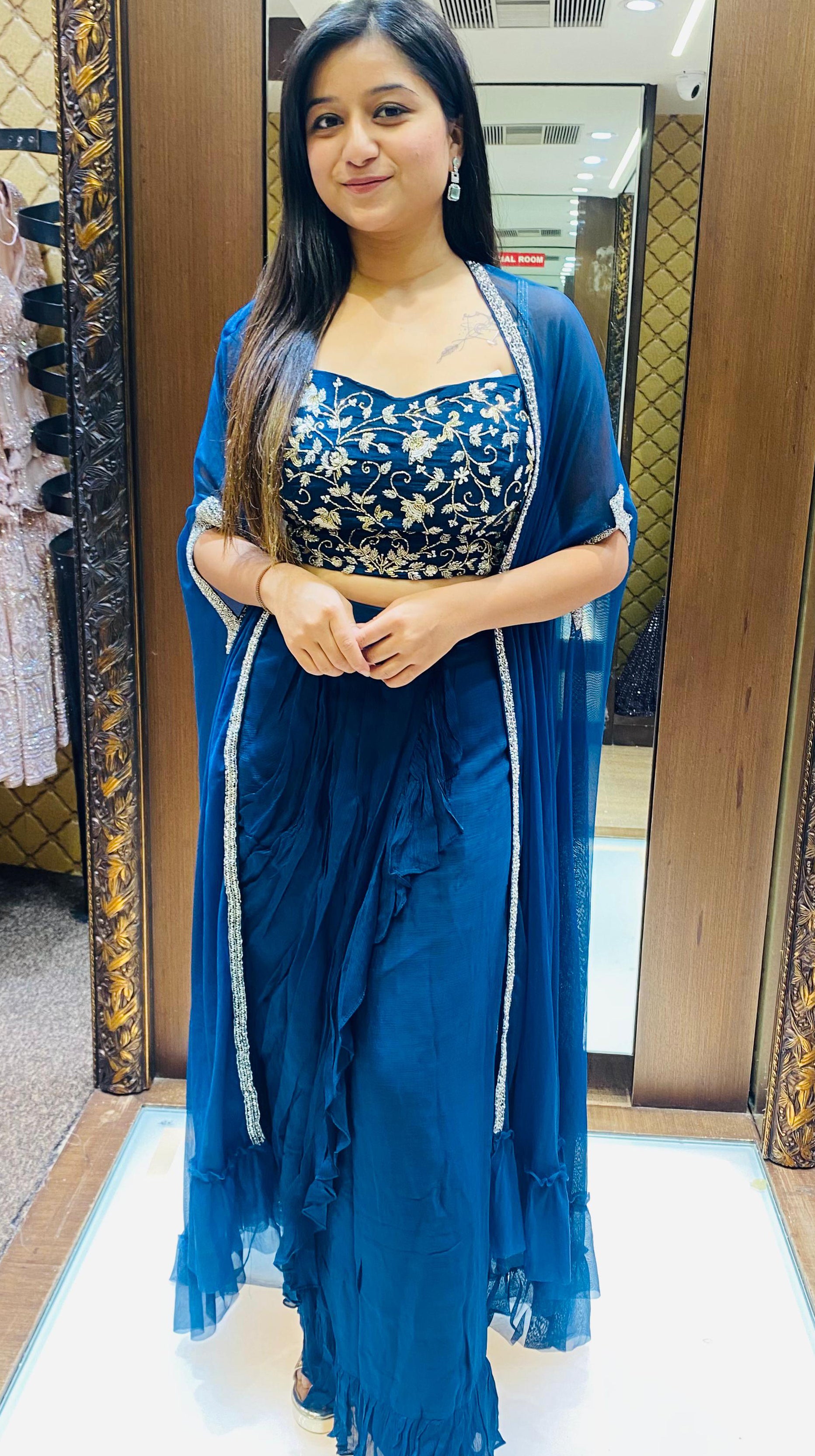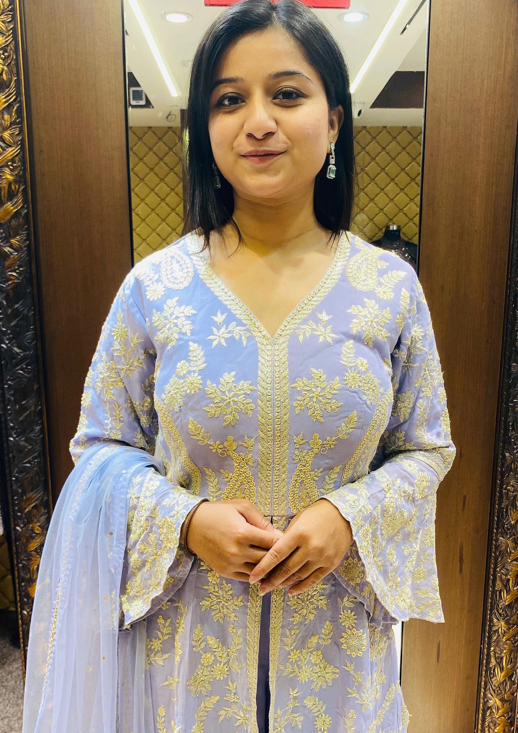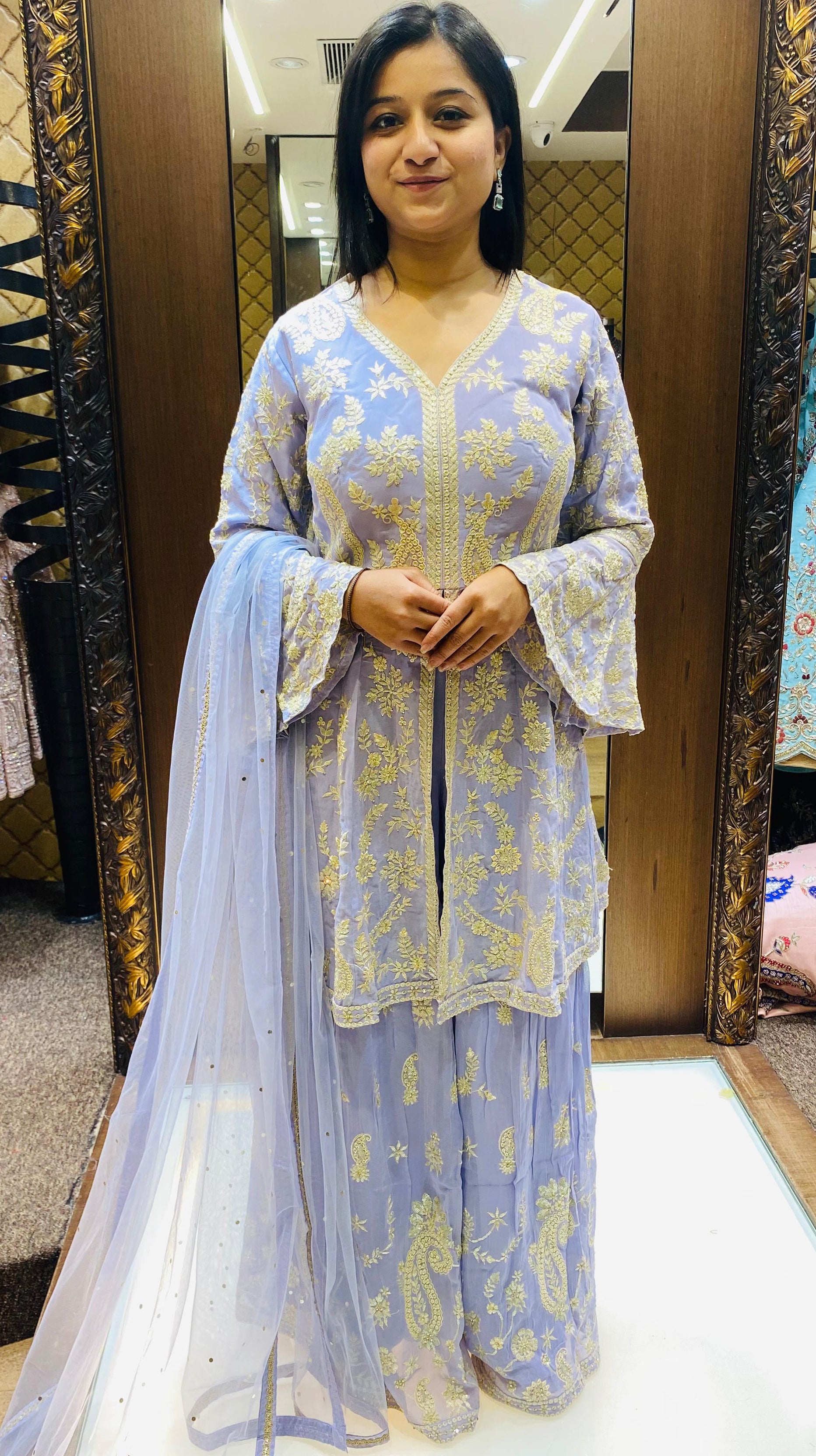 Teal Blue Color Silk Zari Embroidered Gharara Suit