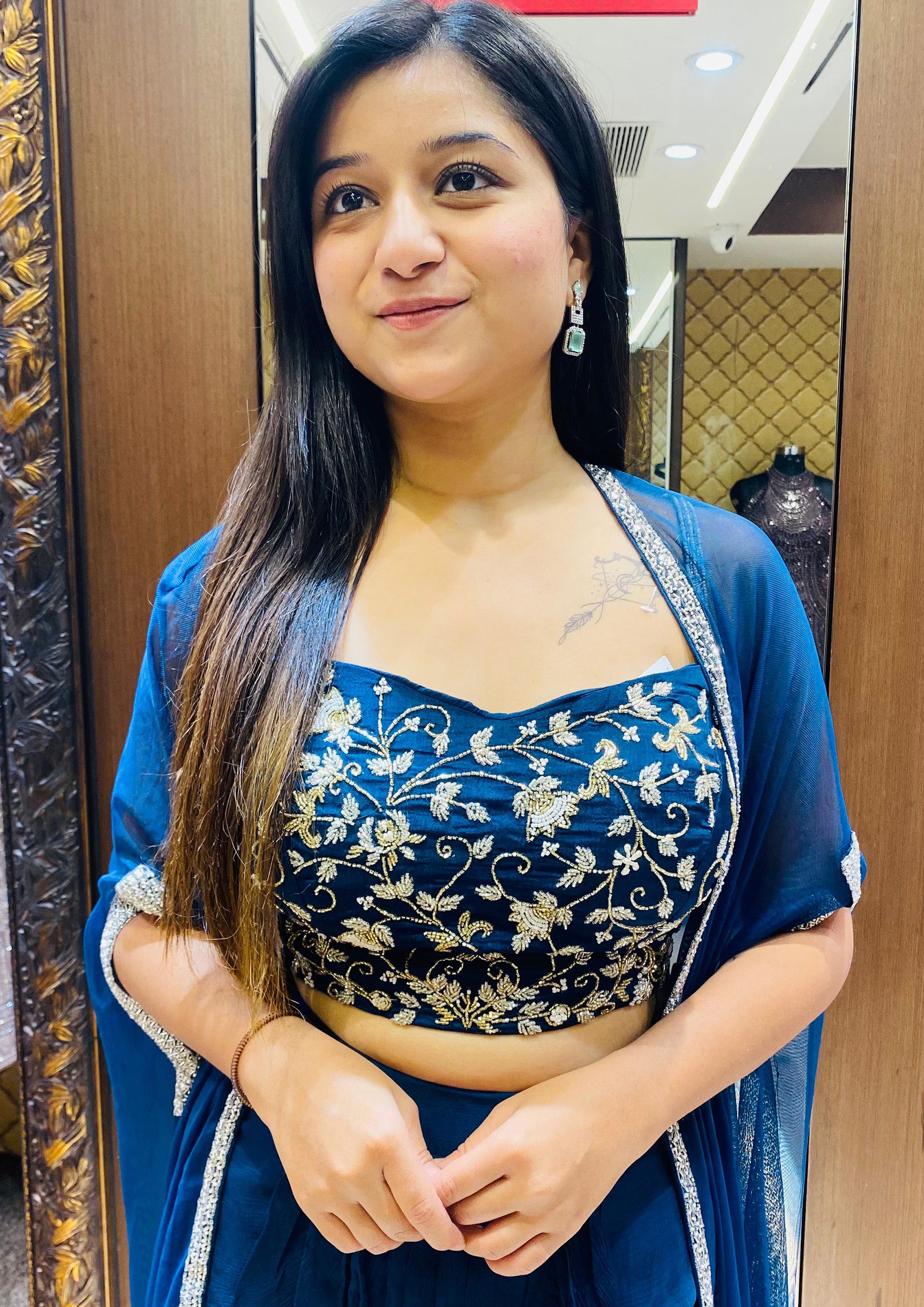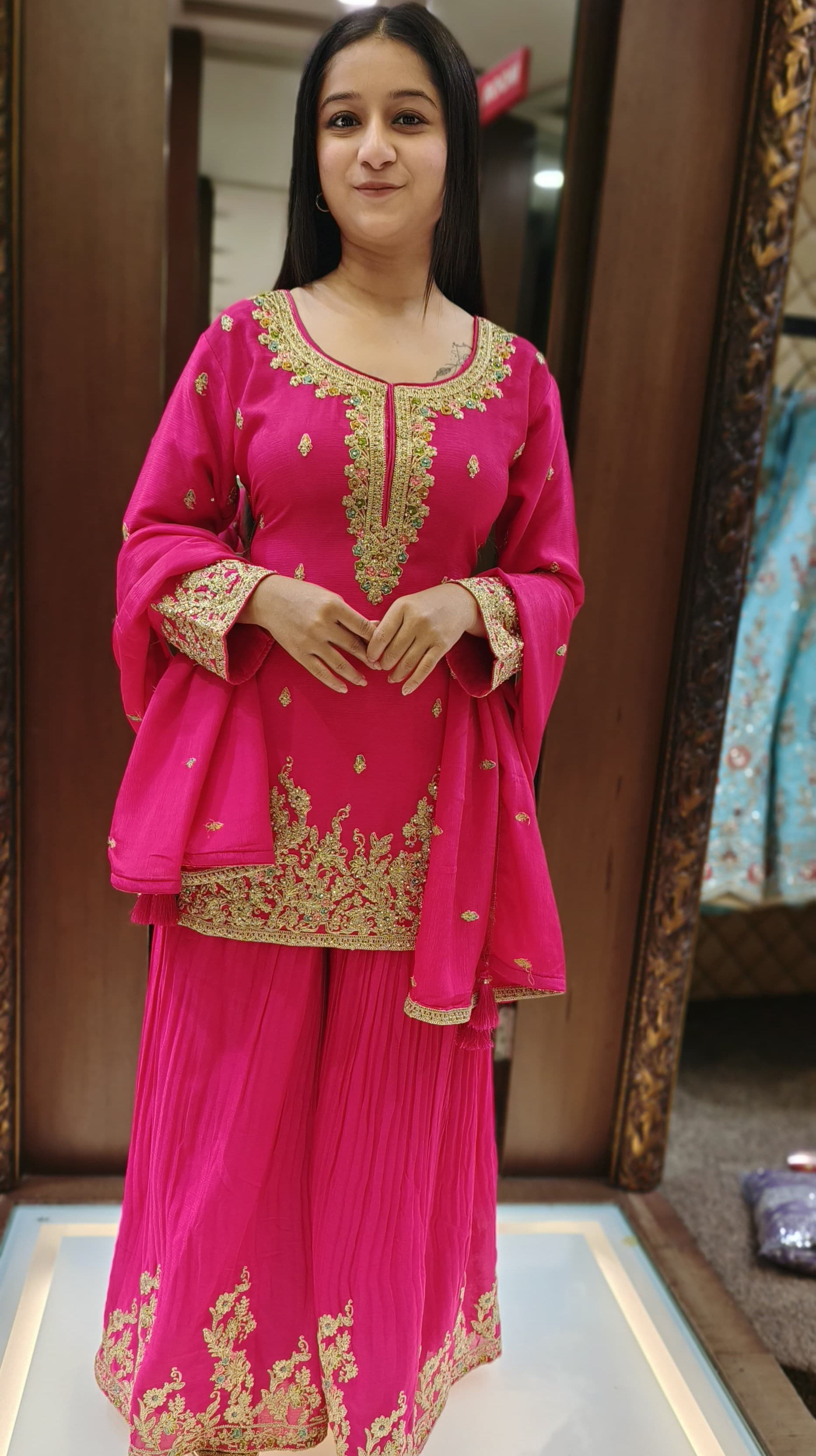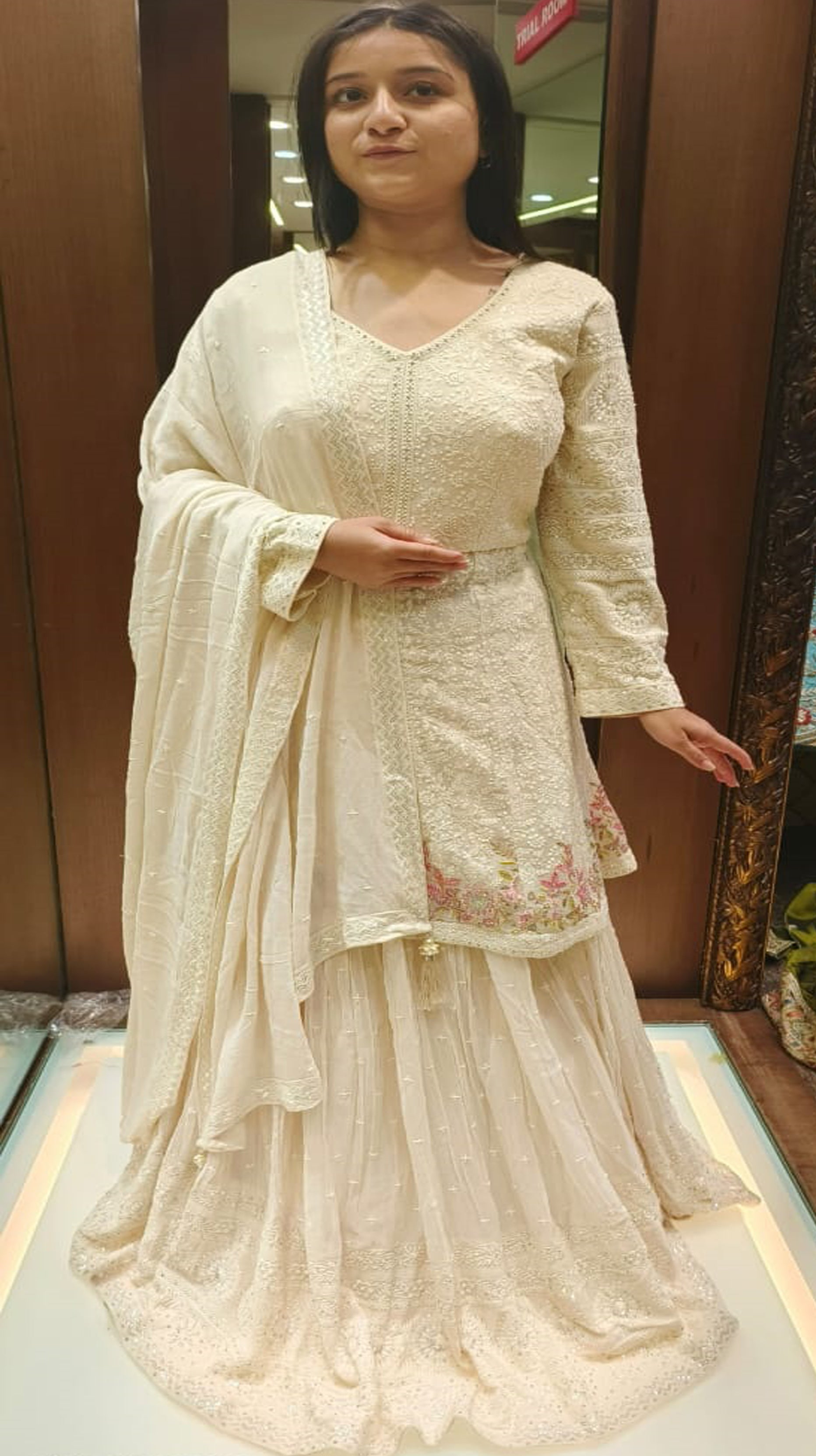 Teal Blue Color Silk Zari Embroidered Gharara Suit