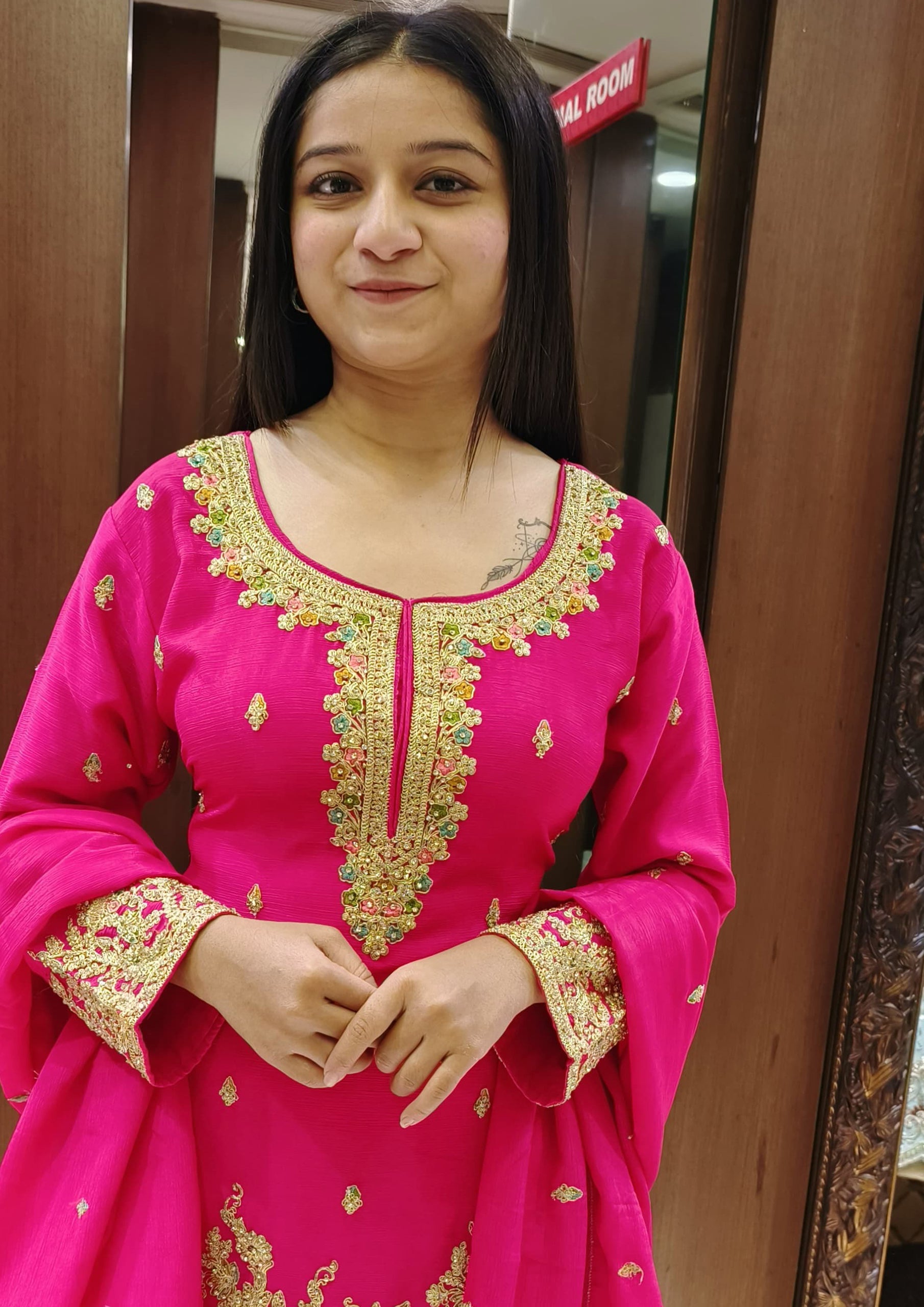 Onion Pink Color Chinnon Chiffon Party Wear Gown