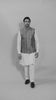 Infuse your ethnic wardrobe with timeless grandeur through this antique gold brocade waist coat set. The coat features intricate zari weaving with hints of green and bronze undertones, evoking royal sophistication. Paired with a crisp white cotton-silk kurta set, this ensemble perfectly balances heritage elegance with modern minimalism. Ideal for festive gatherings, receptions, and traditional ceremonies.